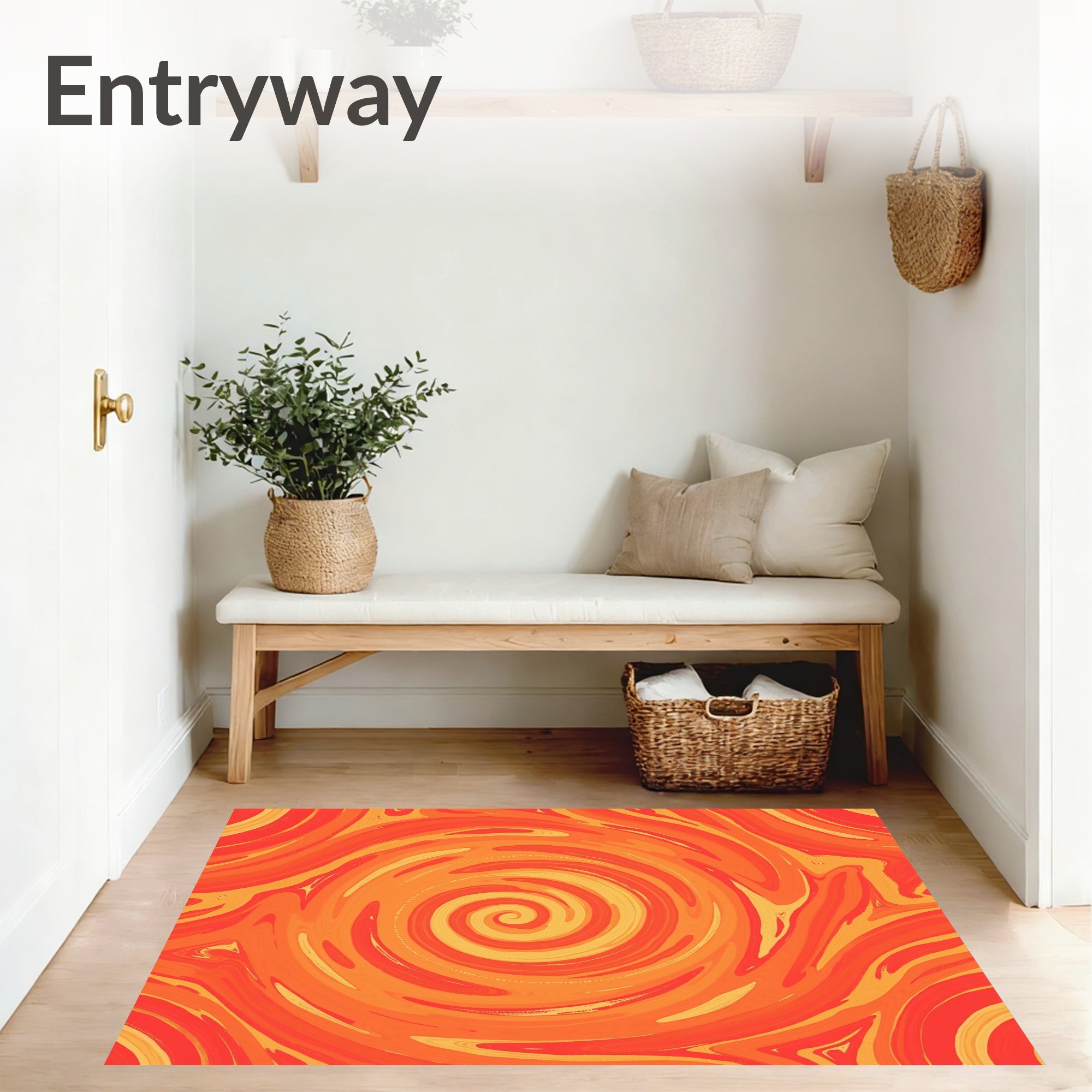 Ultra Soft Area Rug, Non Slip, Stain Resistant, Washable Area Rugs for Living Room, Bedroom, Ripple Mosaic with Fluid Ombre Artistic Detailing(Orange) Overview: