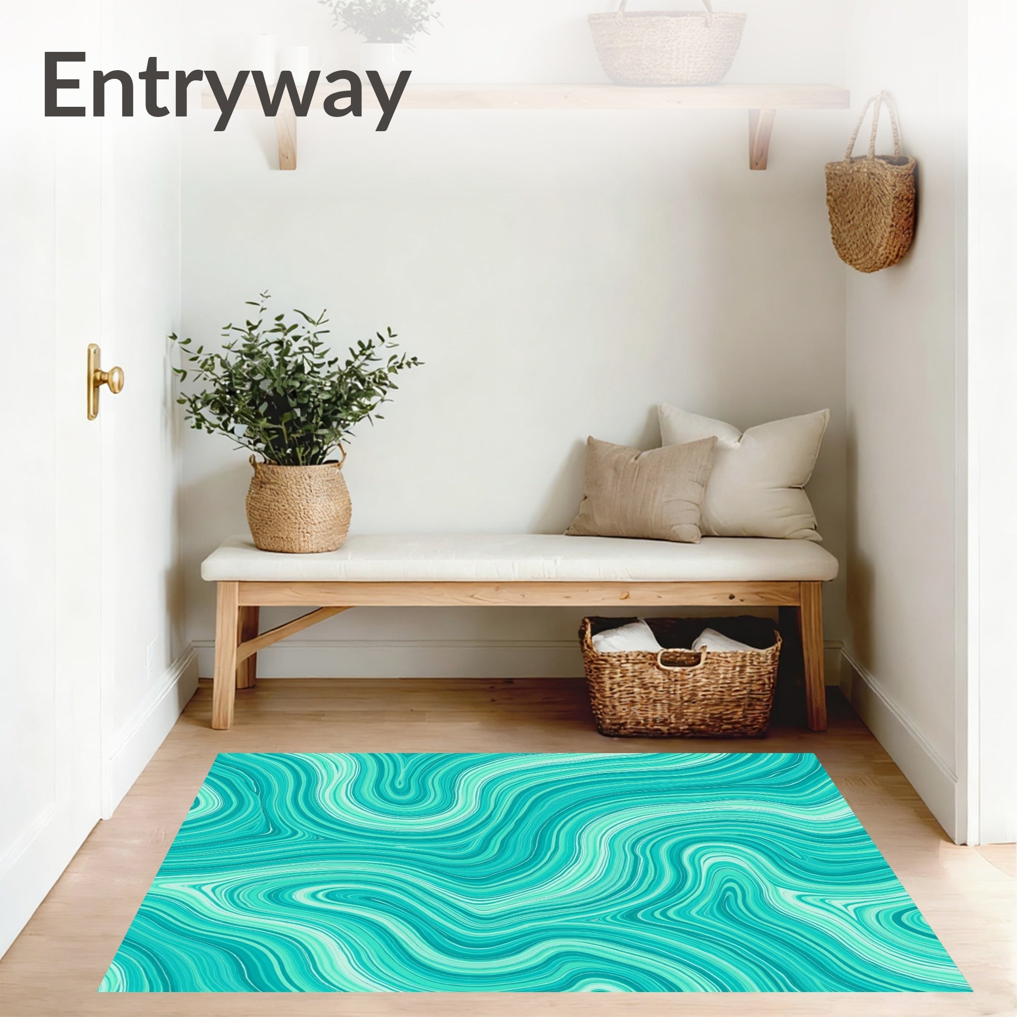 Ultra Soft Area Rug, Non Slip, Stain Resistant, Washable Area Rugs for Living Room, Bedroom, Rippling Ocean Tides Flowing Dynamic Nautical Maritime Surf(Blue) Overview: