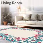 Ultra Soft Area Rug, Non Slip, Stain Resistant, Washable Area Rugs for Living Room, Bedroom, Romantic Garden Scrollwork with Lush Blooming Rose Vines and Elegant Filigree(Ivory) Overview: