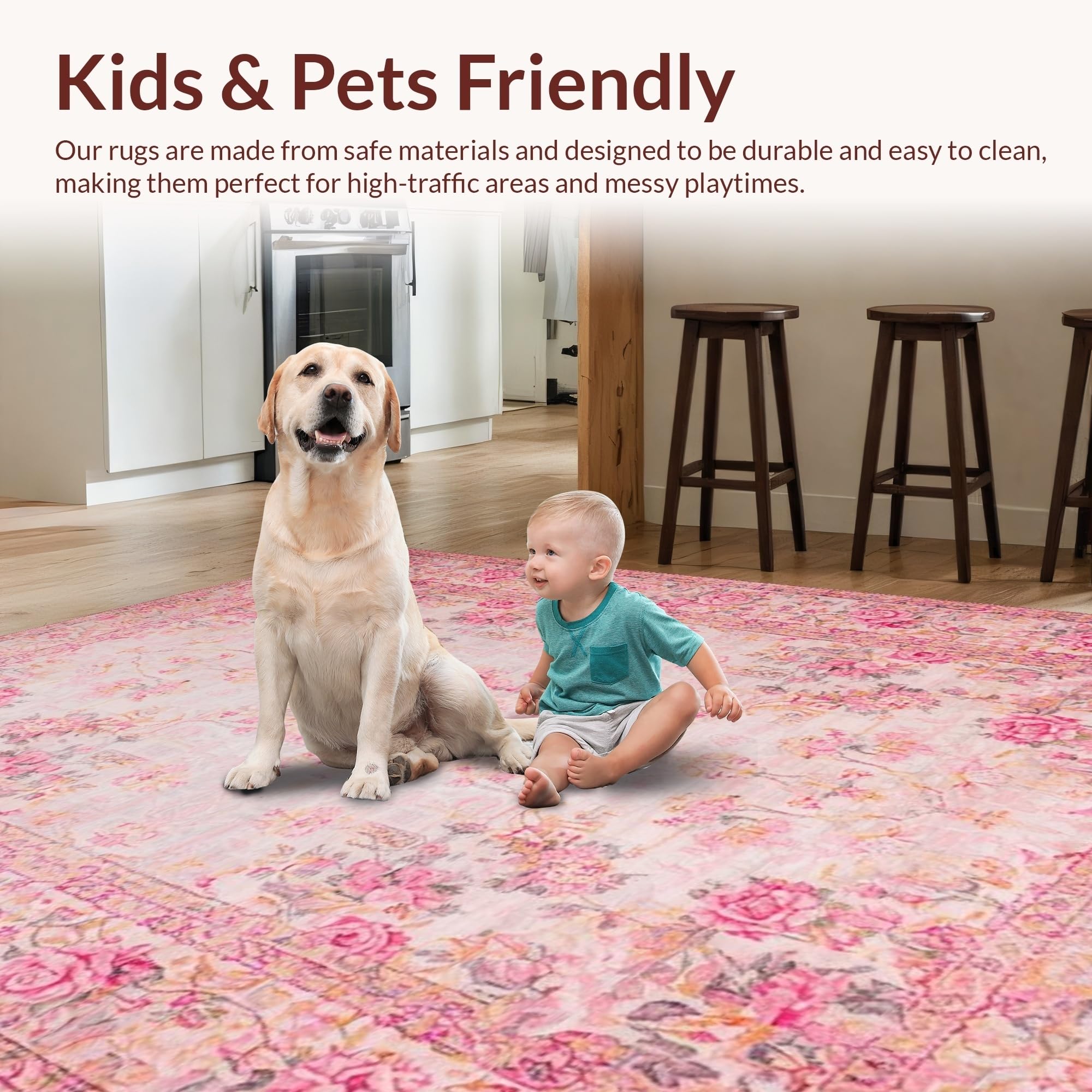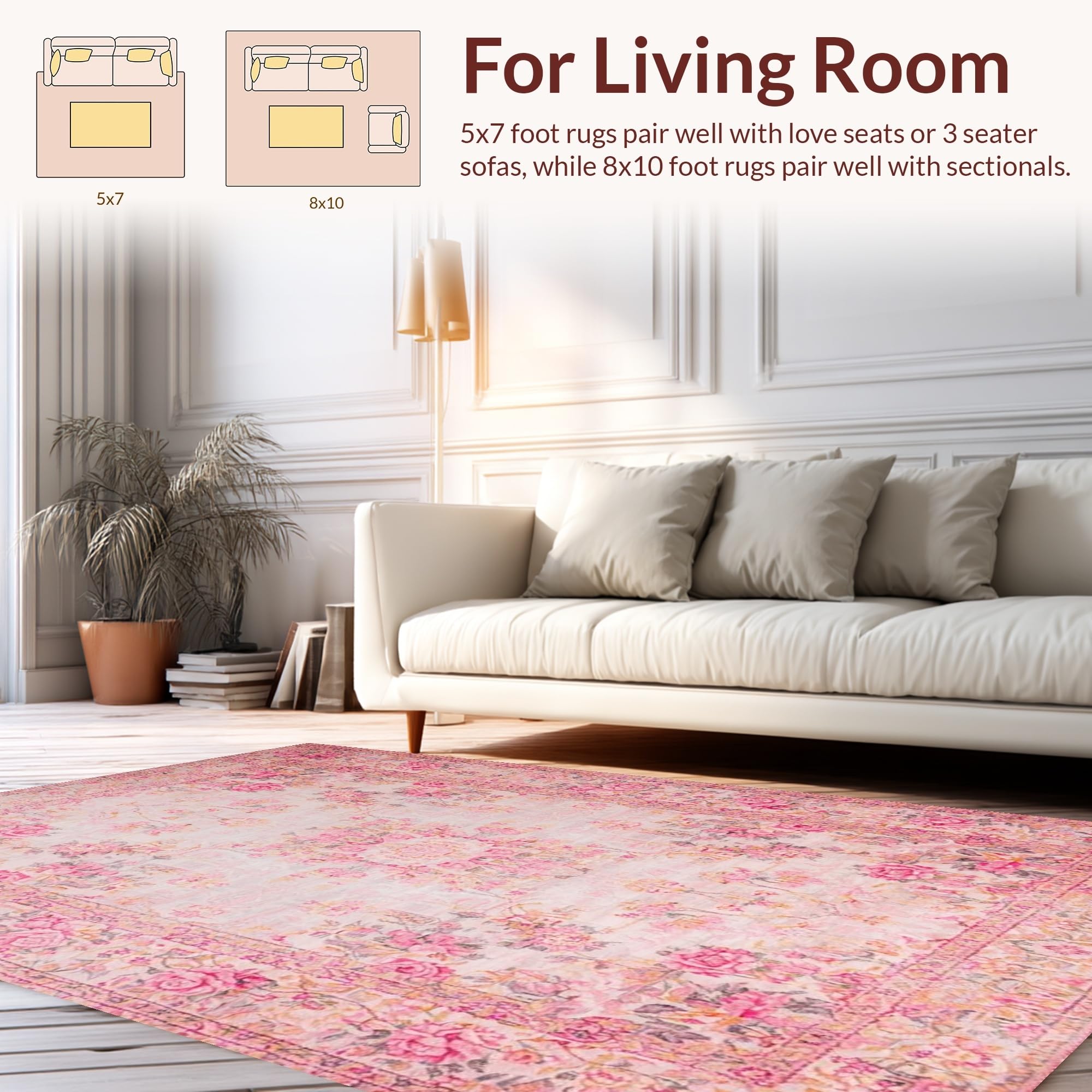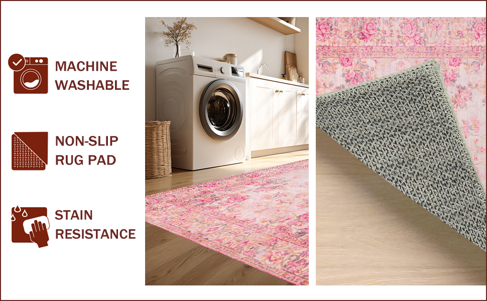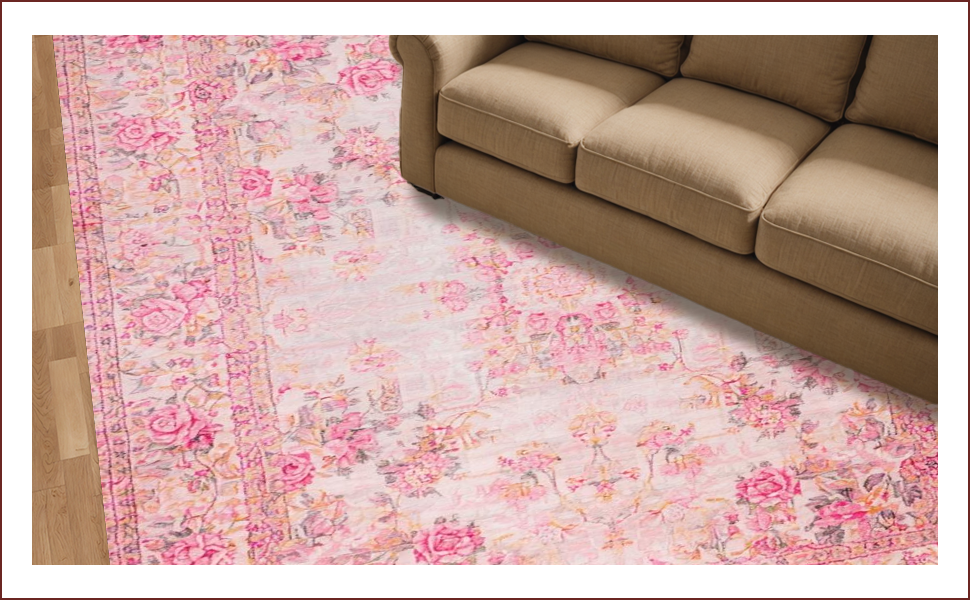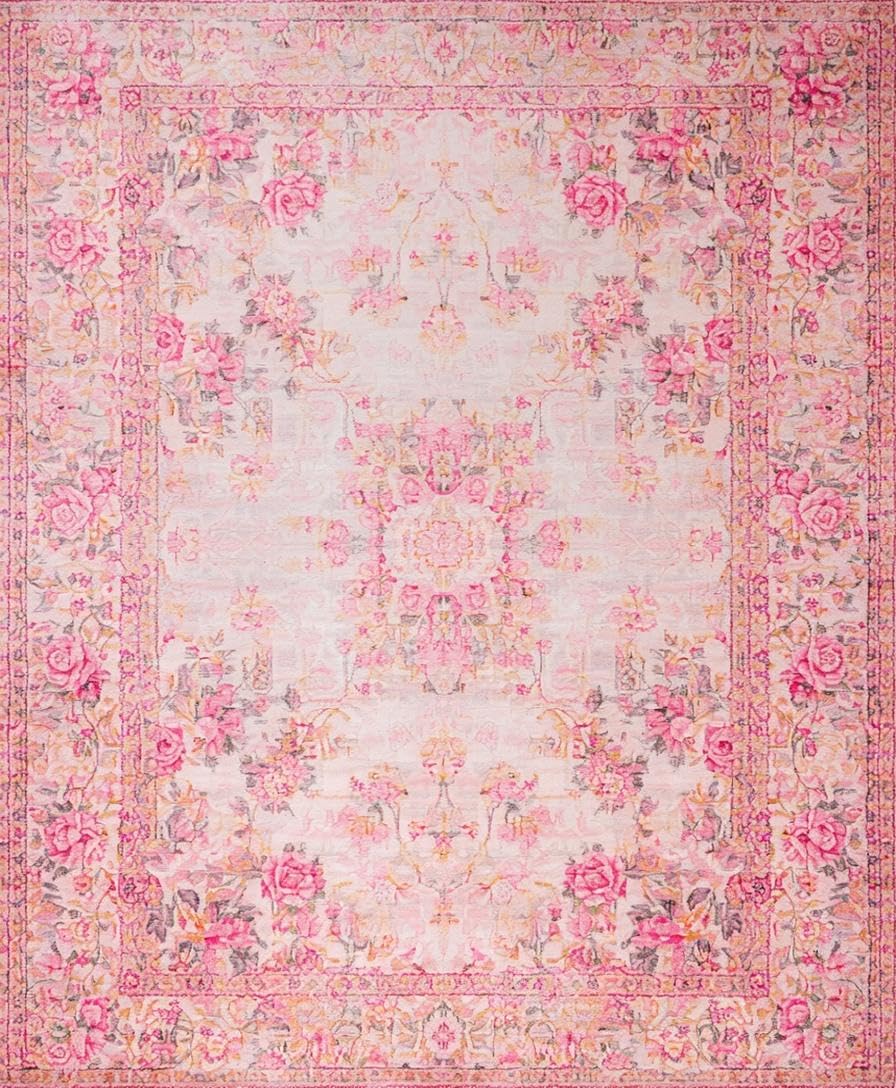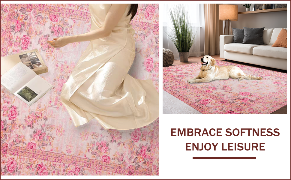 Ultra Soft Area Rug, Non Slip, Stain Resistant, Washable Area Rugs for Living Room, Bedroom, Romantic Vintage Rose Aesthetic(Pink) Overview: