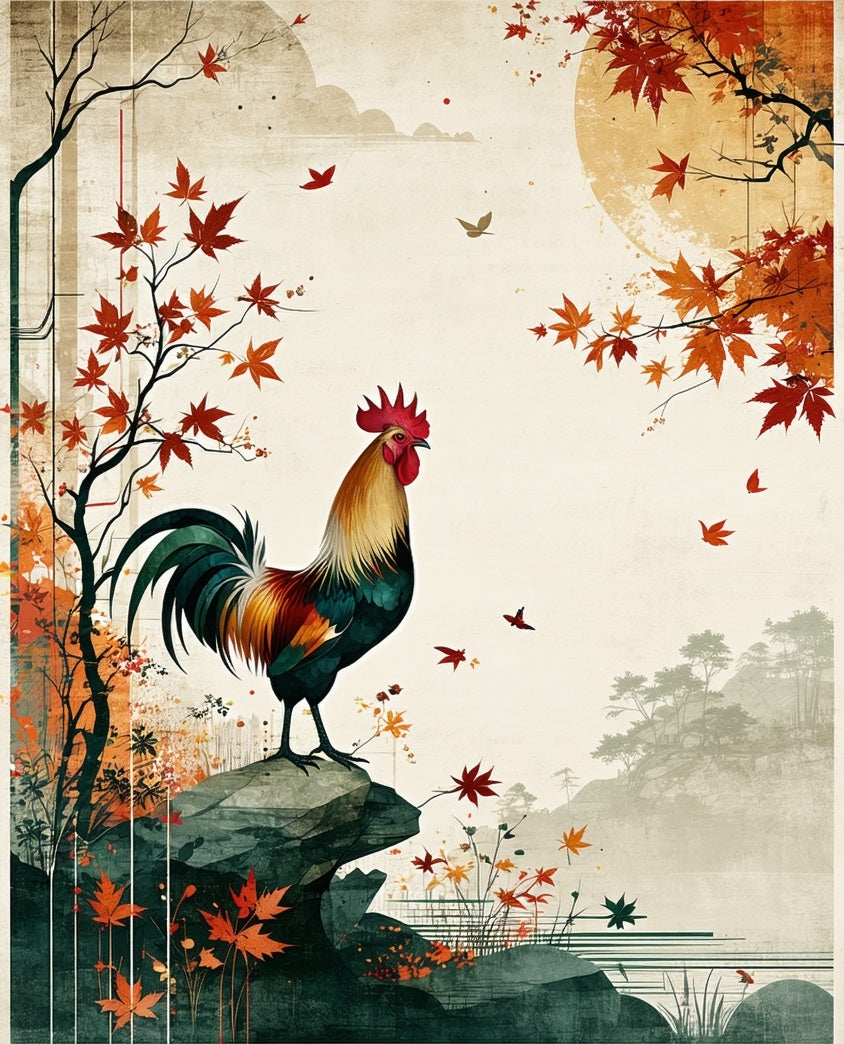Rooster Delight Beige Artistic Poultry & Countryside Motifs(Beige)