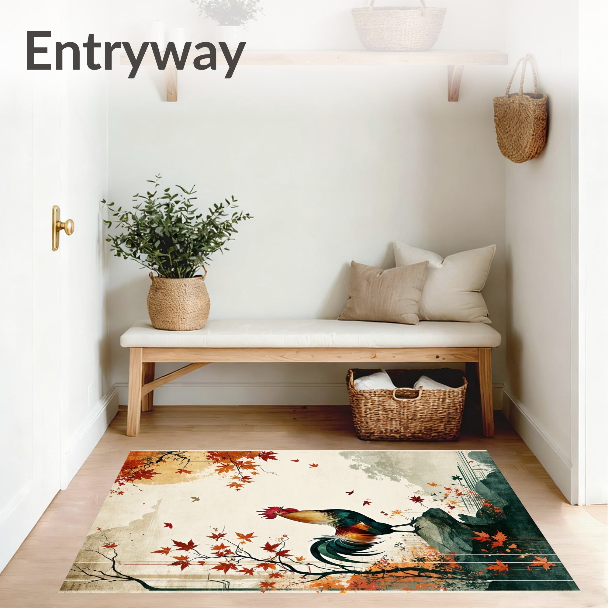 Ultra Soft Area Rug, Non Slip, Stain Resistant, Washable Area Rugs for Living Room, Bedroom, Rooster Delight Beige Artistic Poultry & Countryside Motifs(Beige) Overview: