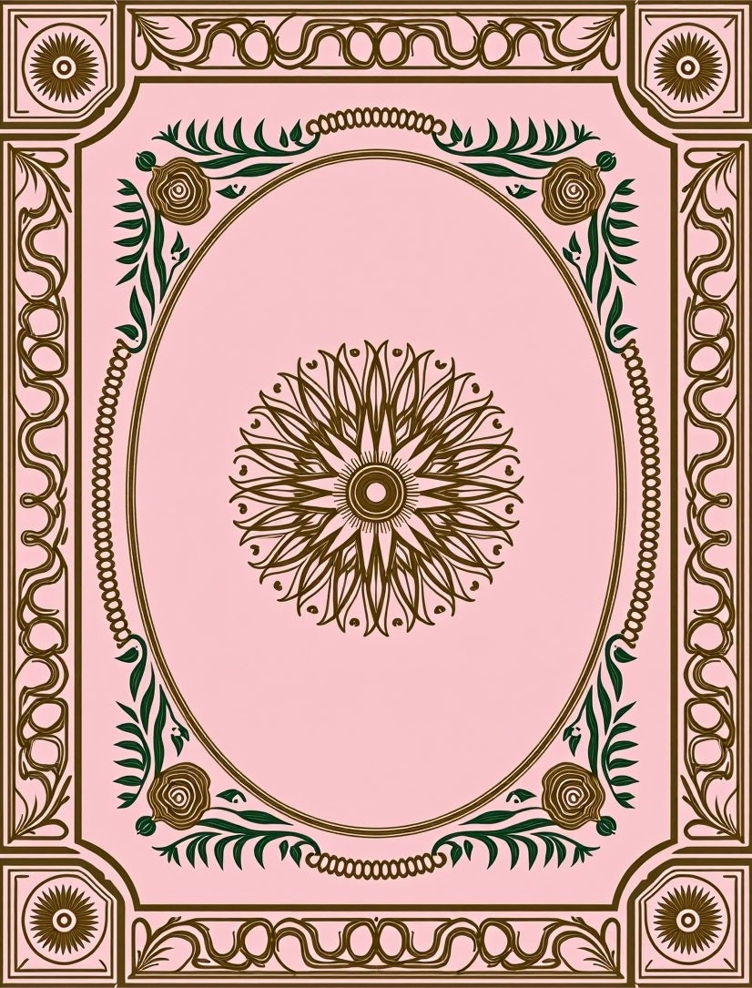Rose Blossom Medallion Motif with Intertwined Petals and Delicate Vines(Pink)