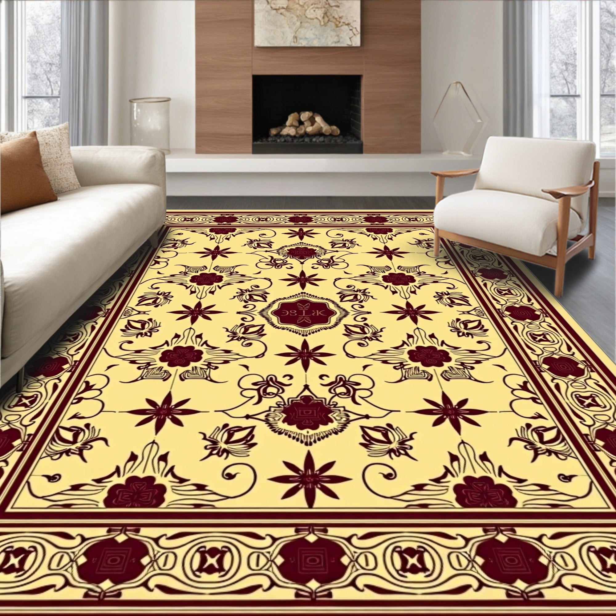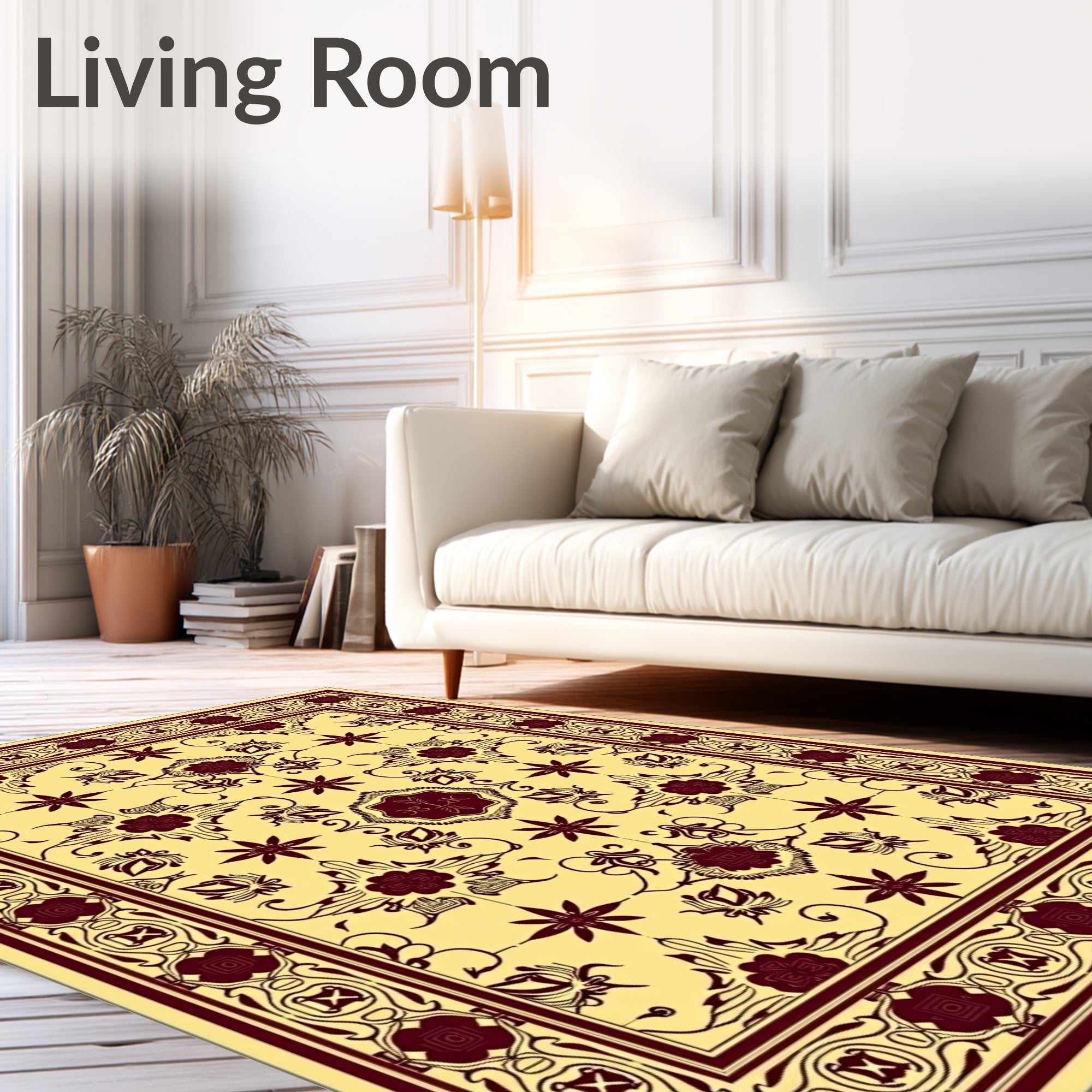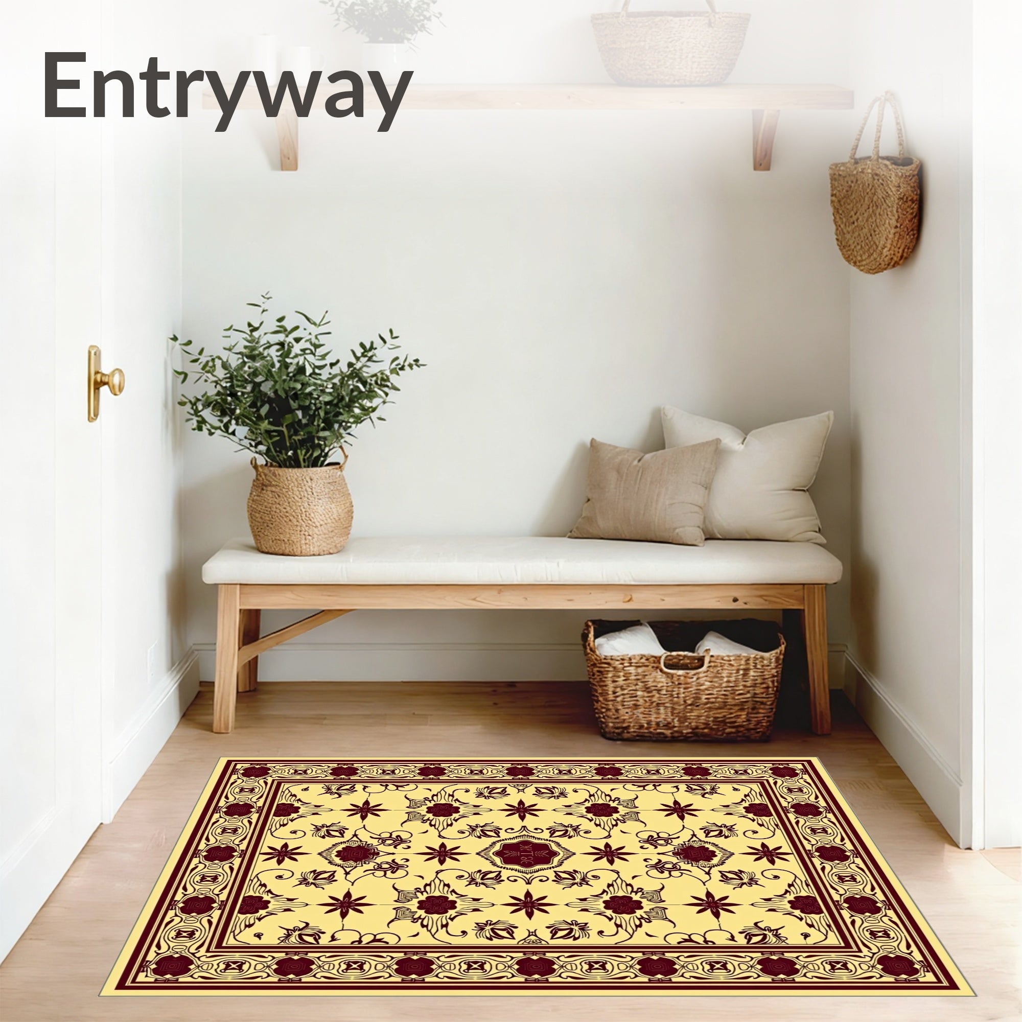 Flatwoven High Traffic Area Rug, Rose Garden Damask with Interlocking Vine Motifs, Non Slip, Stain Resistant, Washable Area Rugs for Living Room, Bedroom (Beige) Overview: