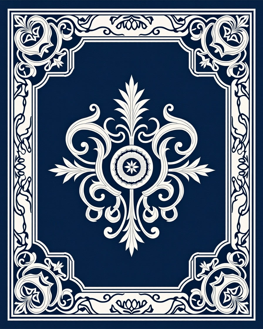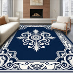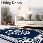 Ultra Soft Area Rug, Non Slip, Stain Resistant, Washable Area Rugs for Living Room, Bedroom, Rosette Damask Traditional Fancy Luxurious Arrangement(Blue) Overview: