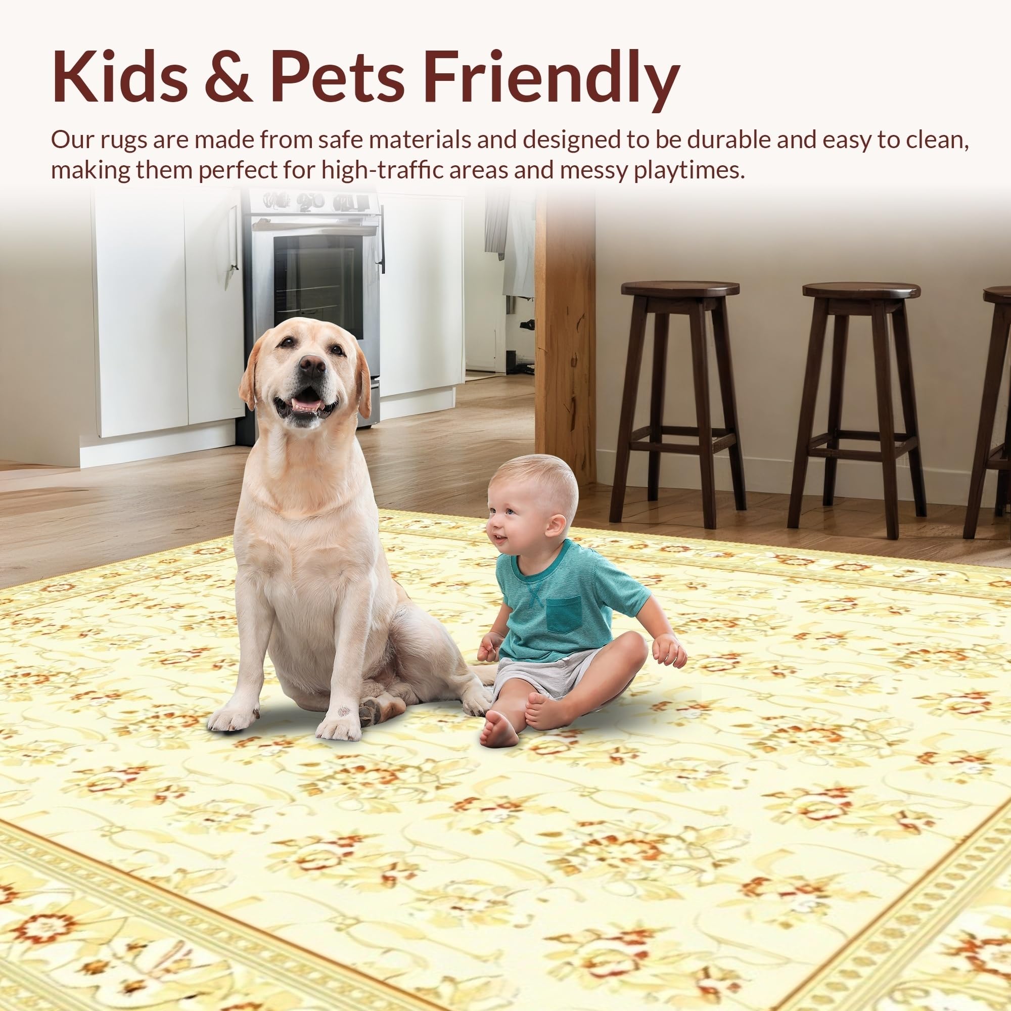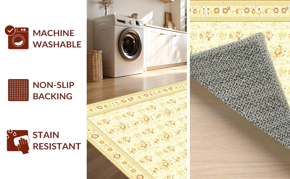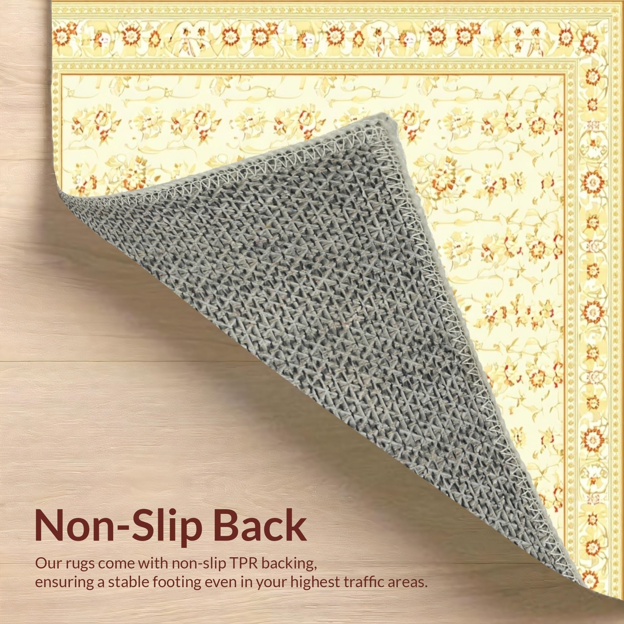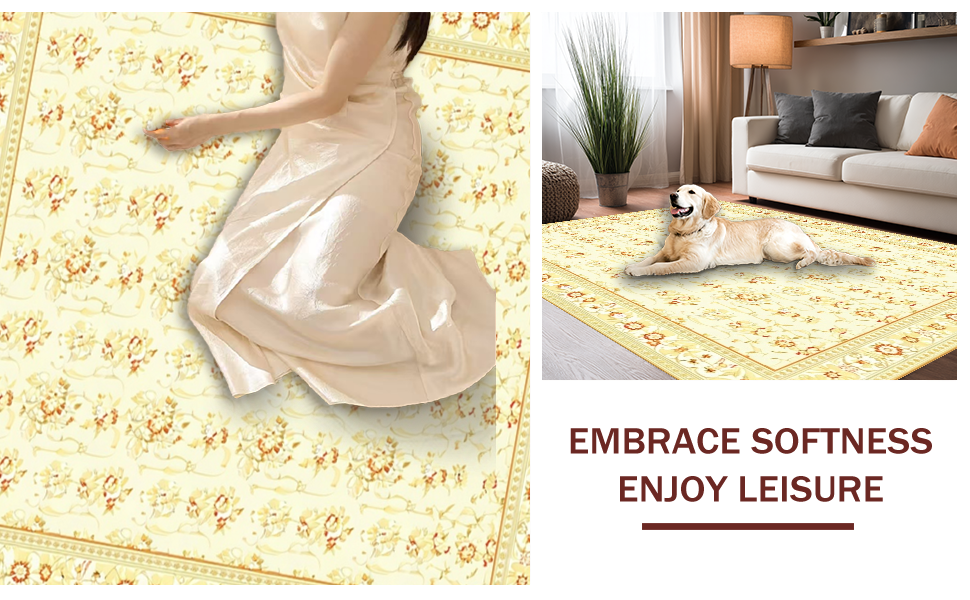 Ultra Soft Area Rug, Non Slip, Stain Resistant, Washable Area Rugs for Living Room, Bedroom, Rustic Abstract Floral Design(Beige) Overview: