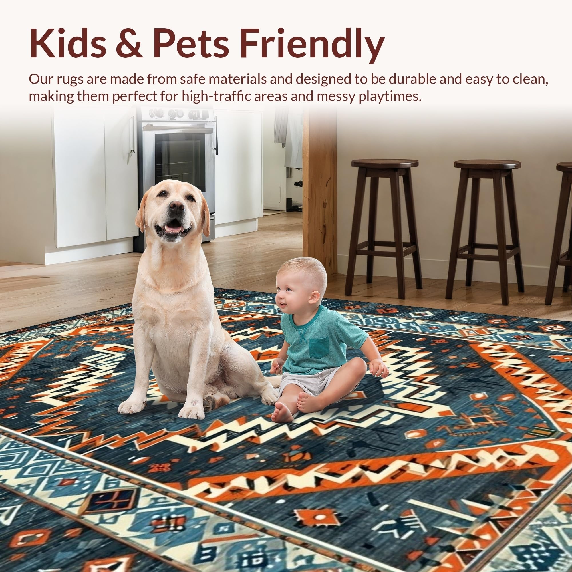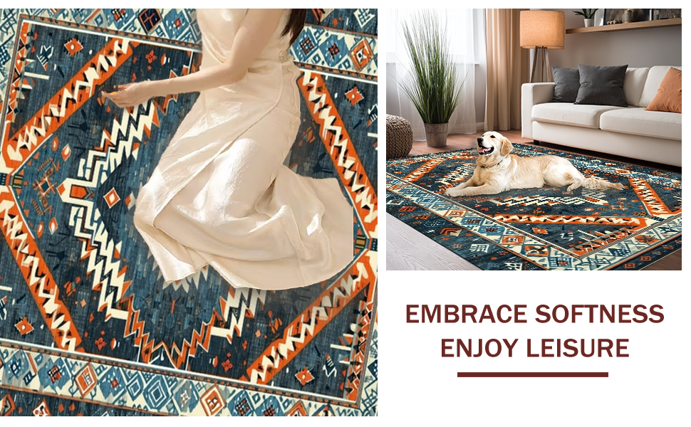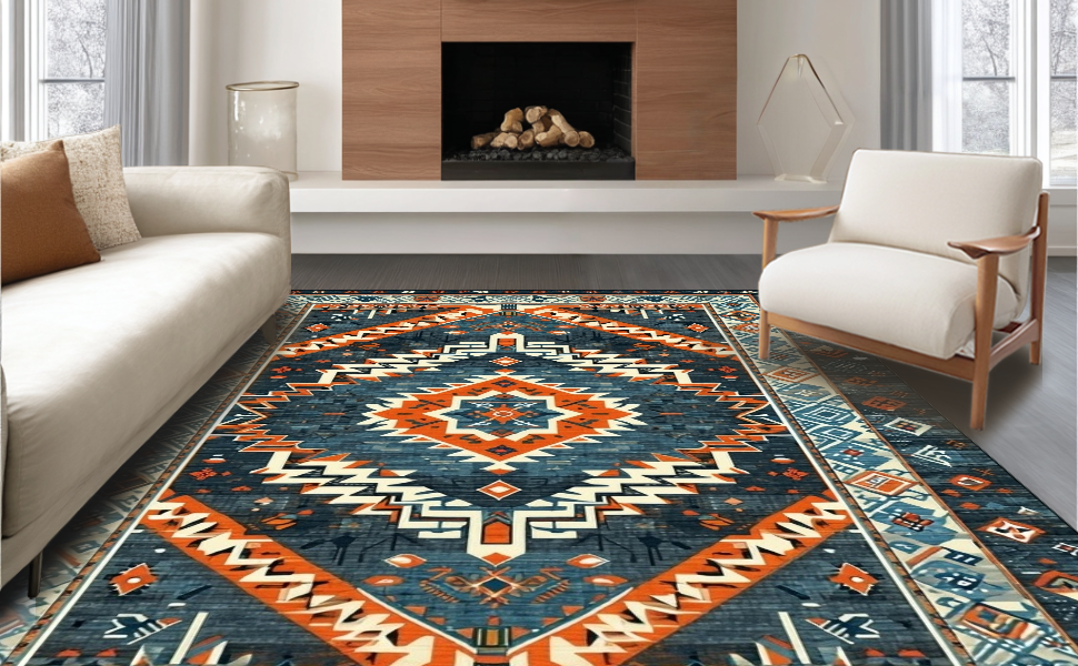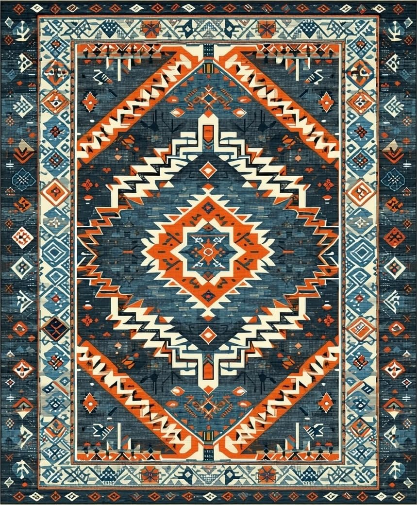 Ultra Soft Area Rug, Non Slip, Stain Resistant, Washable Area Rugs for Living Room, Bedroom, Rustic Abstract Geometric Design(Blue) Overview: