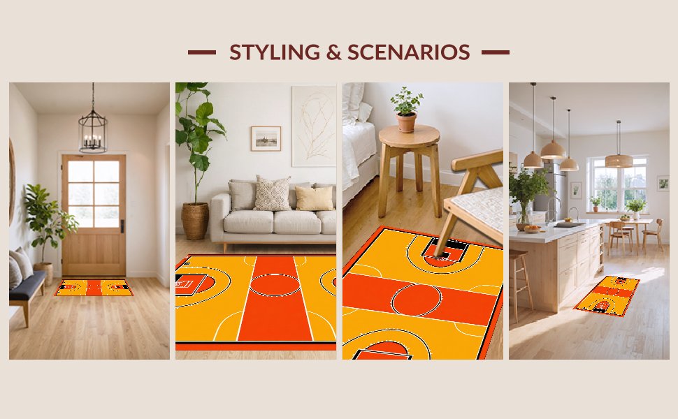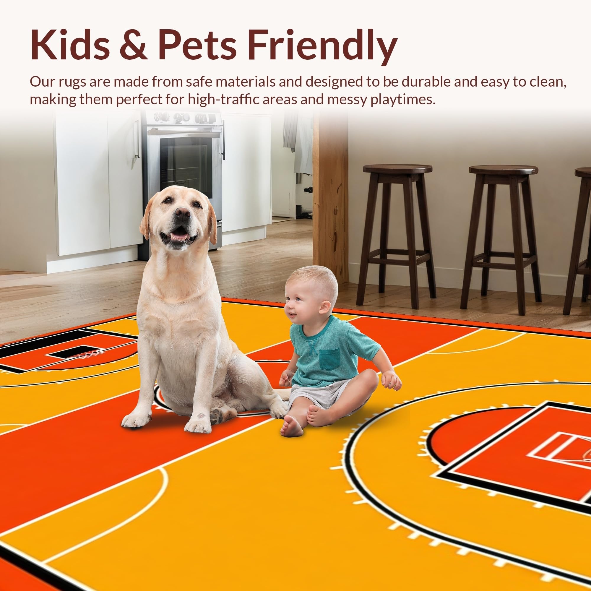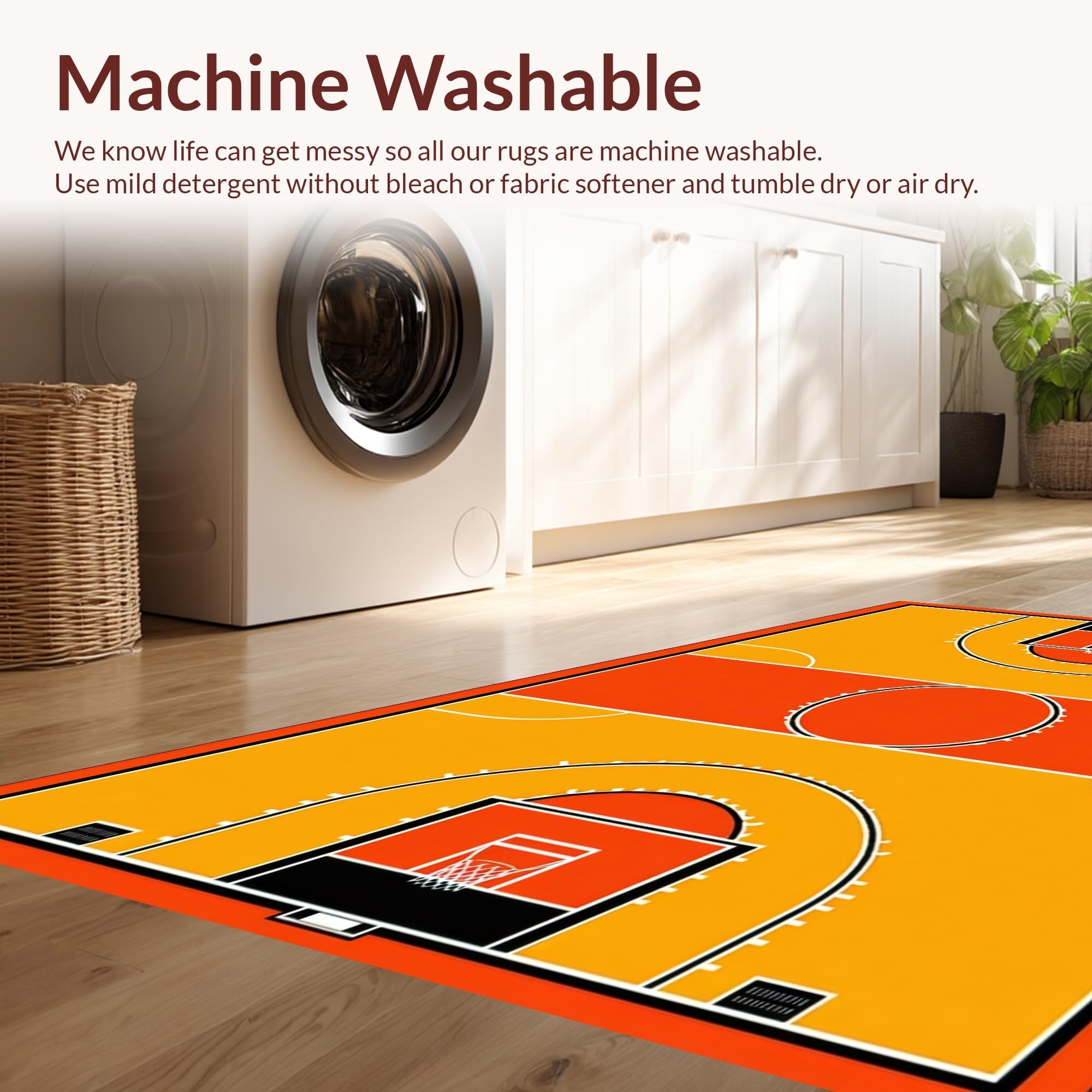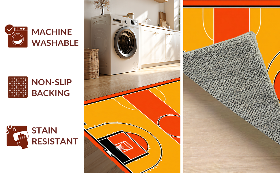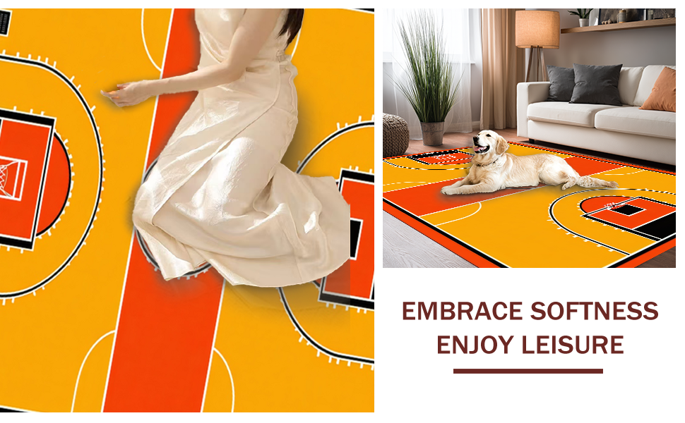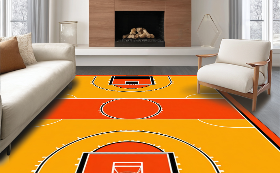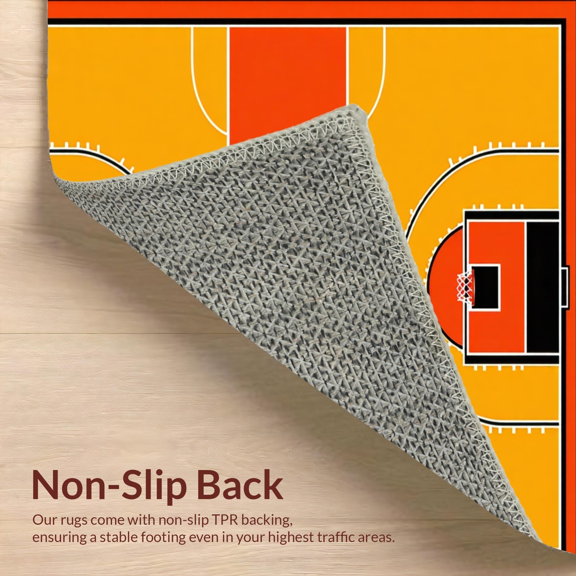 Ultra Soft Area Rug, Non Slip, Stain Resistant, Washable Area Rugs for Living Room, Bedroom, Rustic Athletic Court Vibe(Orange) Overview: