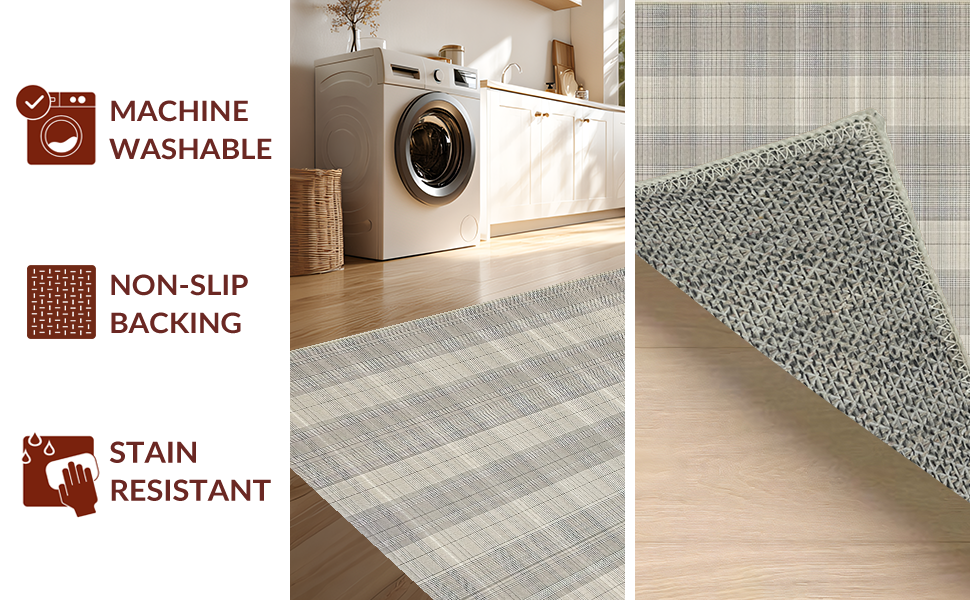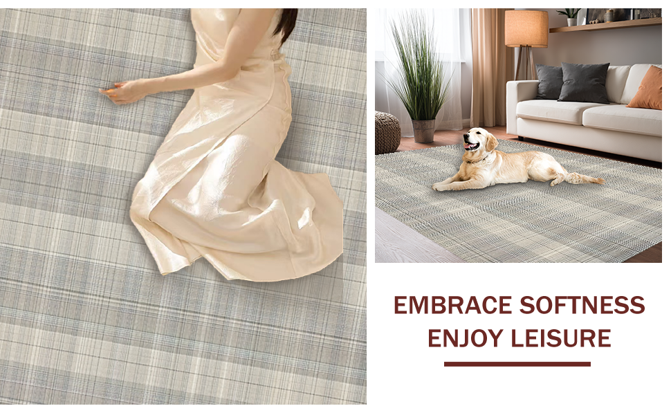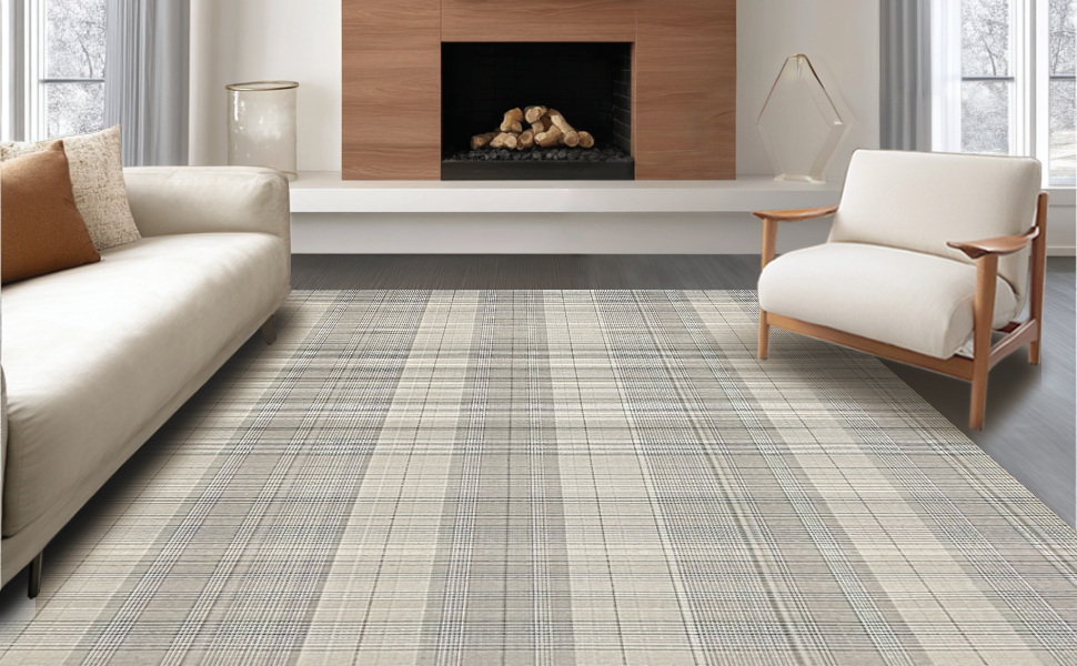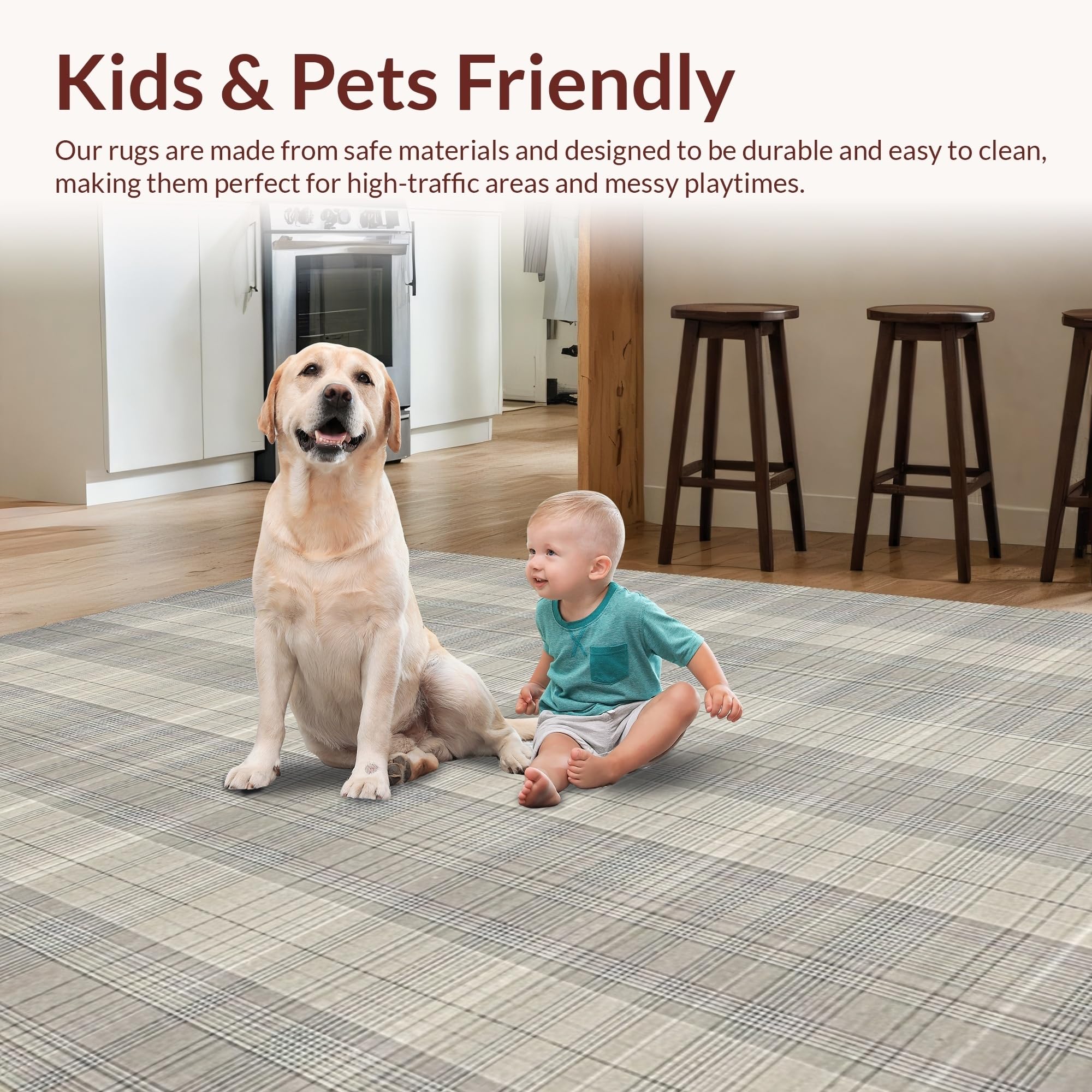 Ultra Soft Area Rug, Non Slip, Stain Resistant, Washable Area Rugs for Living Room, Bedroom, Rustic Beige Plaid Charm(Gray) Overview: