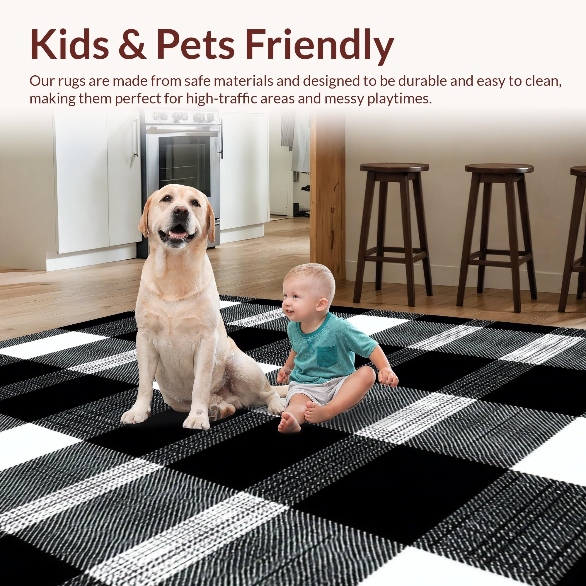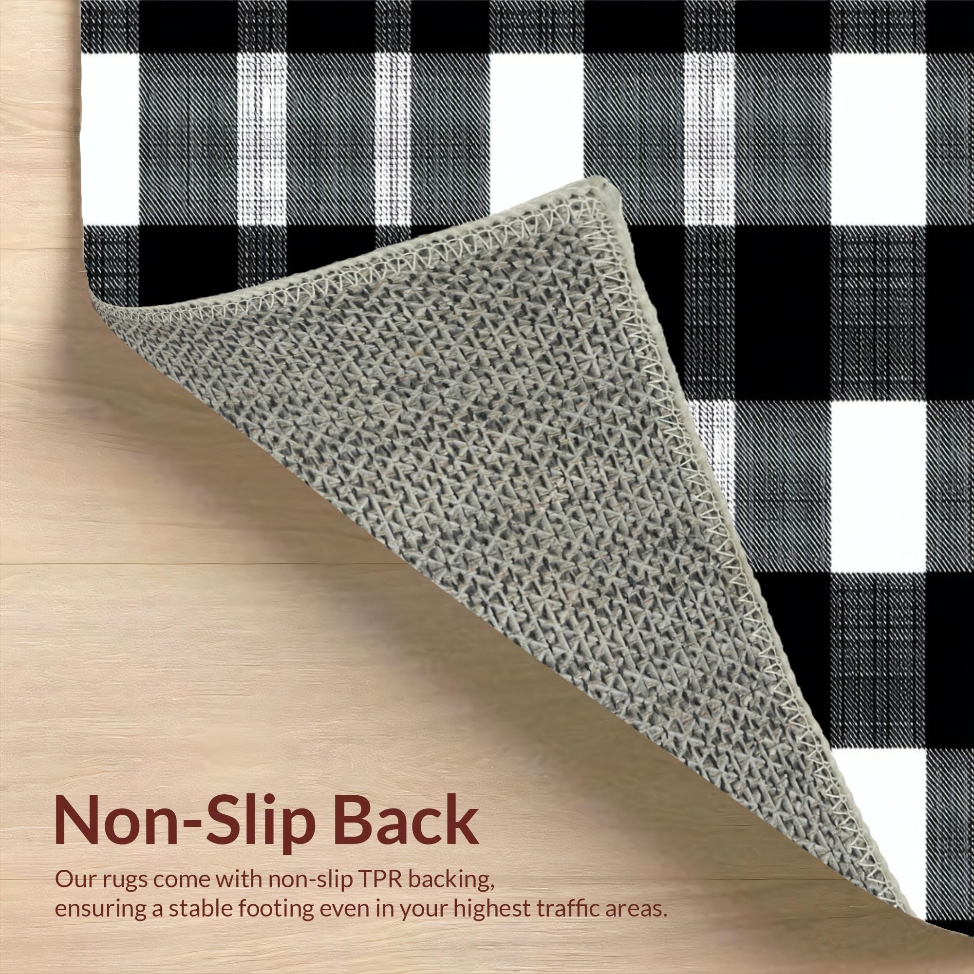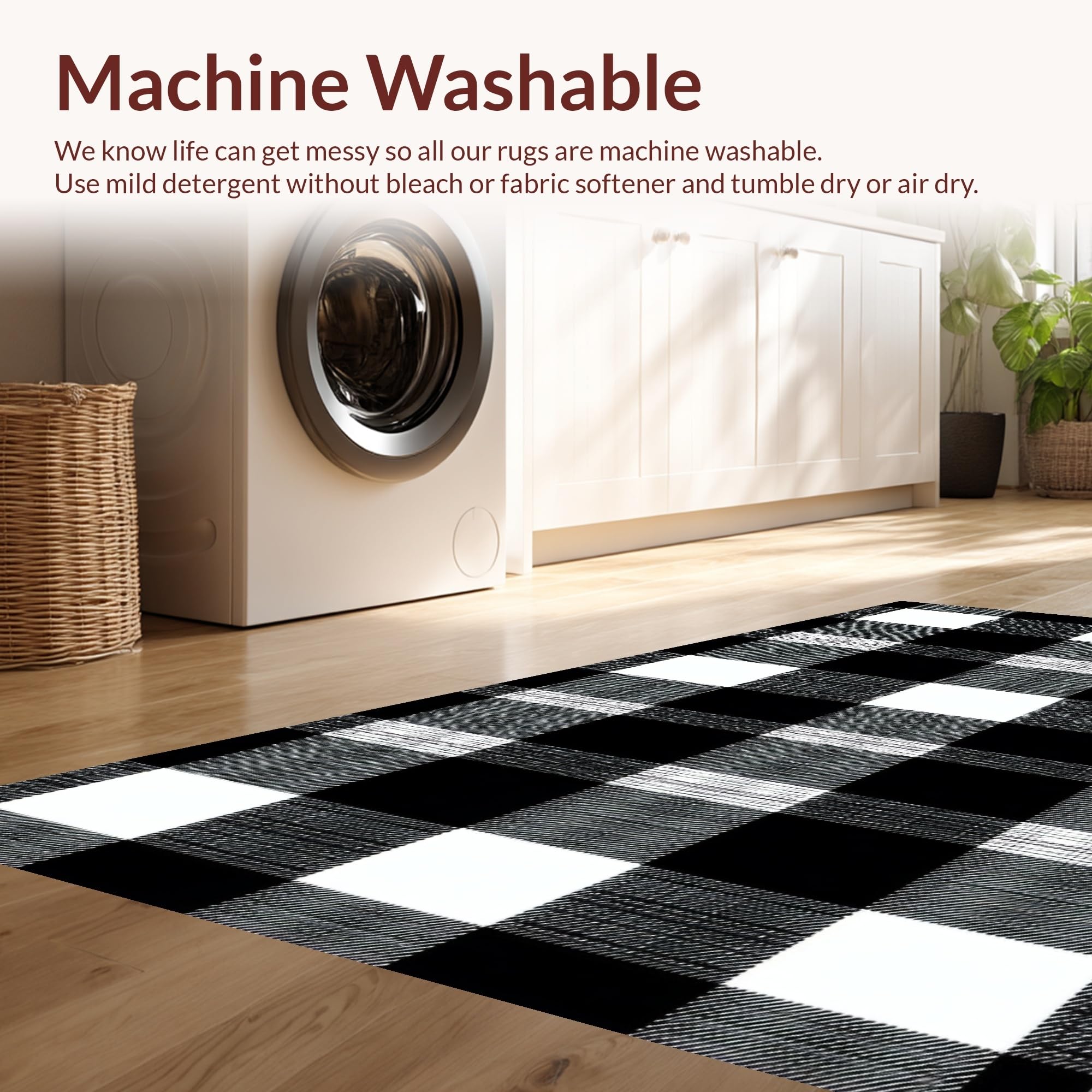 Ultra Soft Area Rug, Non Slip, Stain Resistant, Washable Area Rugs for Living Room, Bedroom, Rustic Black and White Check Motif(Black) Overview: