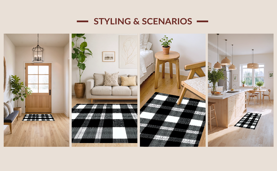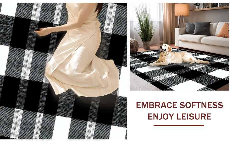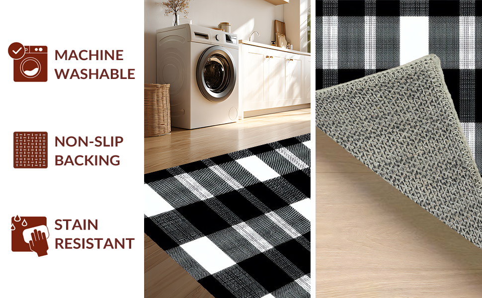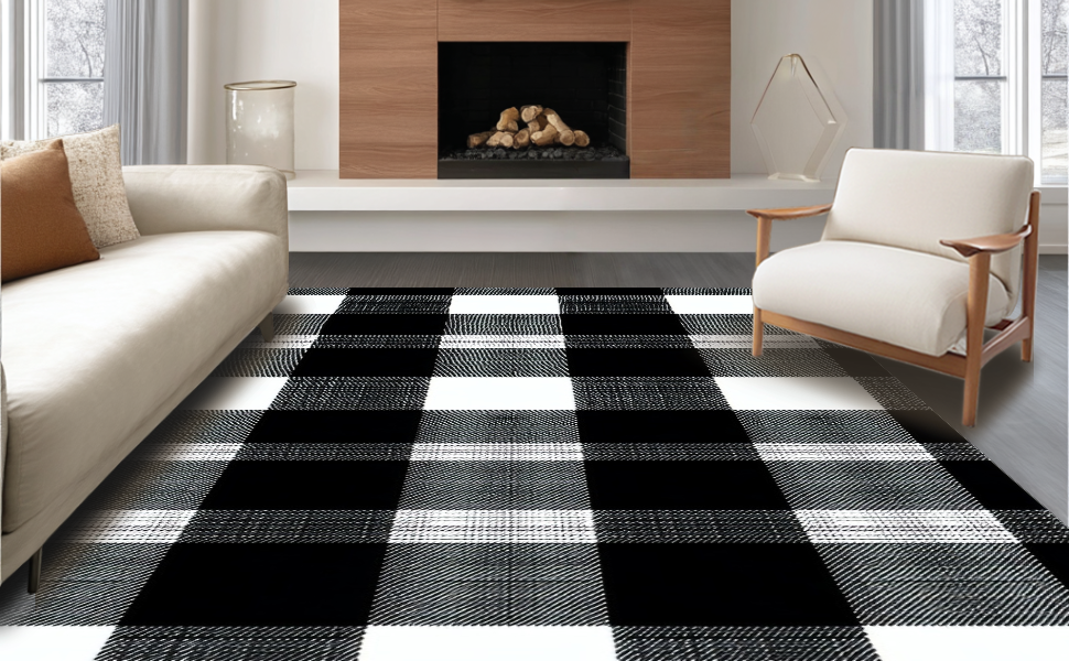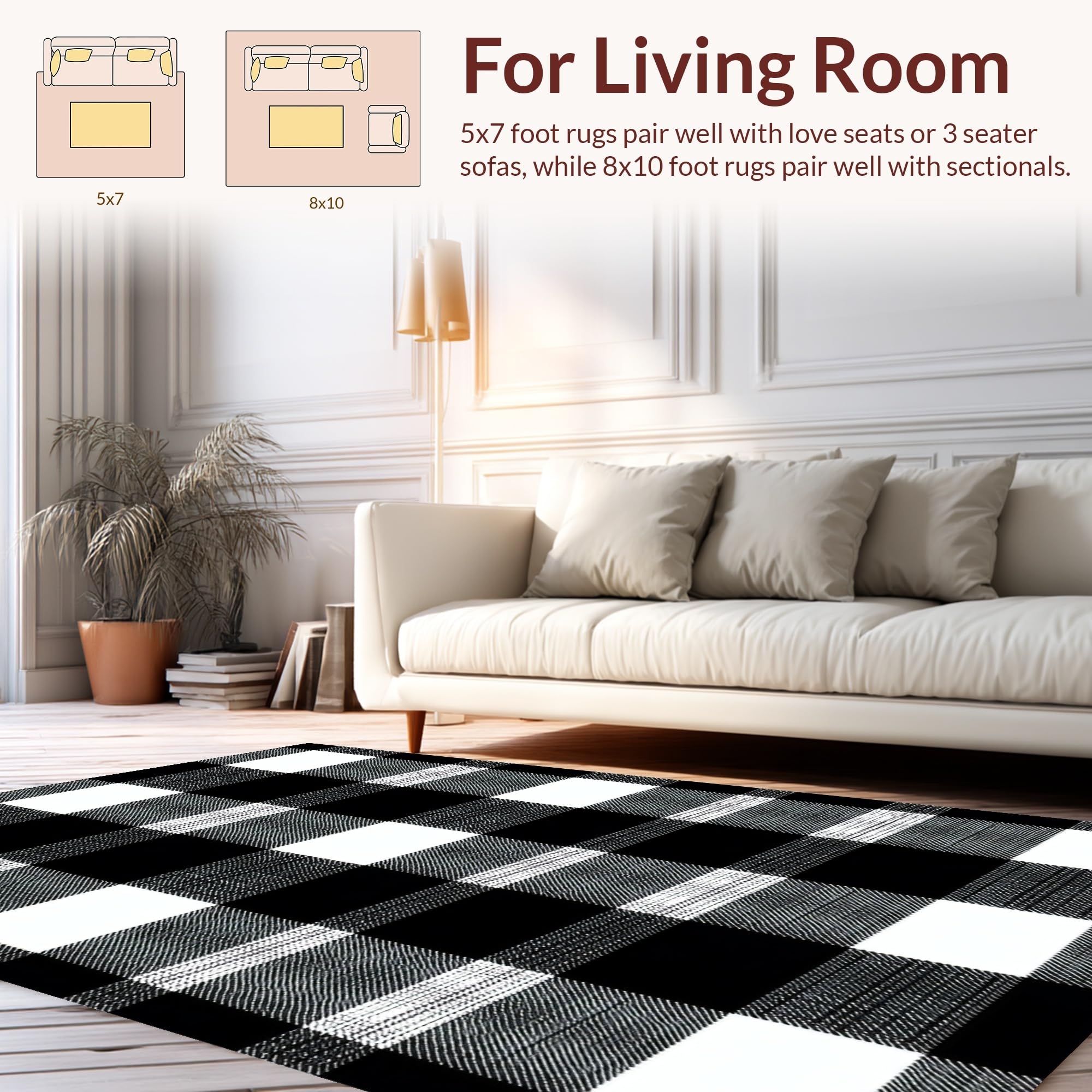 Ultra Soft Area Rug, Non Slip, Stain Resistant, Washable Area Rugs for Living Room, Bedroom, Rustic Black and White Check Motif(Black) Overview: