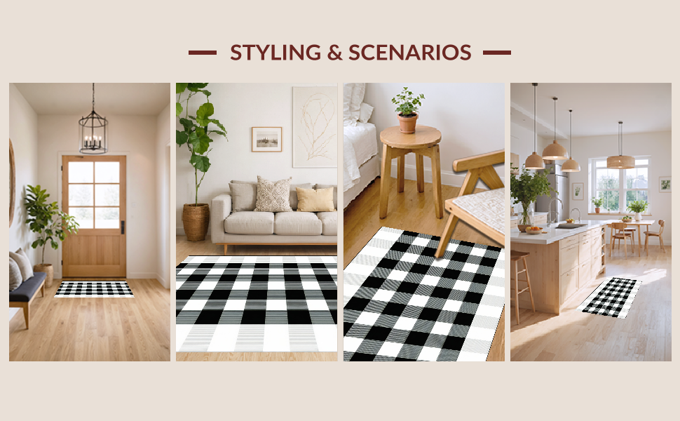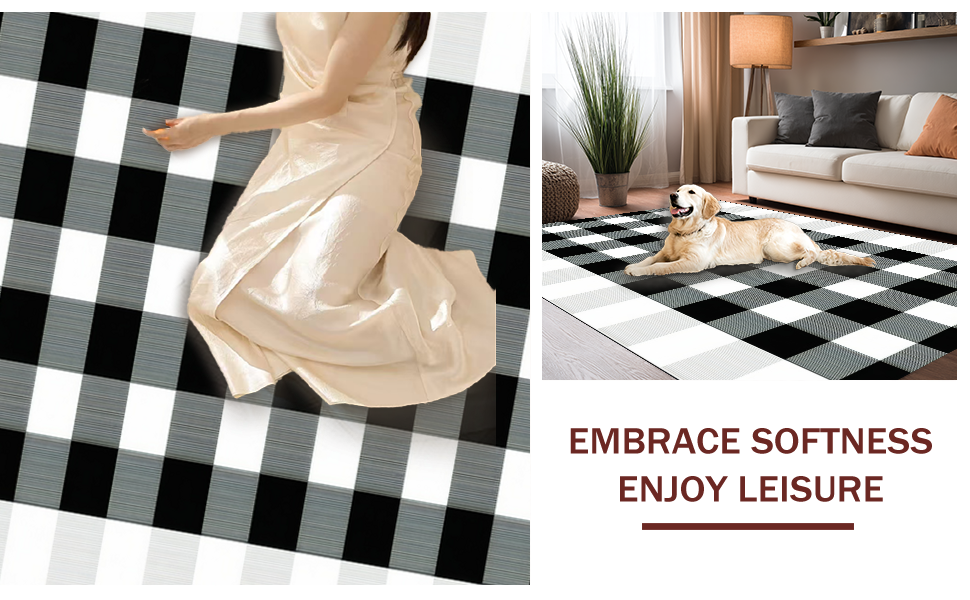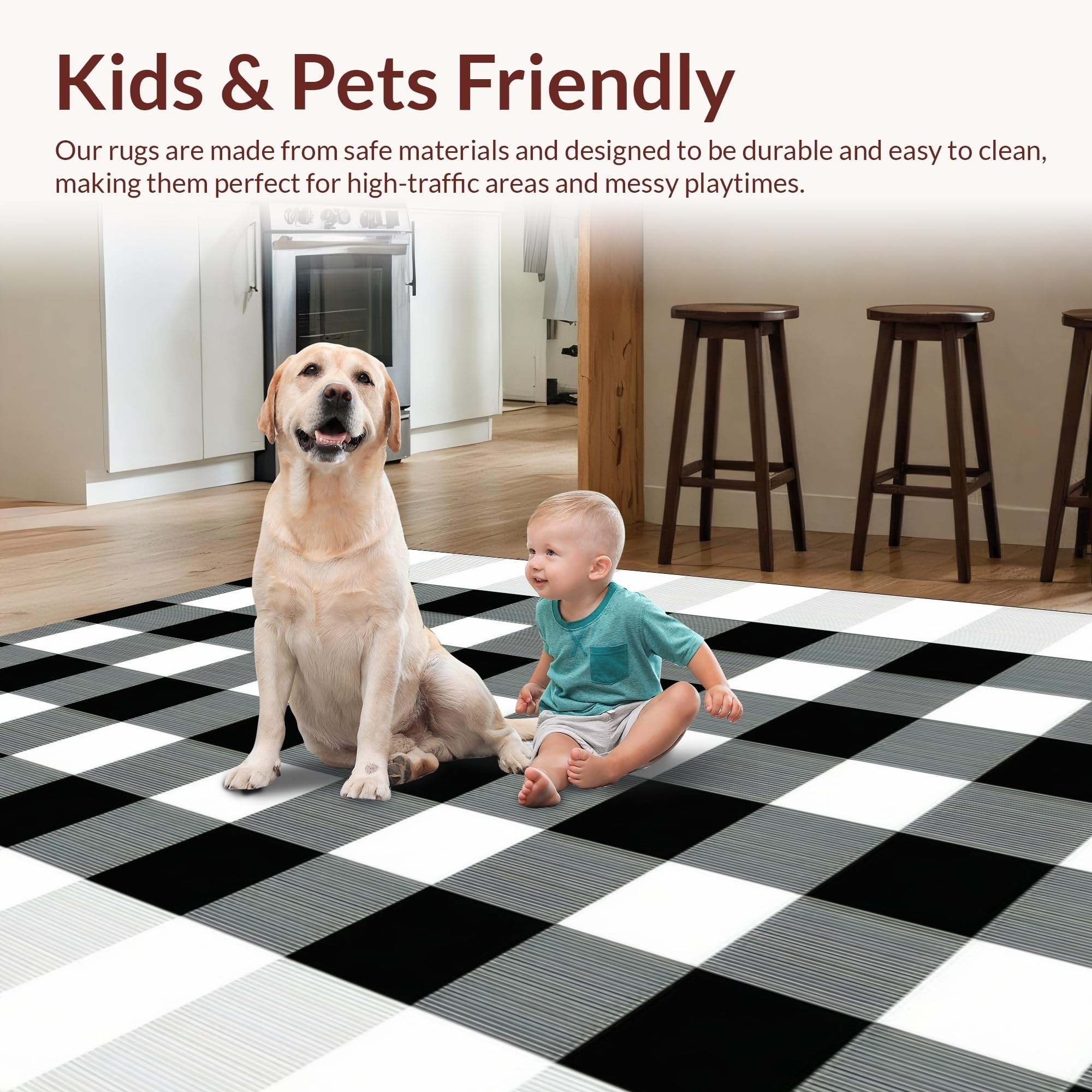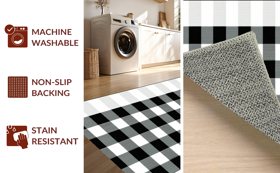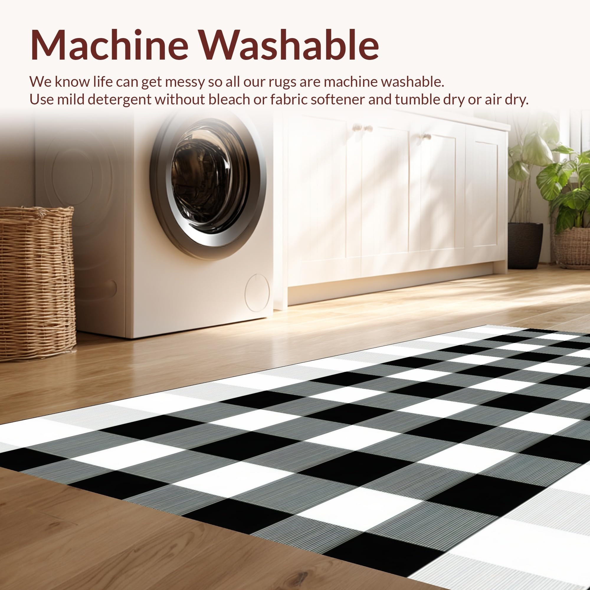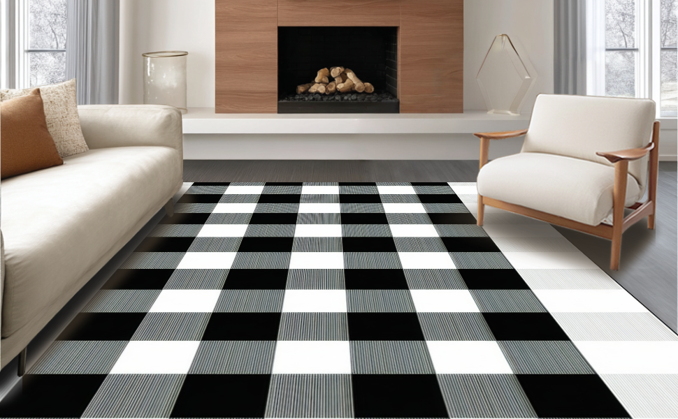 Ultra Soft Area Rug, Non Slip, Stain Resistant, Washable Area Rugs for Living Room, Bedroom, Rustic Black and White Check Pattern(Black) Overview: