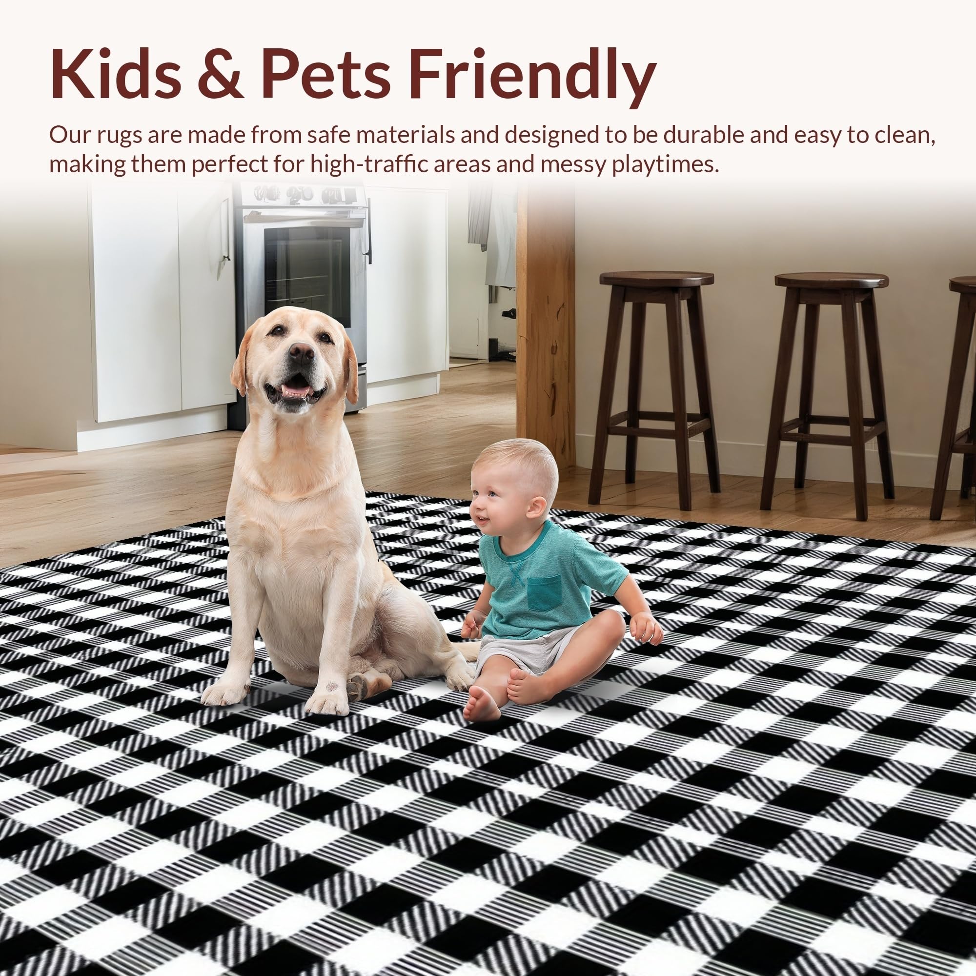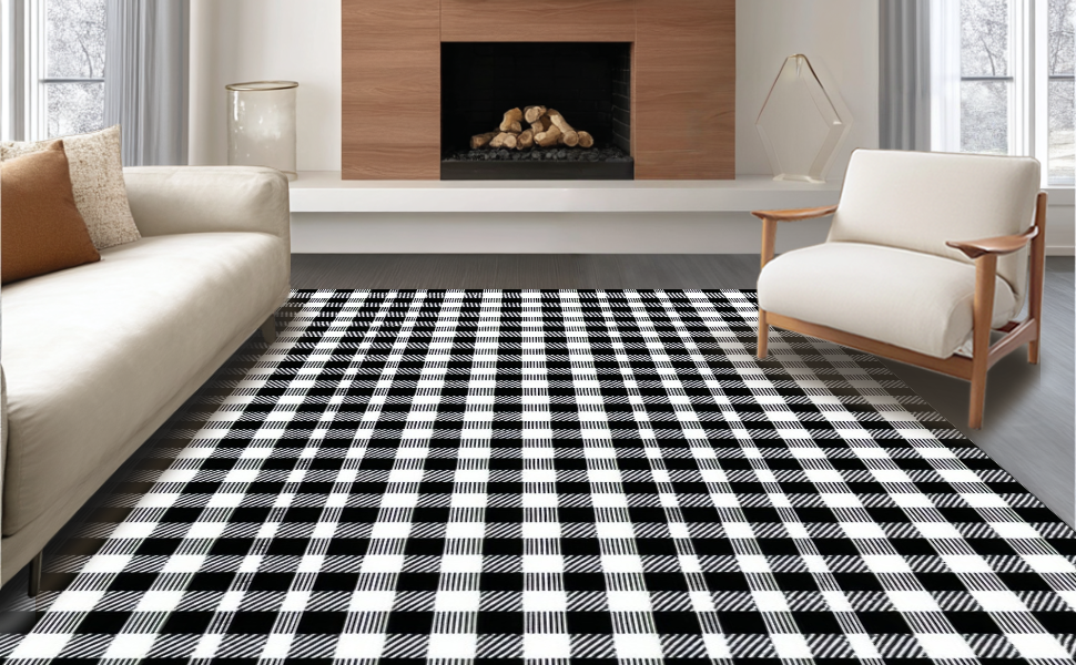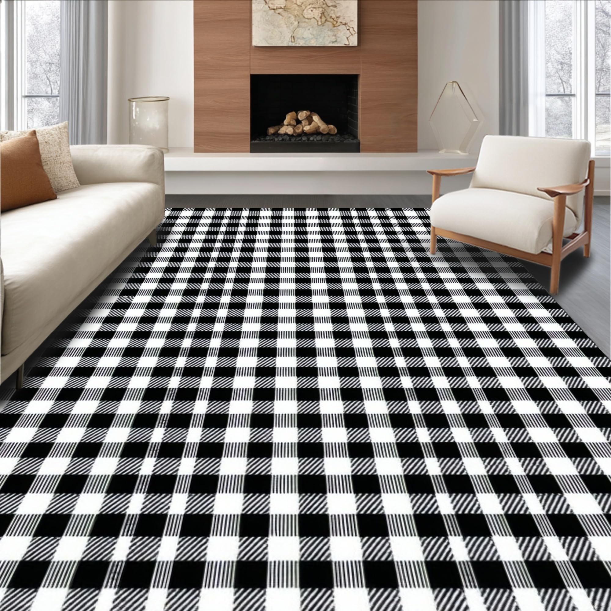 Ultra Soft Area Rug, Non Slip, Stain Resistant, Washable Area Rugs for Living Room, Bedroom, Rustic Black White Checkerboard Aesthetic(Black) Overview: