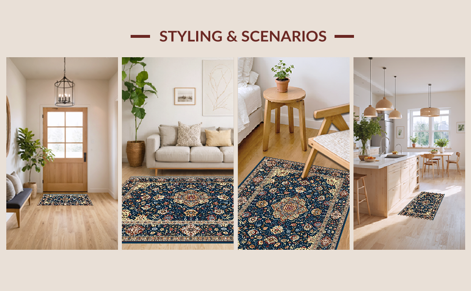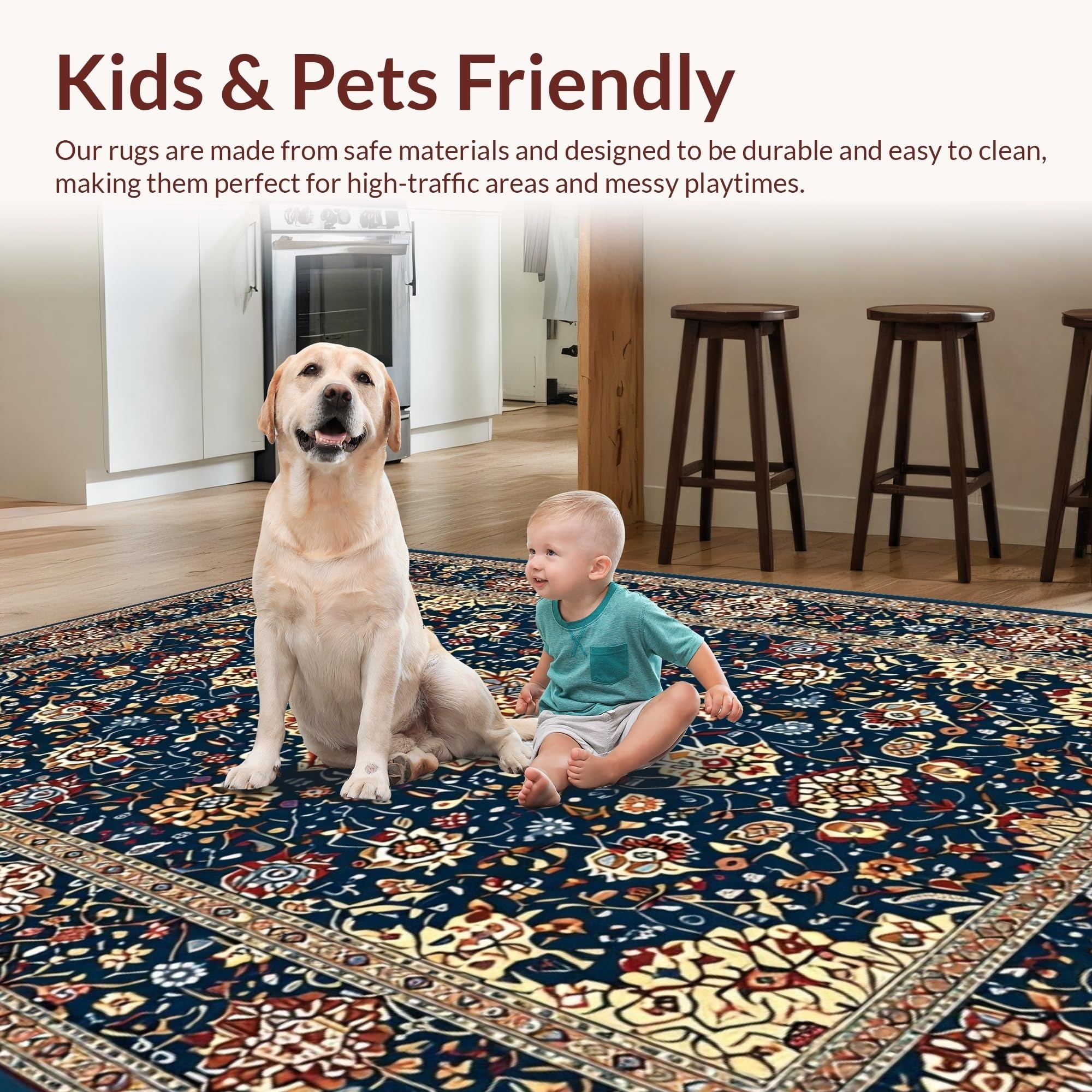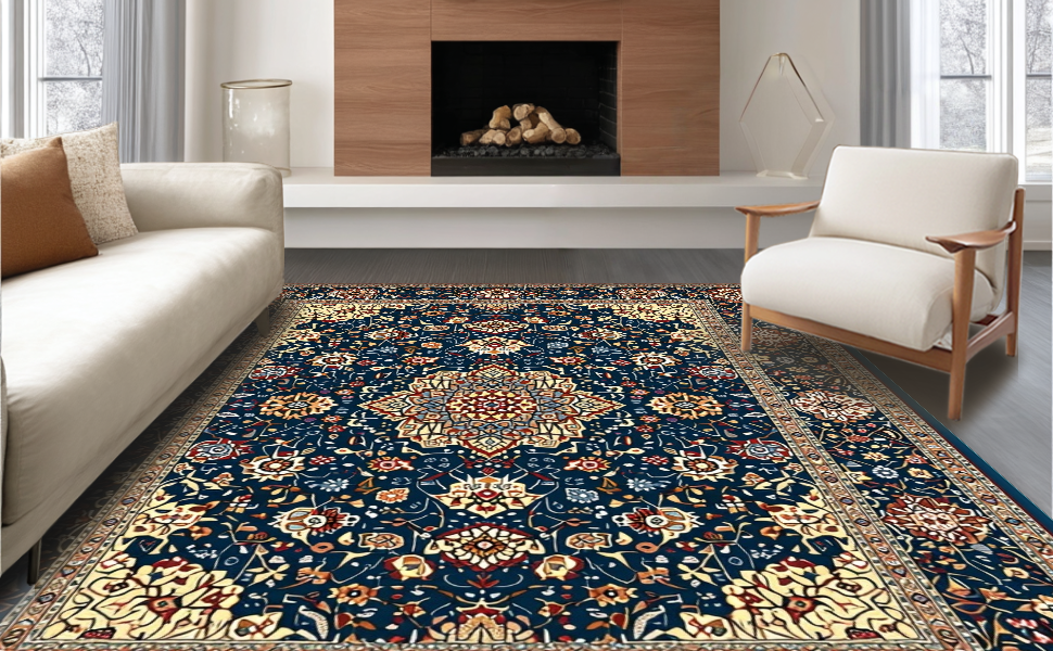 Ultra Soft Area Rug, Non Slip, Stain Resistant, Washable Area Rugs for Living Room, Bedroom, Rustic Blue Brown Geometric Motif(Blue) Overview: