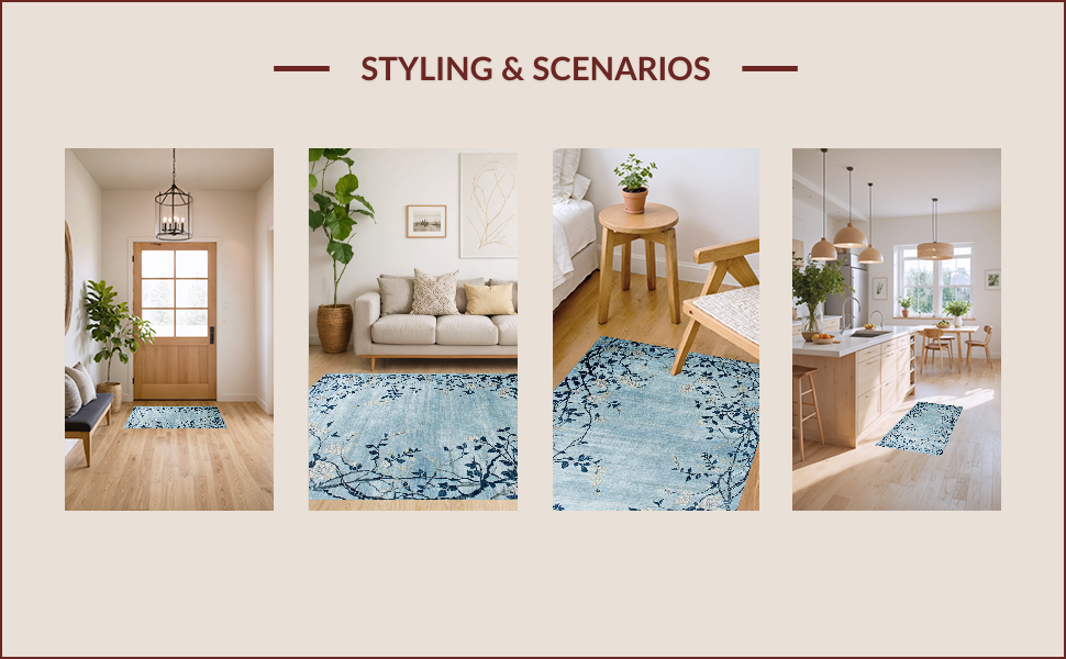 Ultra Soft Area Rug, Non Slip, Stain Resistant, Washable Area Rugs for Living Room, Bedroom, Rustic Blue Tiled Motif(Blue) Overview: