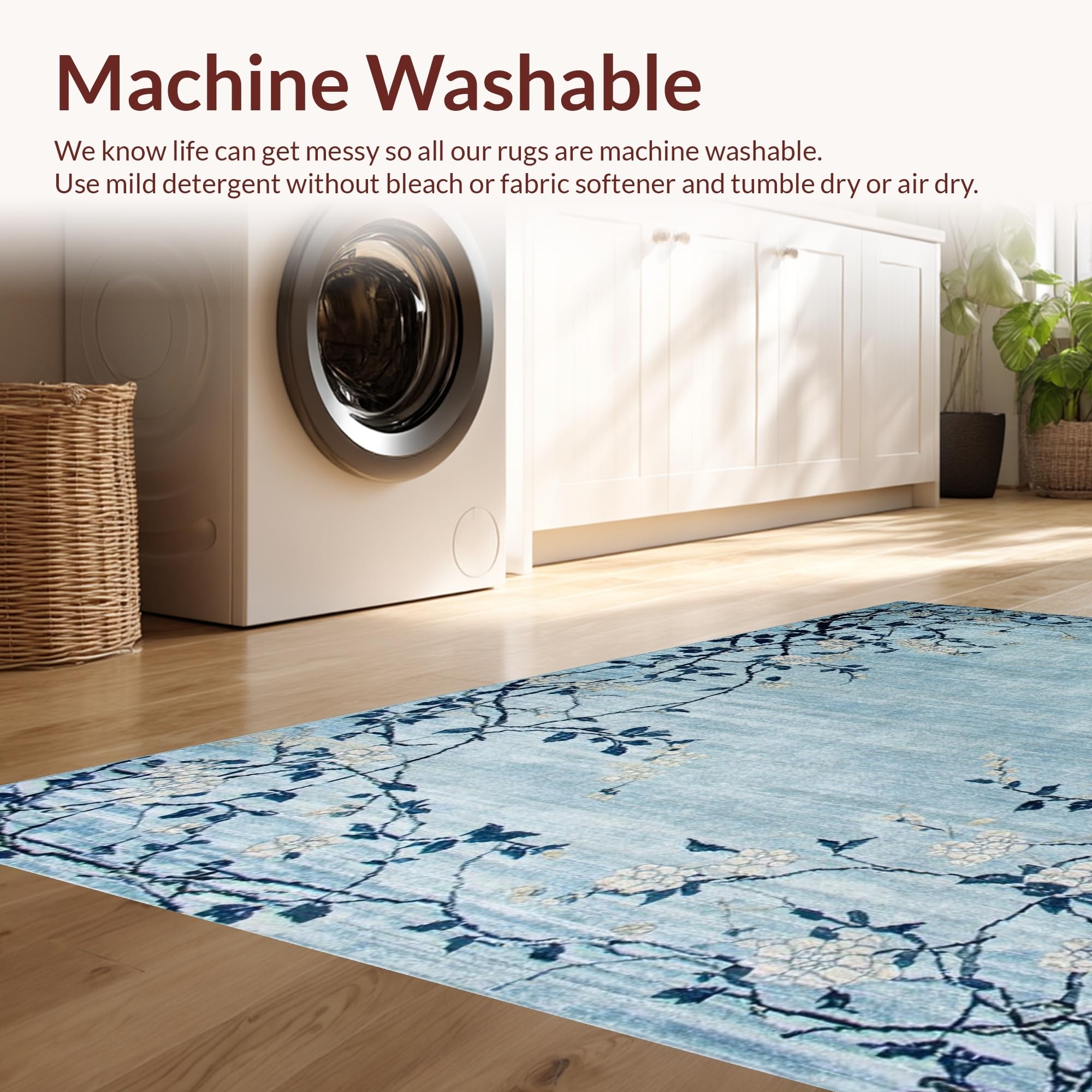 - Machine Washable: Our rugs can be easily thrown in the wash machine.