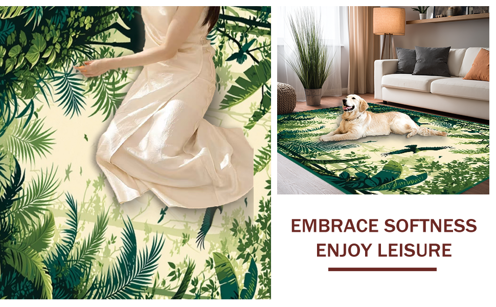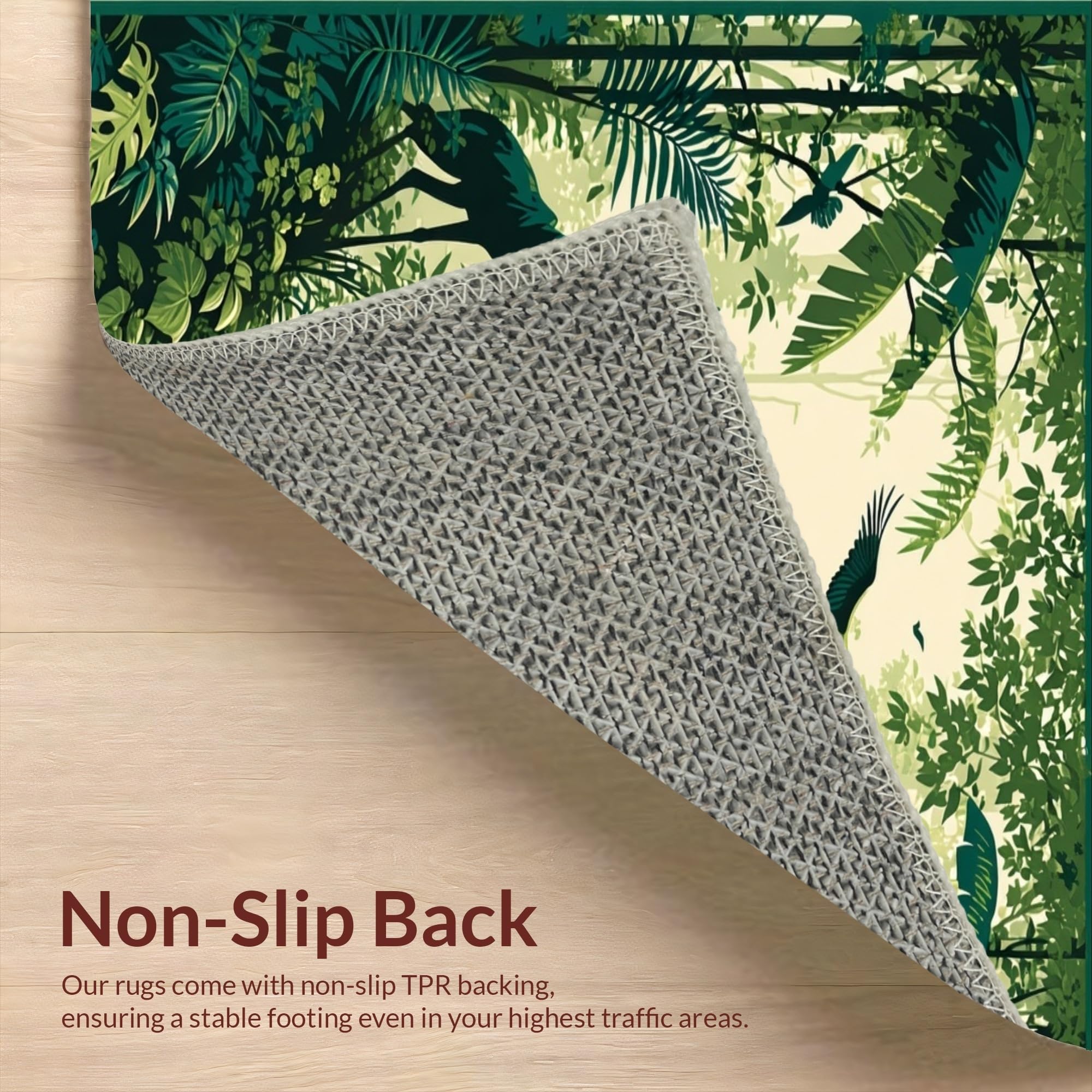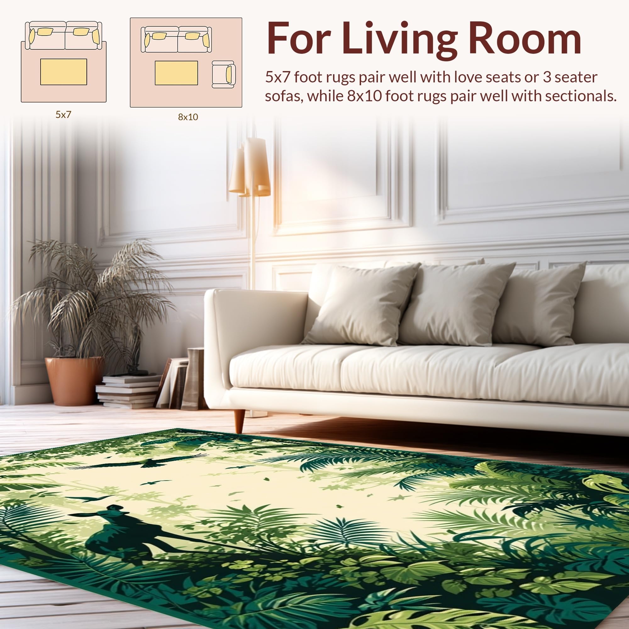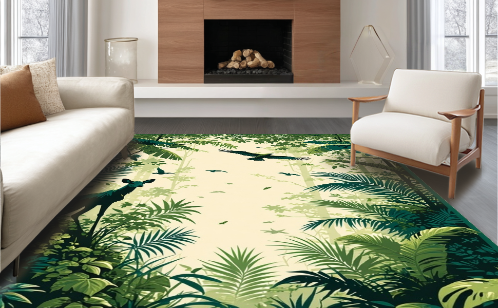 Ultra Soft Area Rug, Non Slip, Stain Resistant, Washable Area Rugs for Living Room, Bedroom, Rustic Botanical Jungle Scene(Green) Overview: