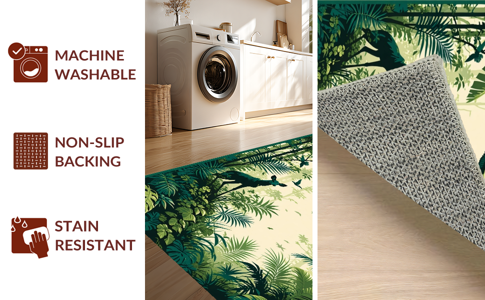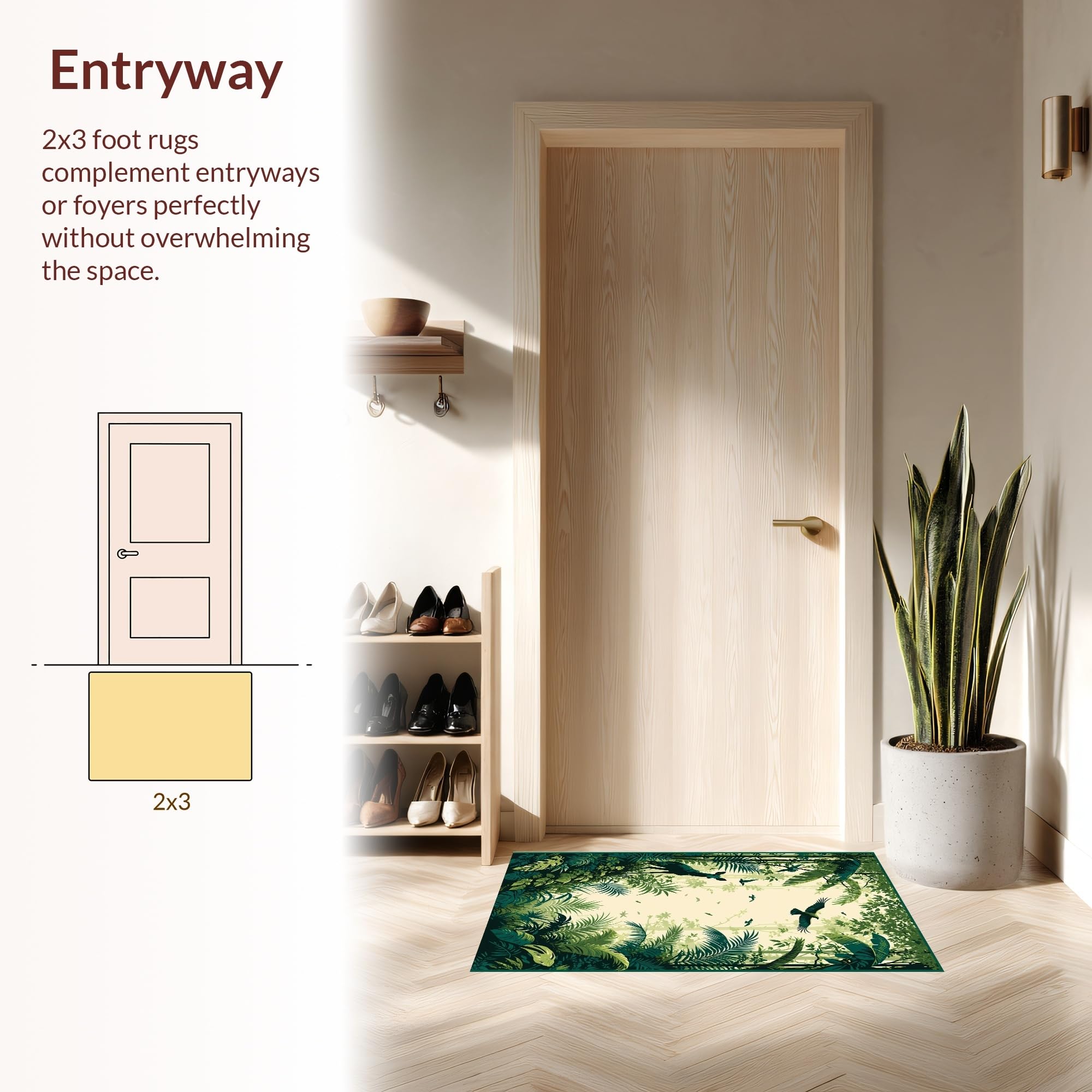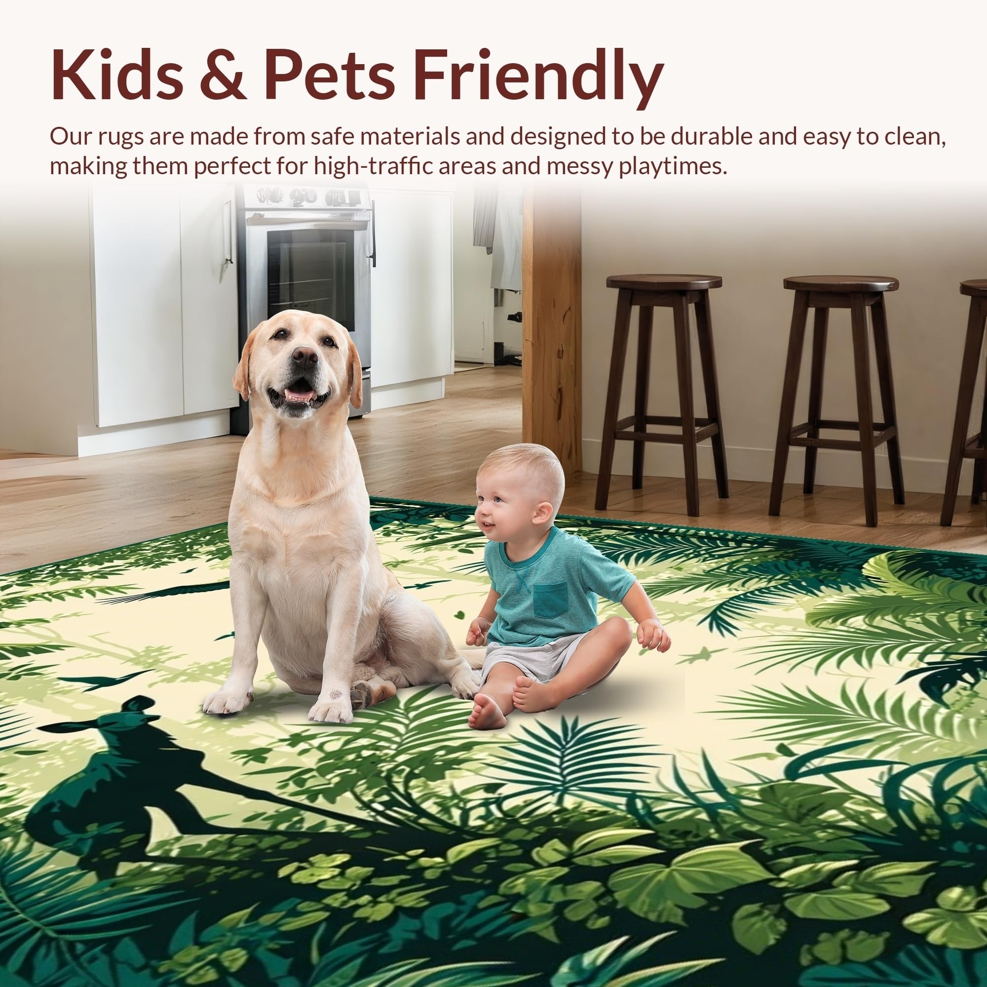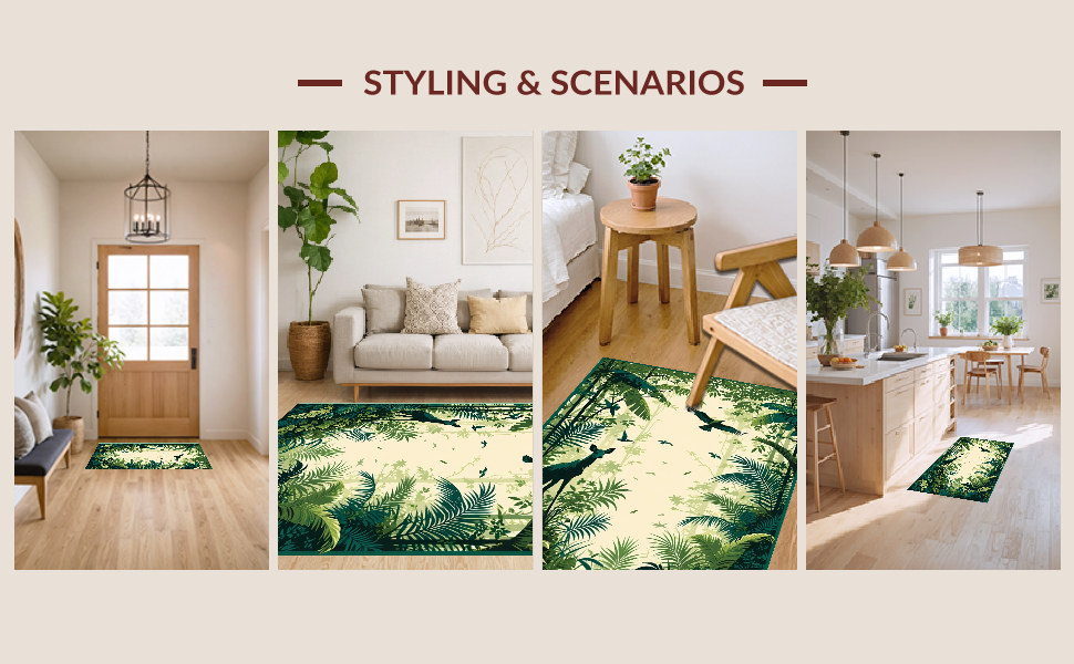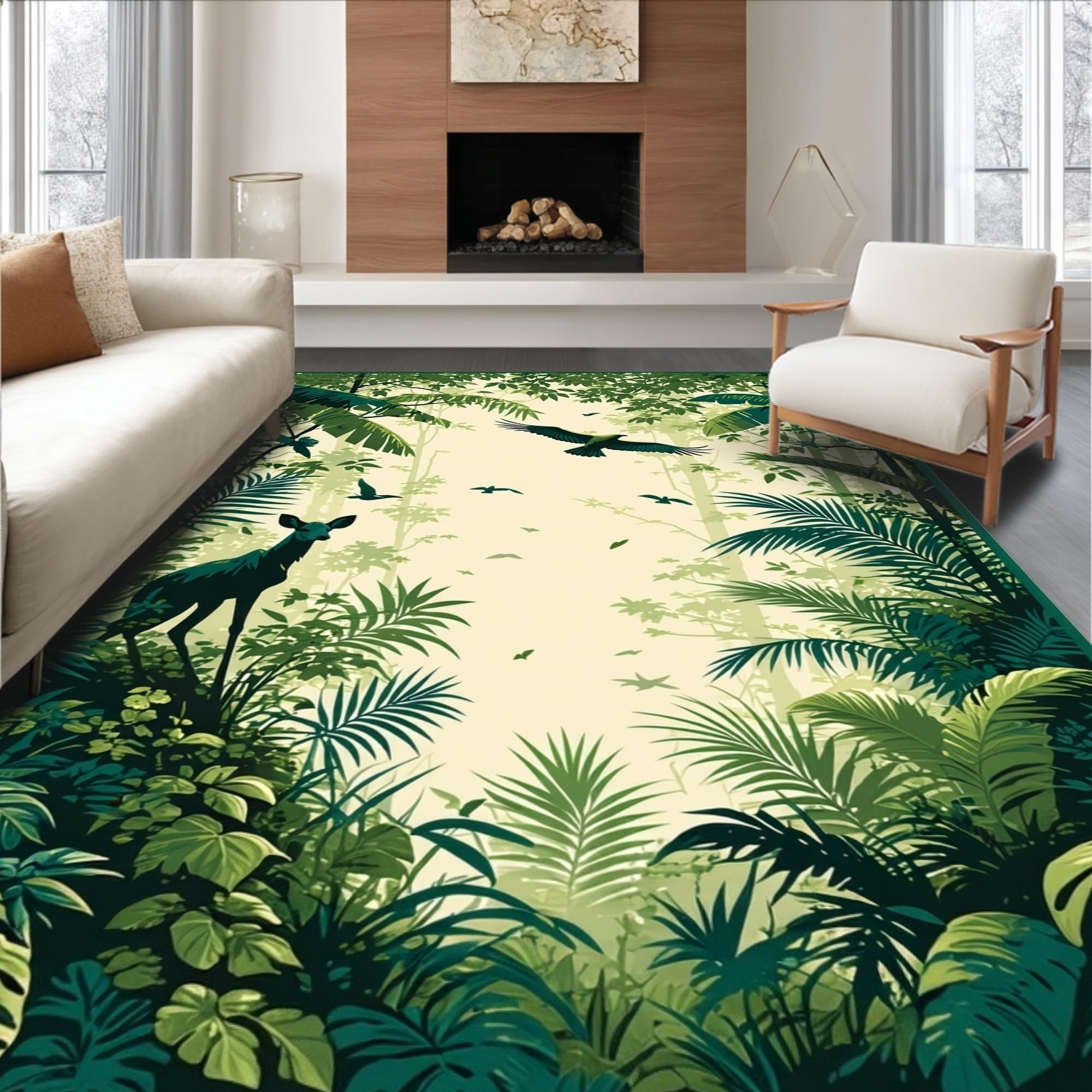 Ultra Soft Area Rug, Non Slip, Stain Resistant, Washable Area Rugs for Living Room, Bedroom, Rustic Botanical Jungle Scene(Green) Overview: