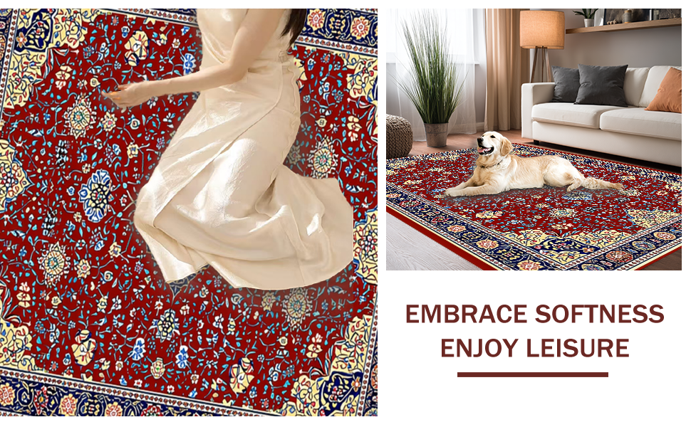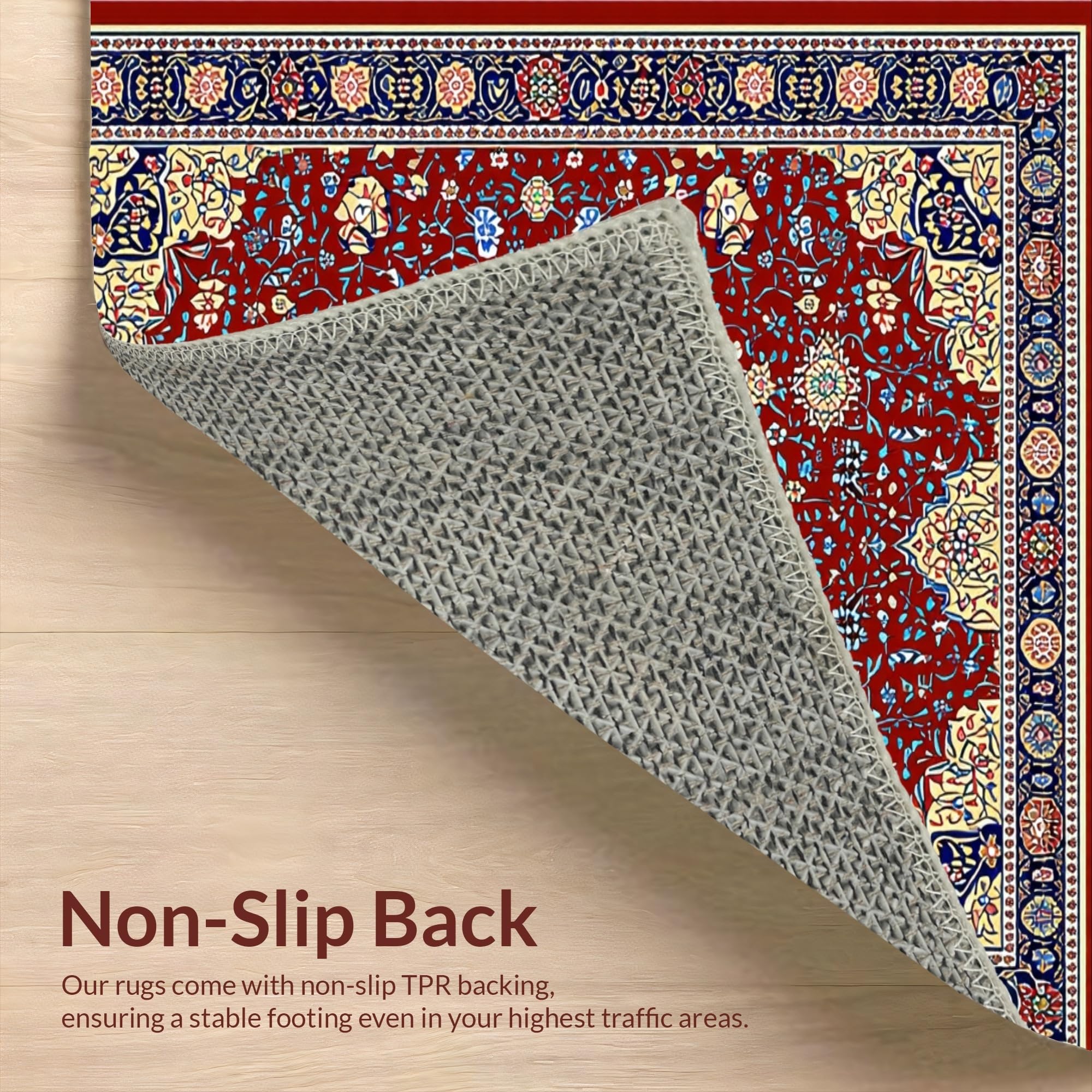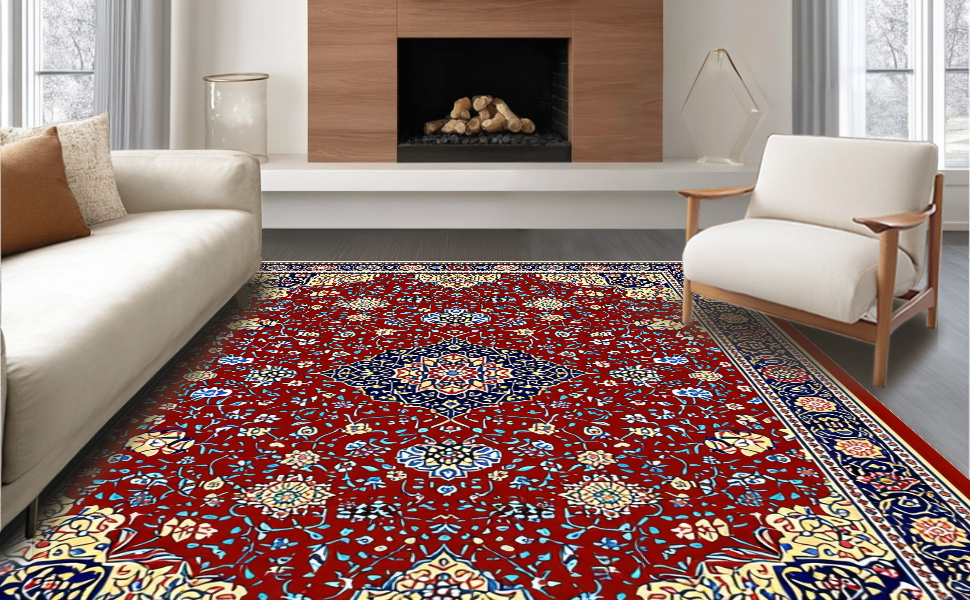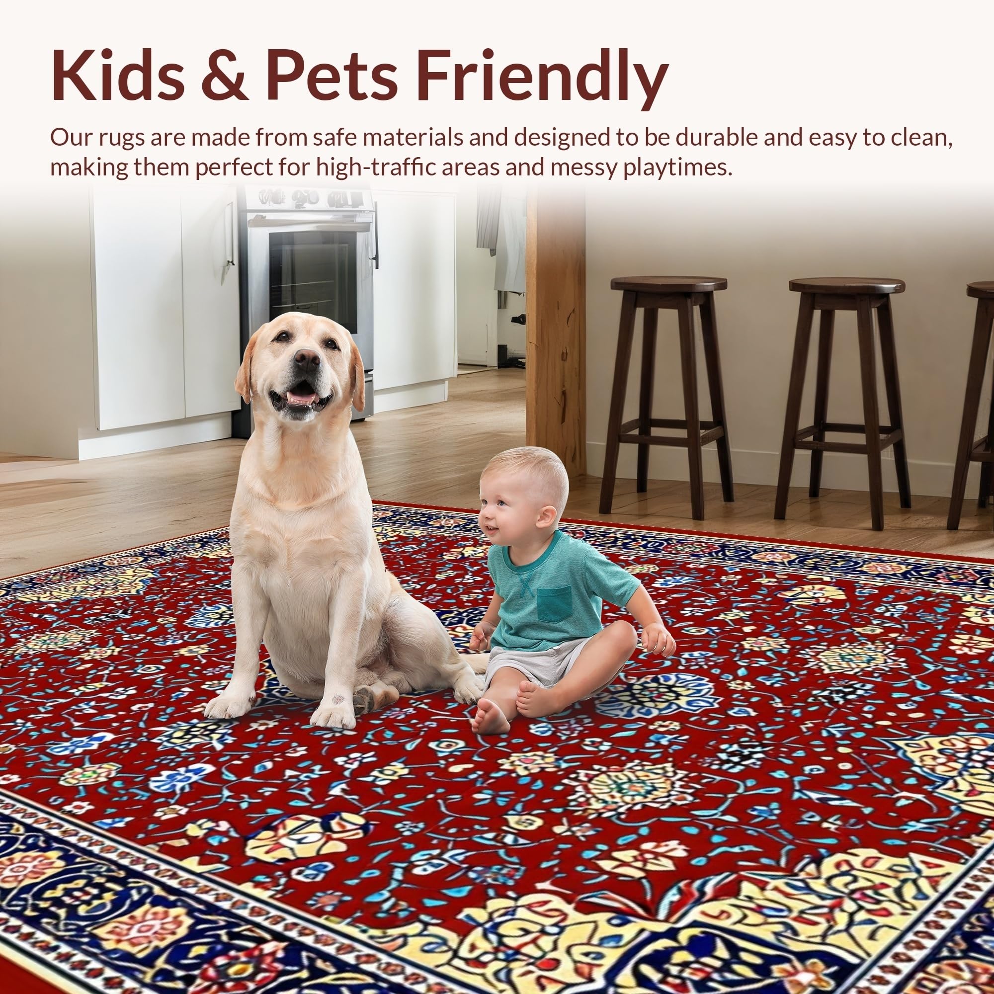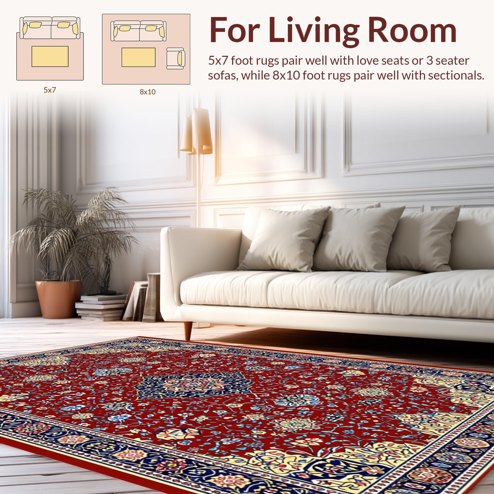 Ultra Soft Area Rug, Non Slip, Stain Resistant, Washable Area Rugs for Living Room, Bedroom, Rustic Botanical Tiled Design(Red) Overview: