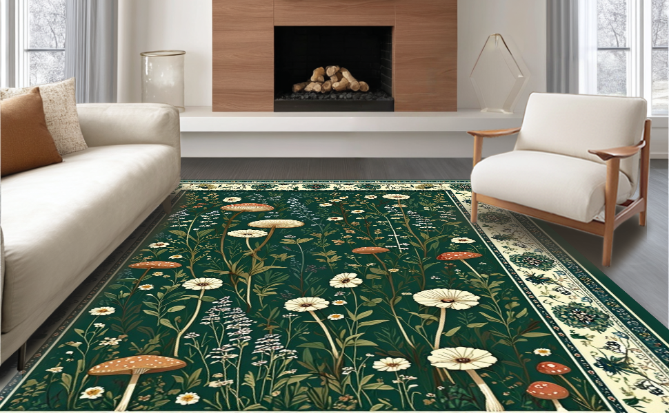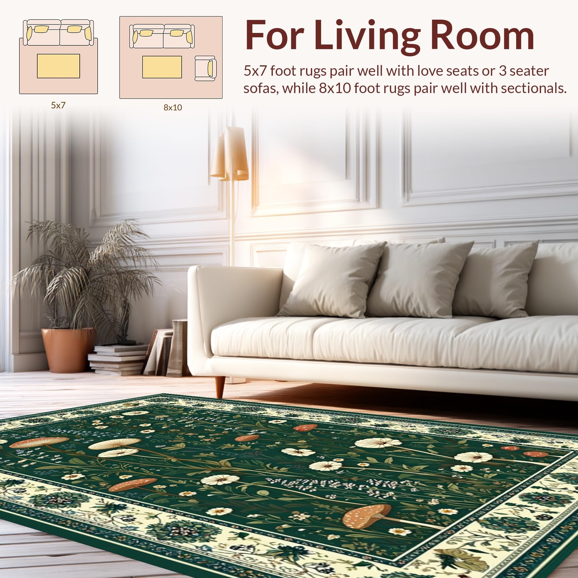 Ultra Soft Area Rug, Non Slip, Stain Resistant, Washable Area Rugs for Living Room, Bedroom, Rustic Butterfly and Flower Design(Green) Overview: