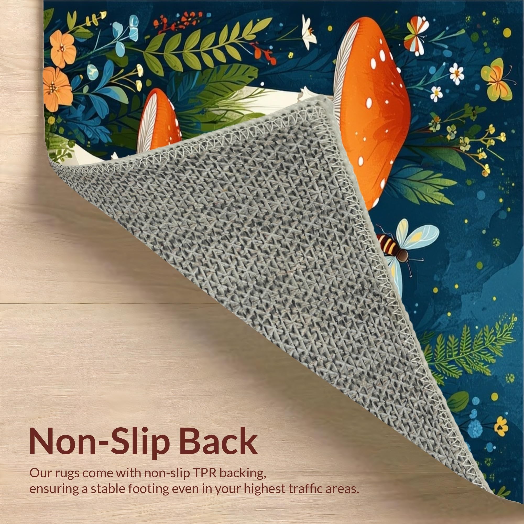 Ultra Soft Area Rug, Non Slip, Stain Resistant, Washable Area Rugs for Living Room, Bedroom, Rustic Butterfly and Flower Medley(Blue) Overview: