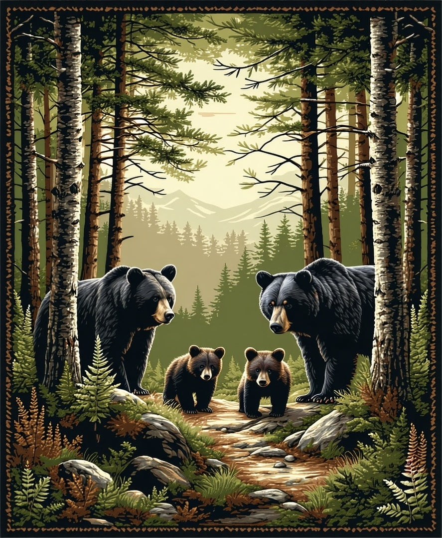 Flatwoven High Traffic Area Rug, Rustic Cabin Woodland Bear Family Accent for, Non Slip, Stain Resistant, Washable Area Rugs for Living Room, Bedroom (Brown) Overview: