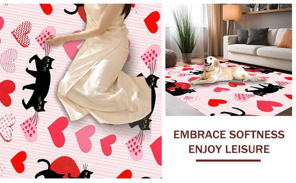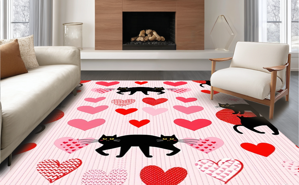 Ultra Soft Area Rug, Non Slip, Stain Resistant, Washable Area Rugs for Living Room, Bedroom, Rustic Chic Cat Lover Accent(Pink) Overview: