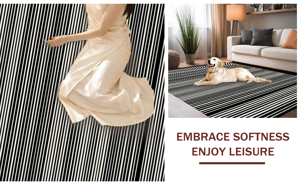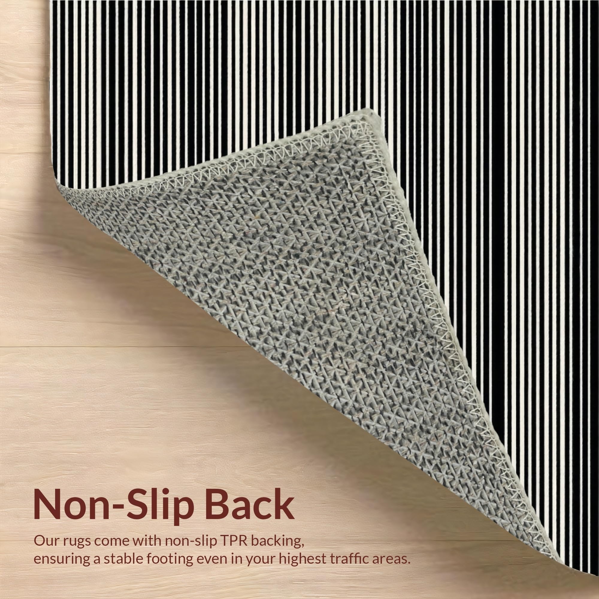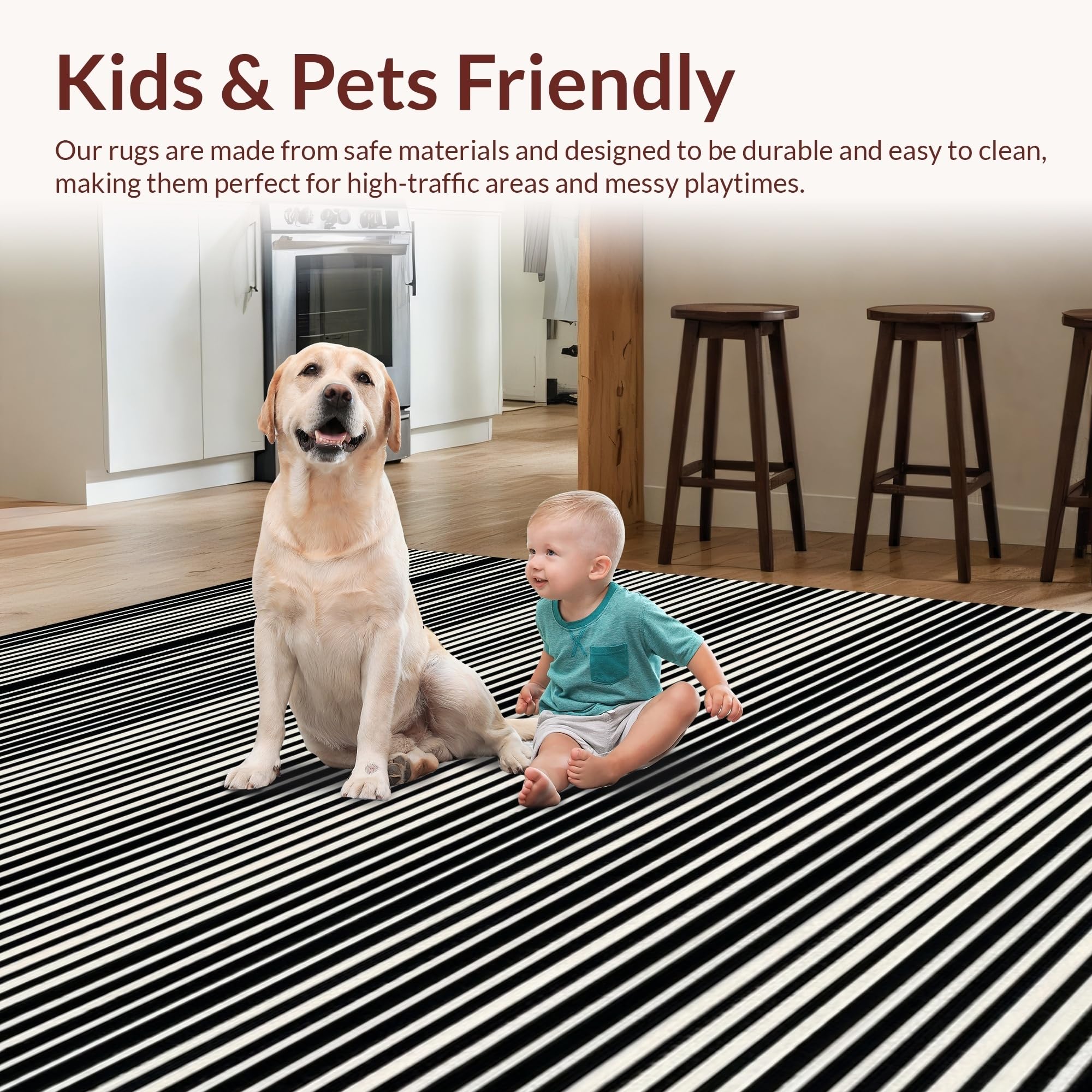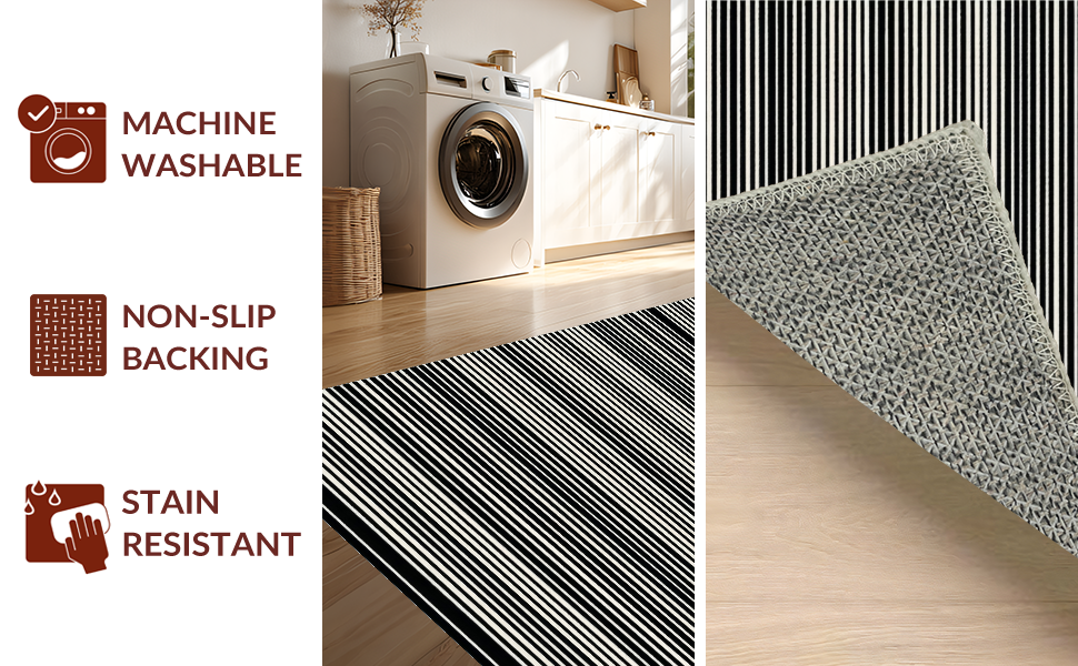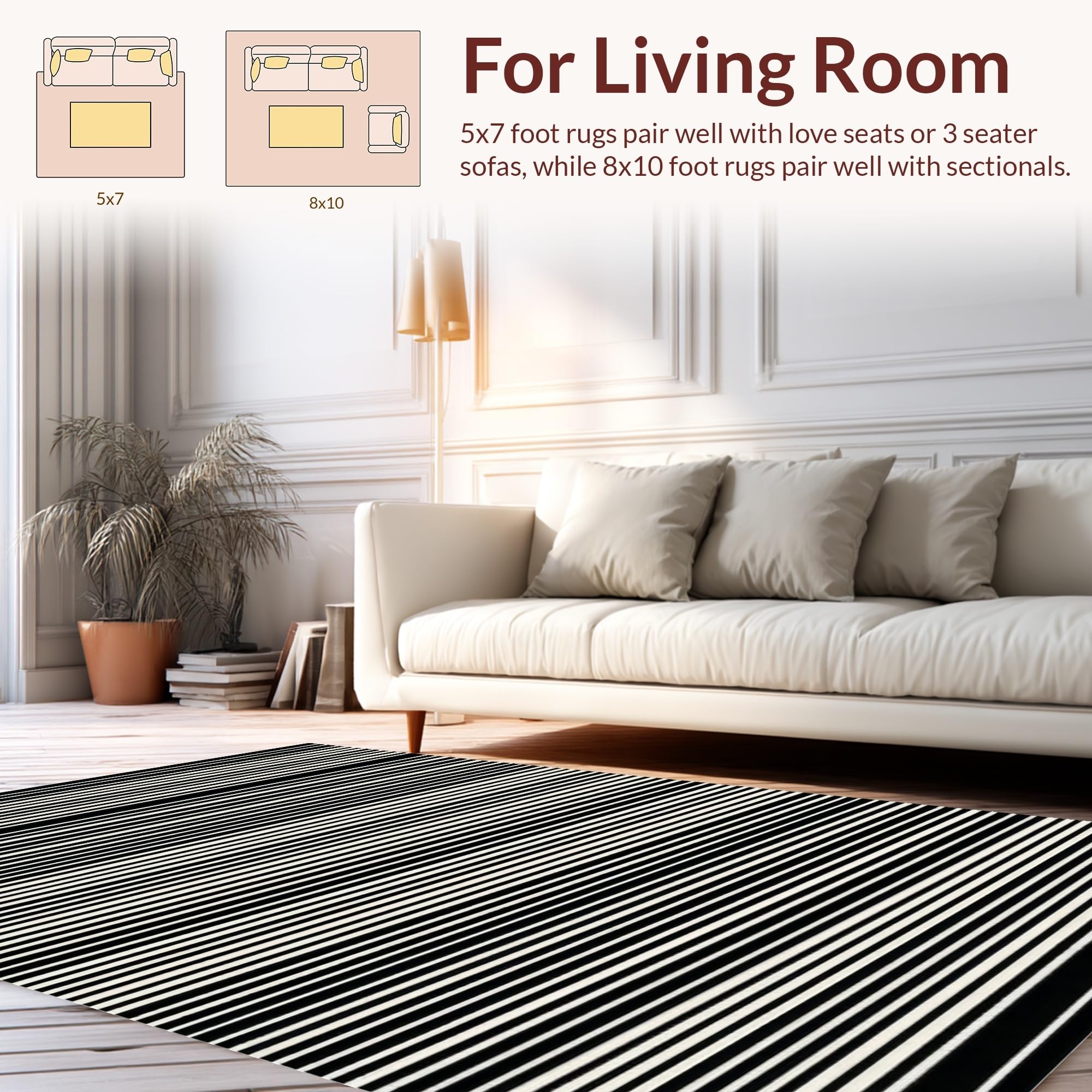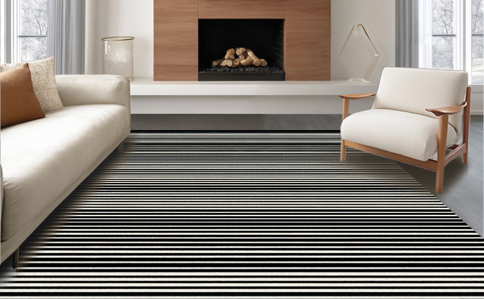 Ultra Soft Area Rug, Non Slip, Stain Resistant, Washable Area Rugs for Living Room, Bedroom, Rustic Chic Linear Pattern(Black) Overview: