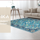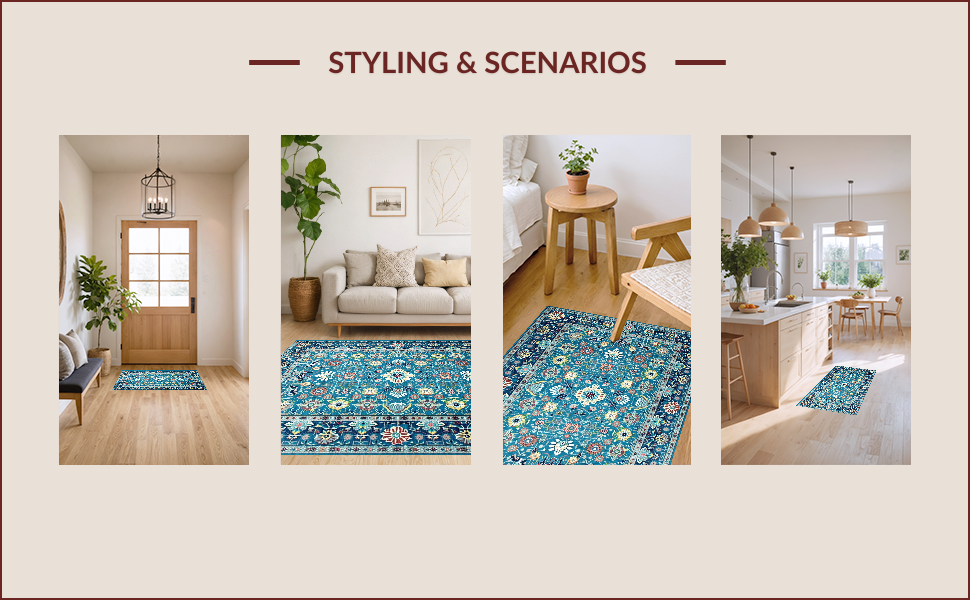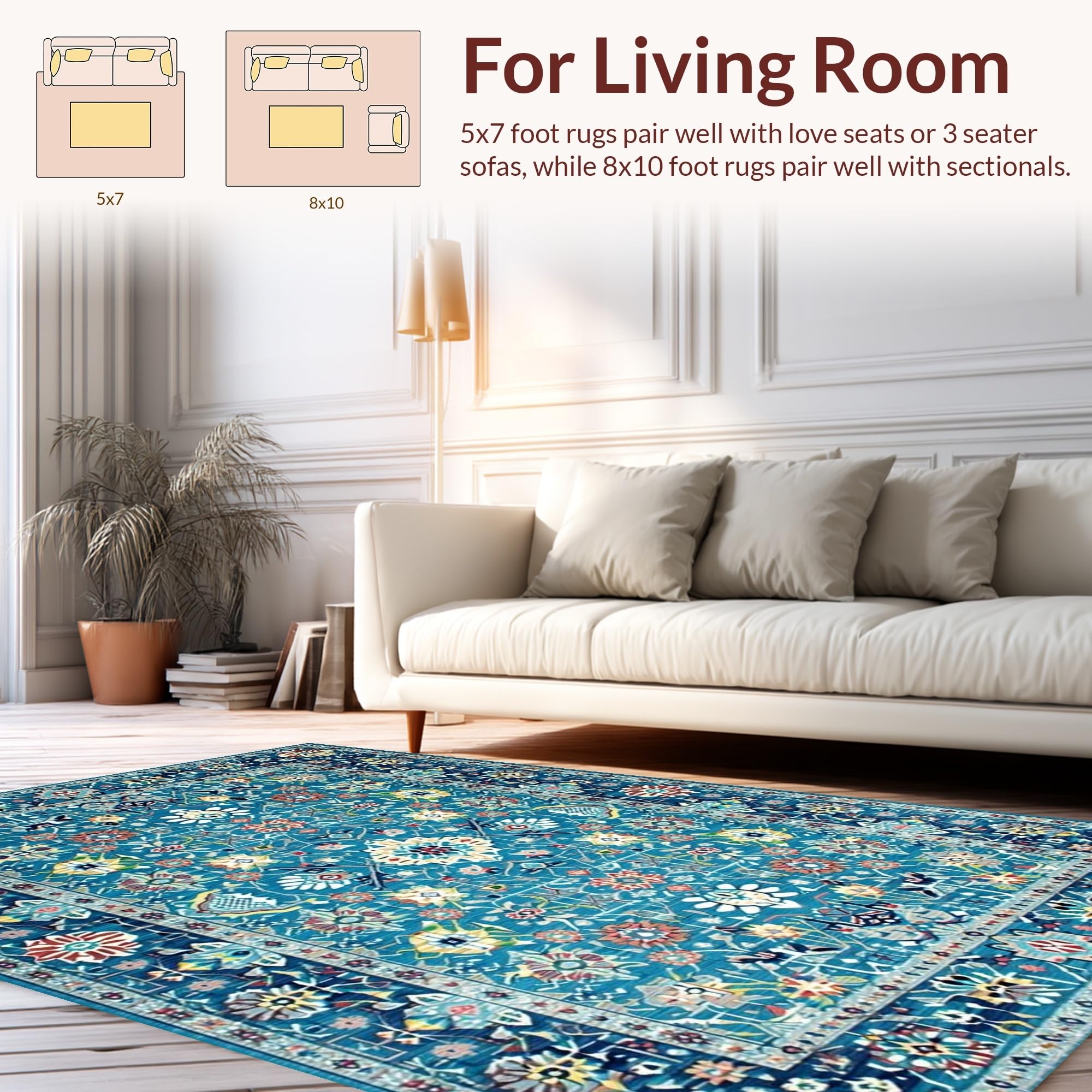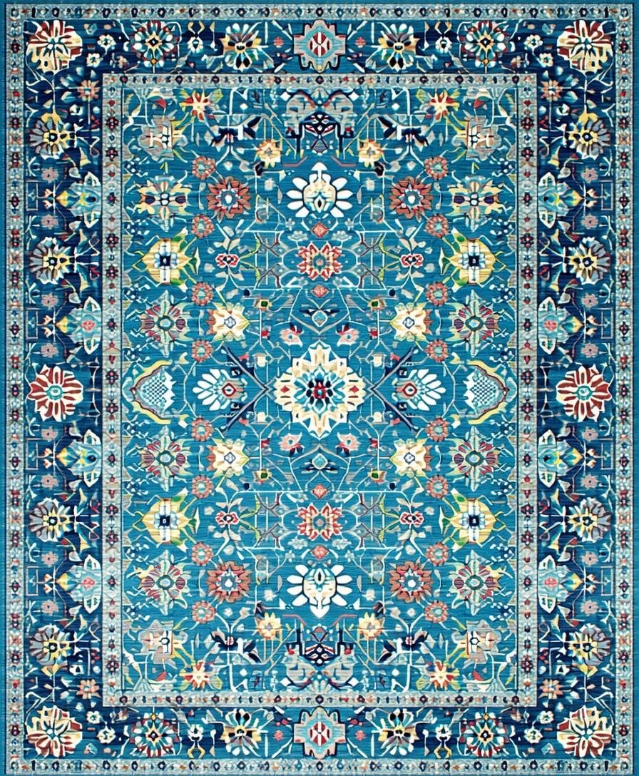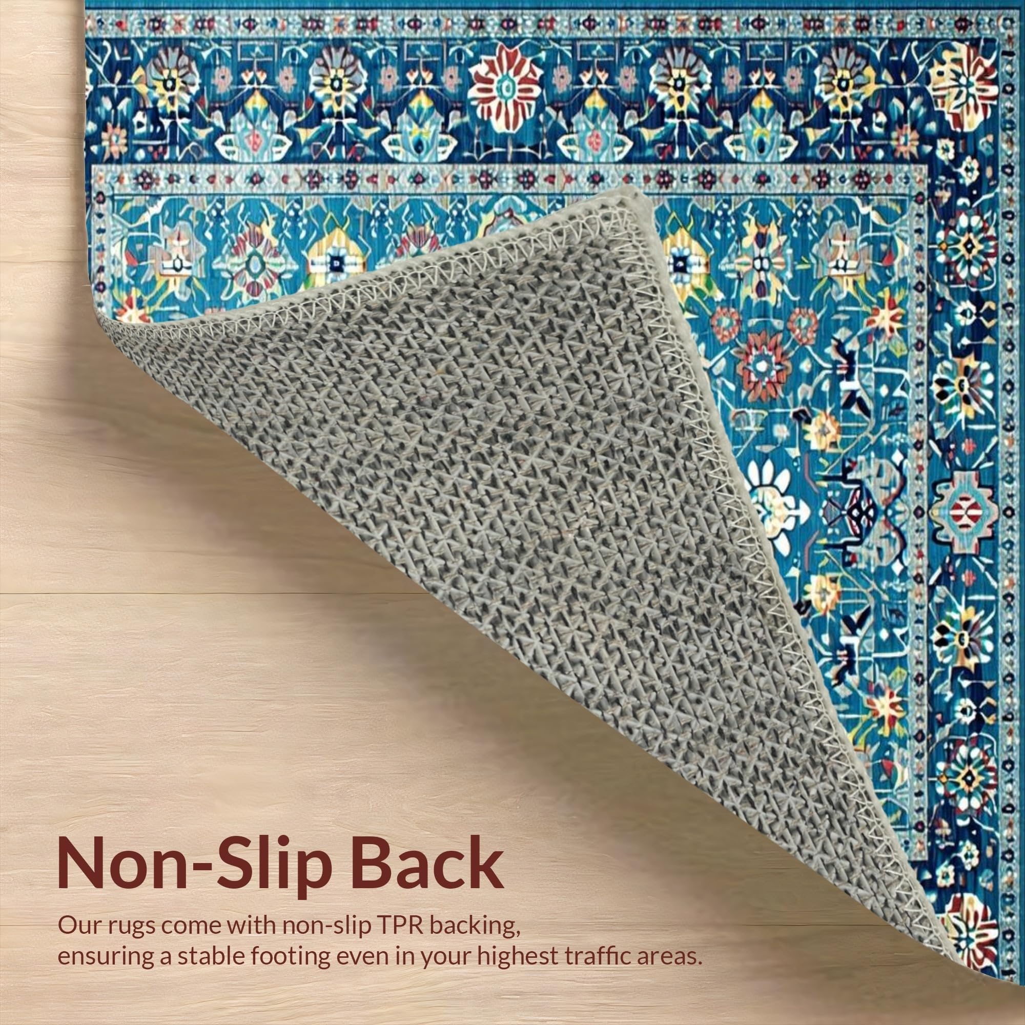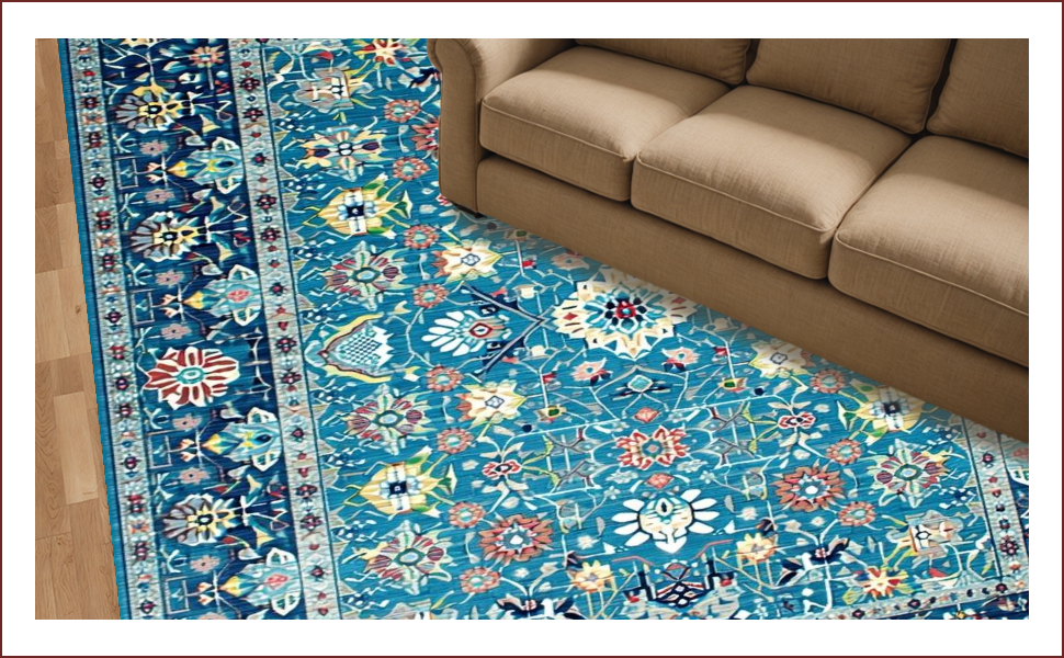Ultra Soft Area Rug, Non Slip, Stain Resistant, Washable Area Rugs for Living Room, Bedroom, Rustic Coastal Trellis Design(Blue) Overview: