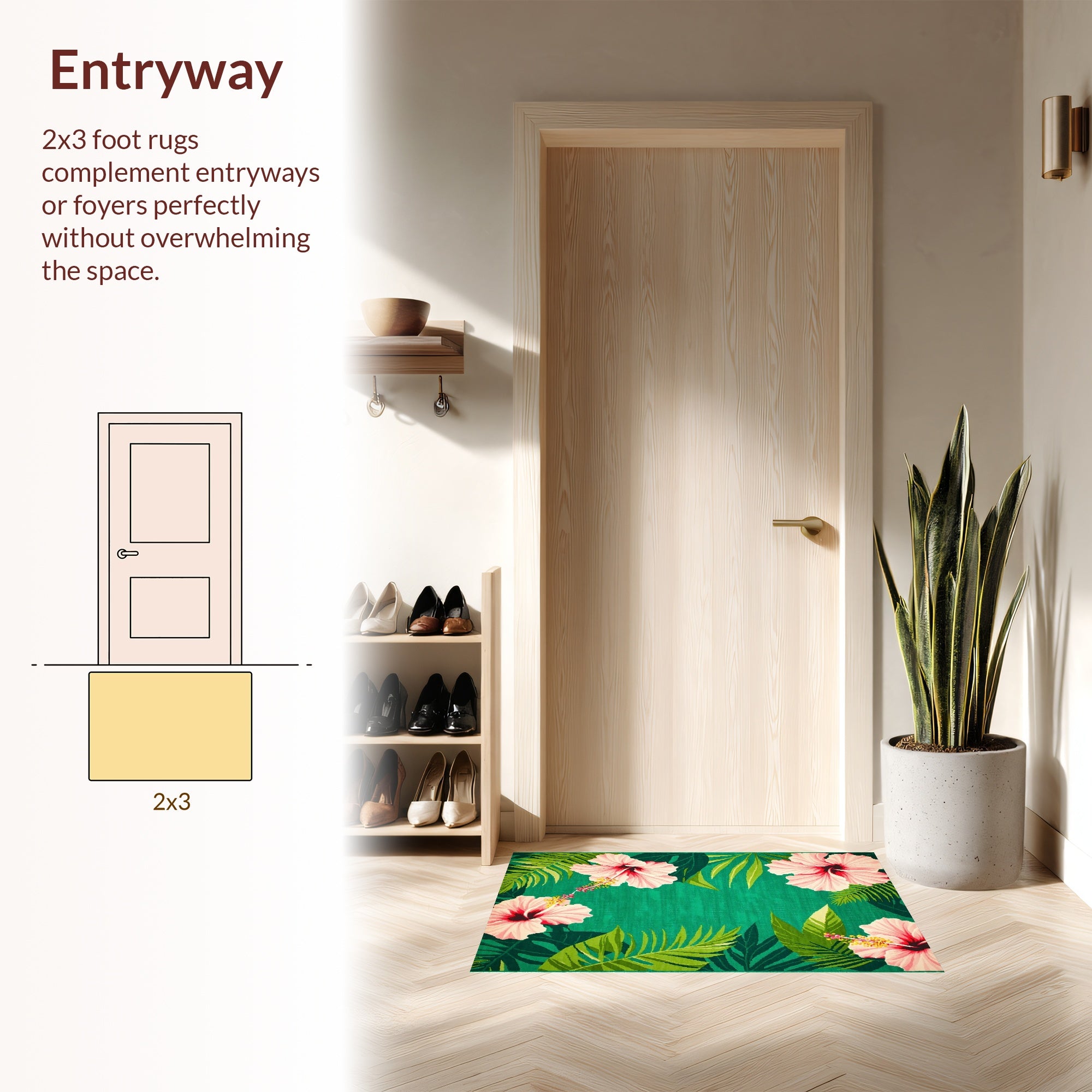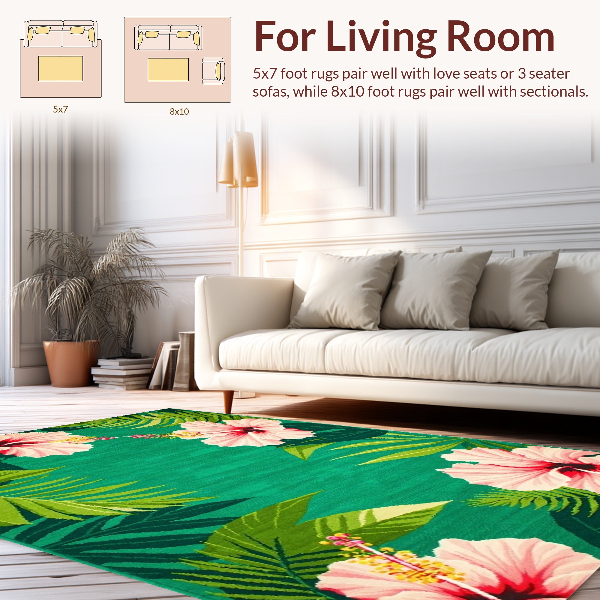 Flatwoven High Traffic Area Rug, Rustic Colorful Botanical Design, Non Slip, Stain Resistant, Washable Area Rugs for Living Room, Bedroom (Green) Overview: