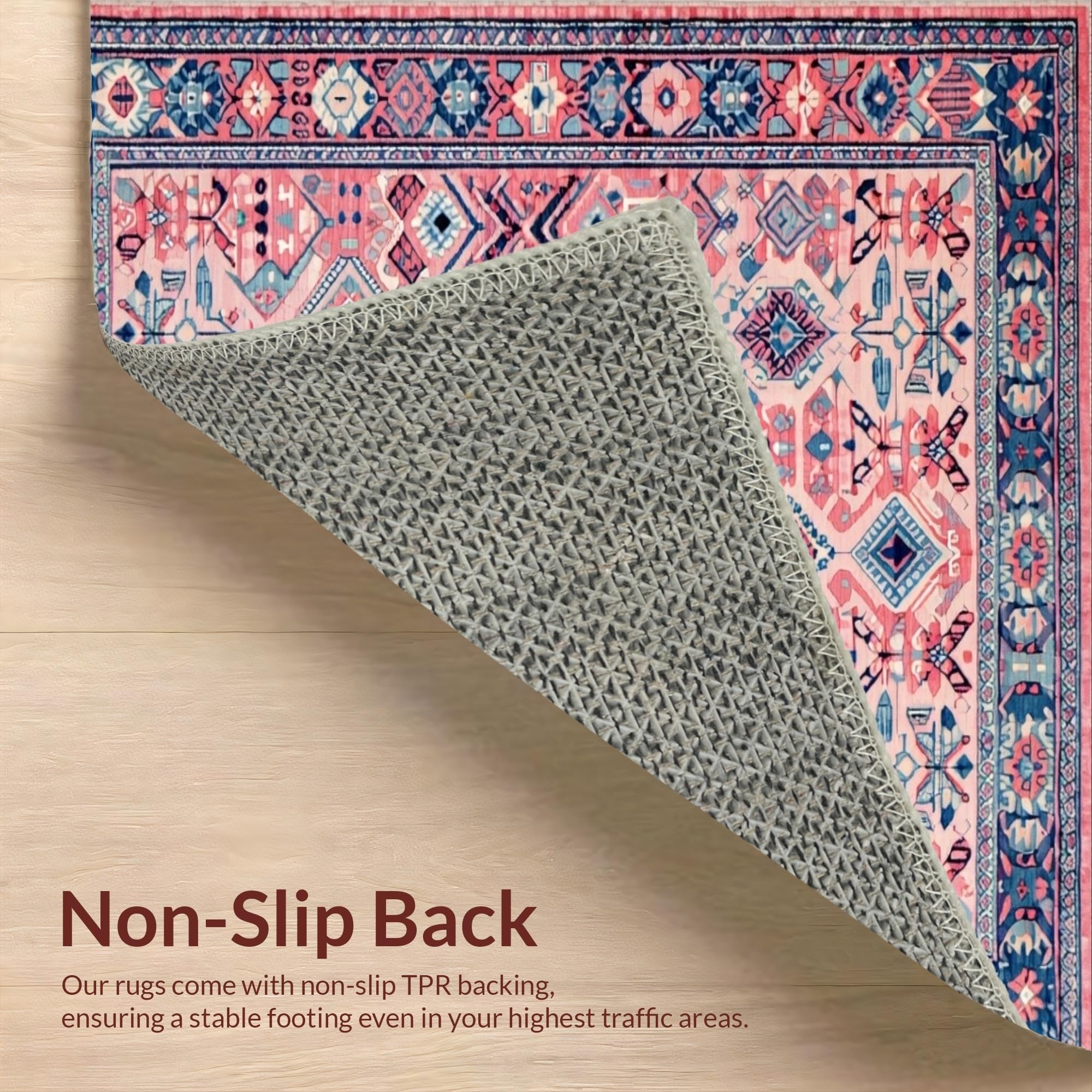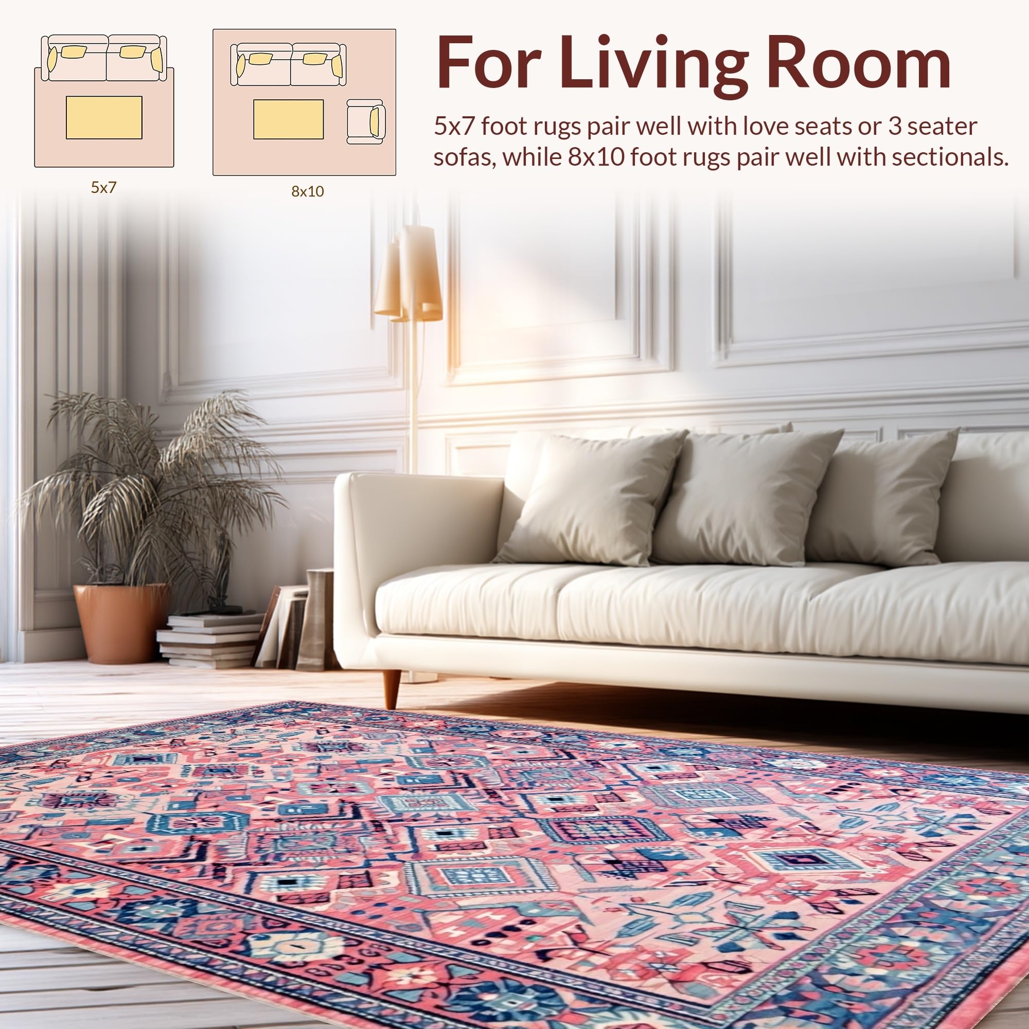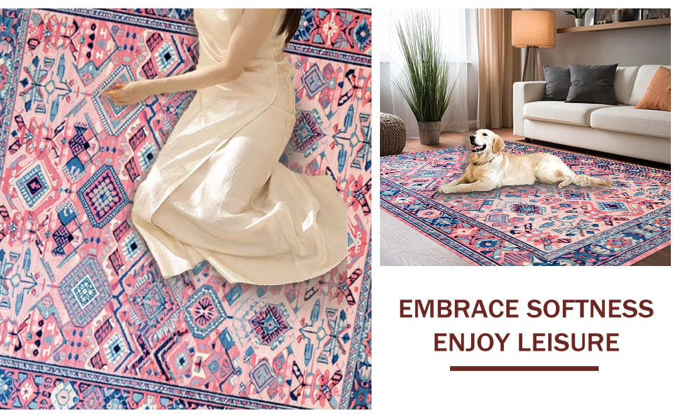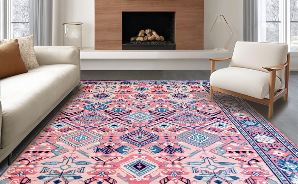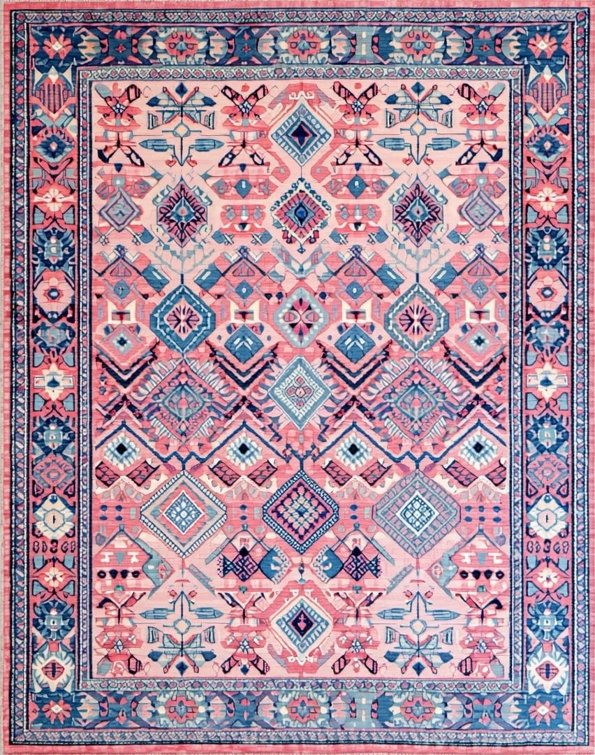 Ultra Soft Area Rug, Non Slip, Stain Resistant, Washable Area Rugs for Living Room, Bedroom, Rustic Colorful Diamond Patterns(Pink) Overview: