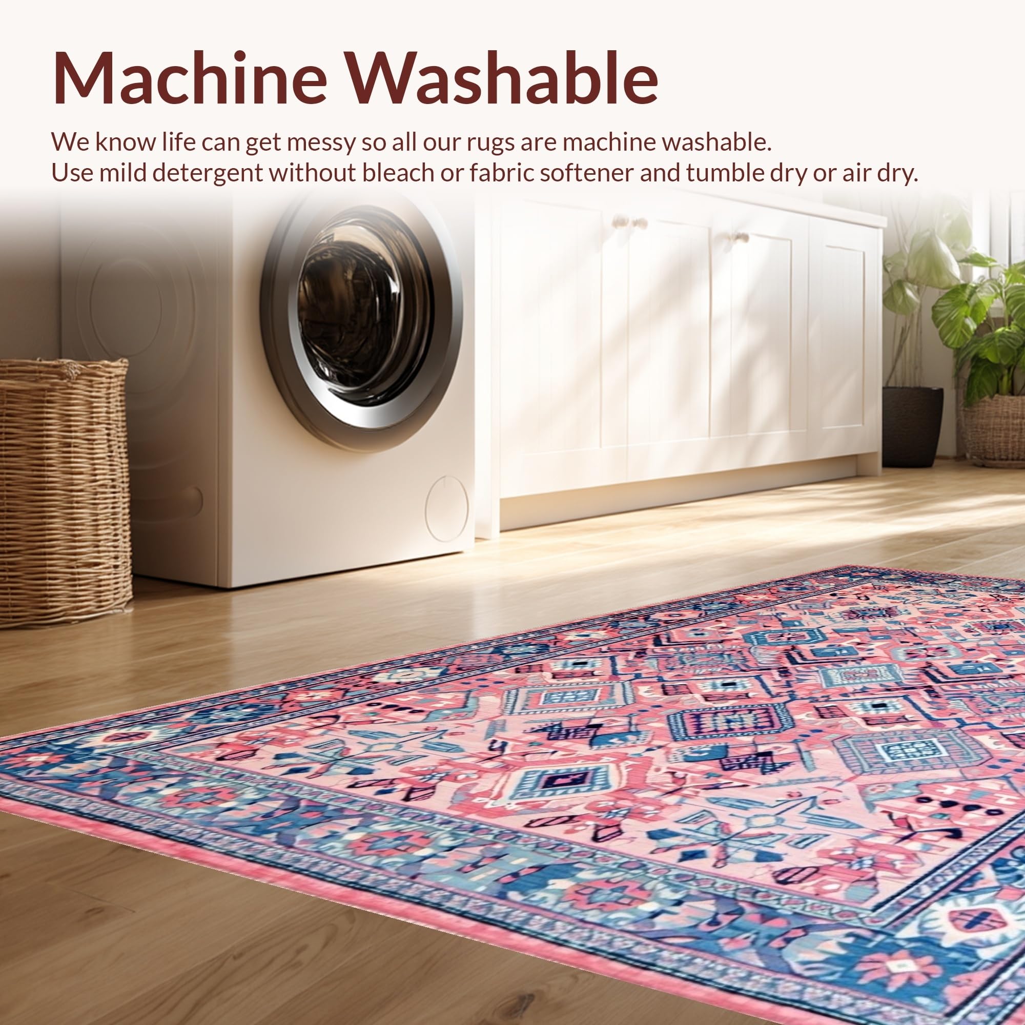 - Machine Washable: Our rugs can be easily thrown in the wash machine.
