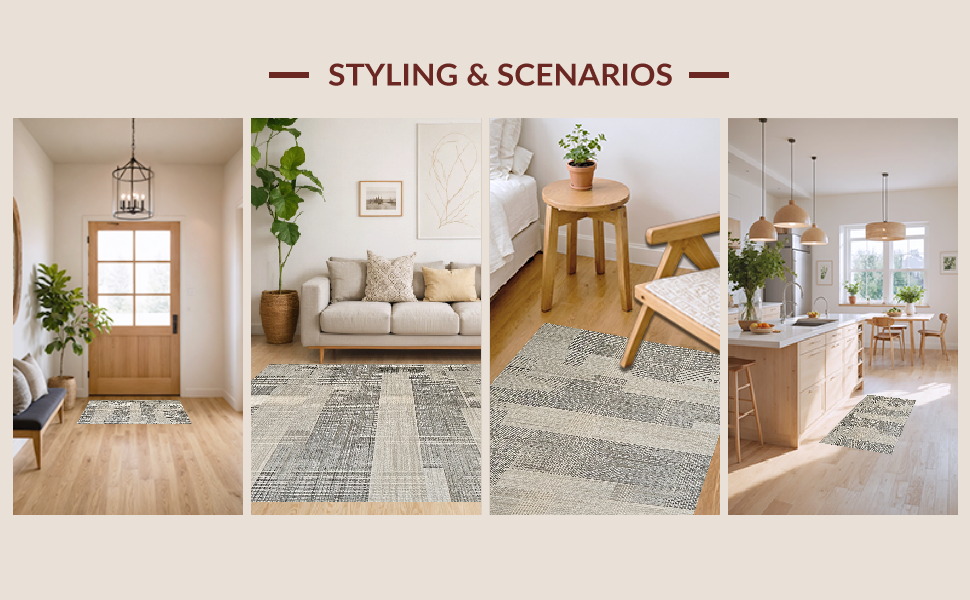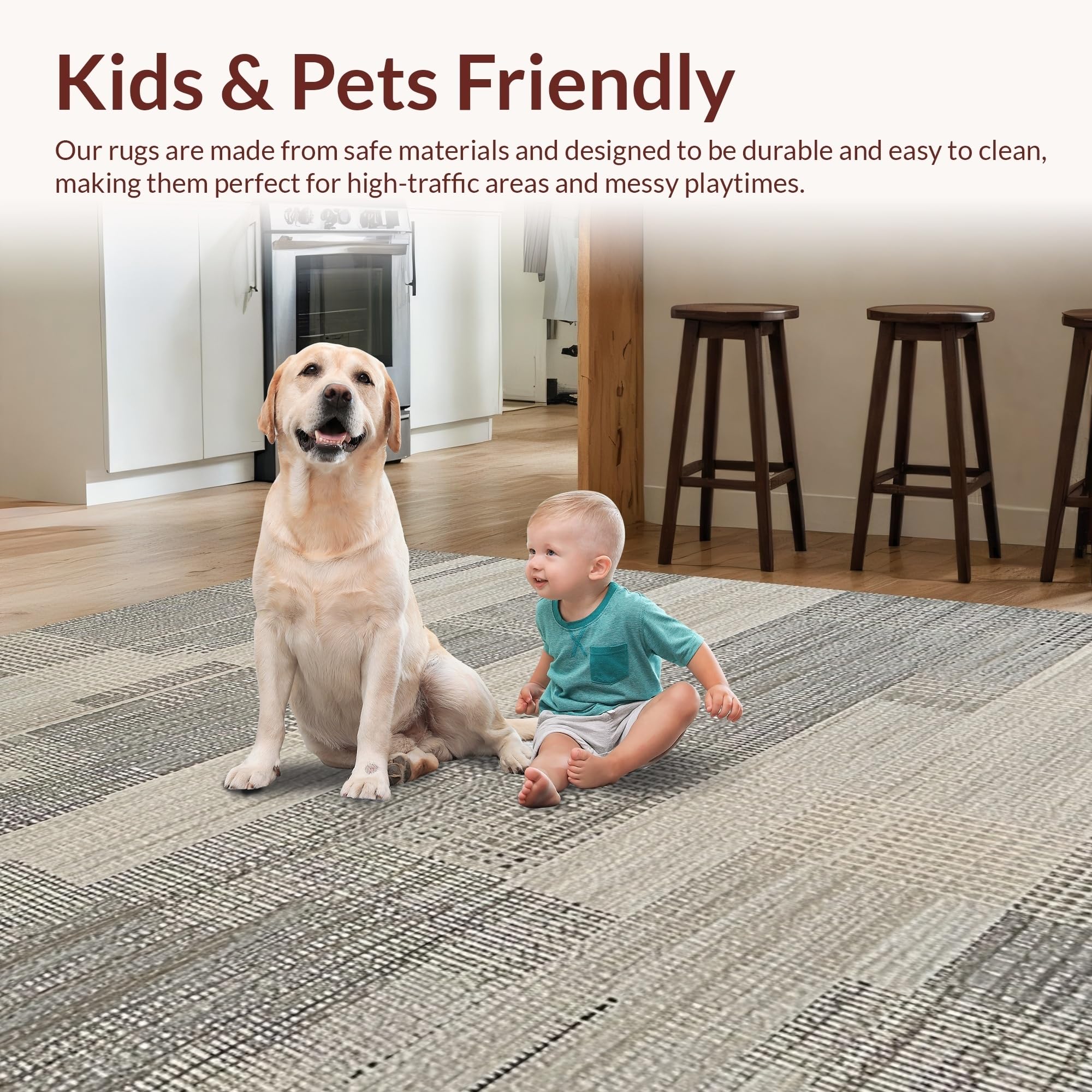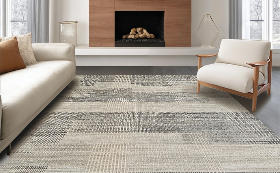 Ultra Soft Area Rug, Non Slip, Stain Resistant, Washable Area Rugs for Living Room, Bedroom, Rustic Cozy Trellis Arrangement(Gray) Overview: