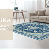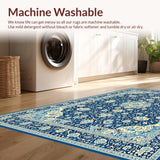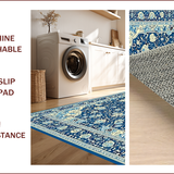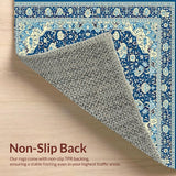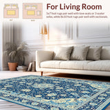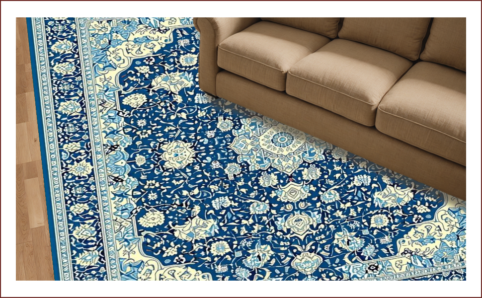 Ultra Soft Area Rug, Non Slip, Stain Resistant, Washable Area Rugs for Living Room, Bedroom, Rustic Cream and Gold Medallion(Blue) Overview: