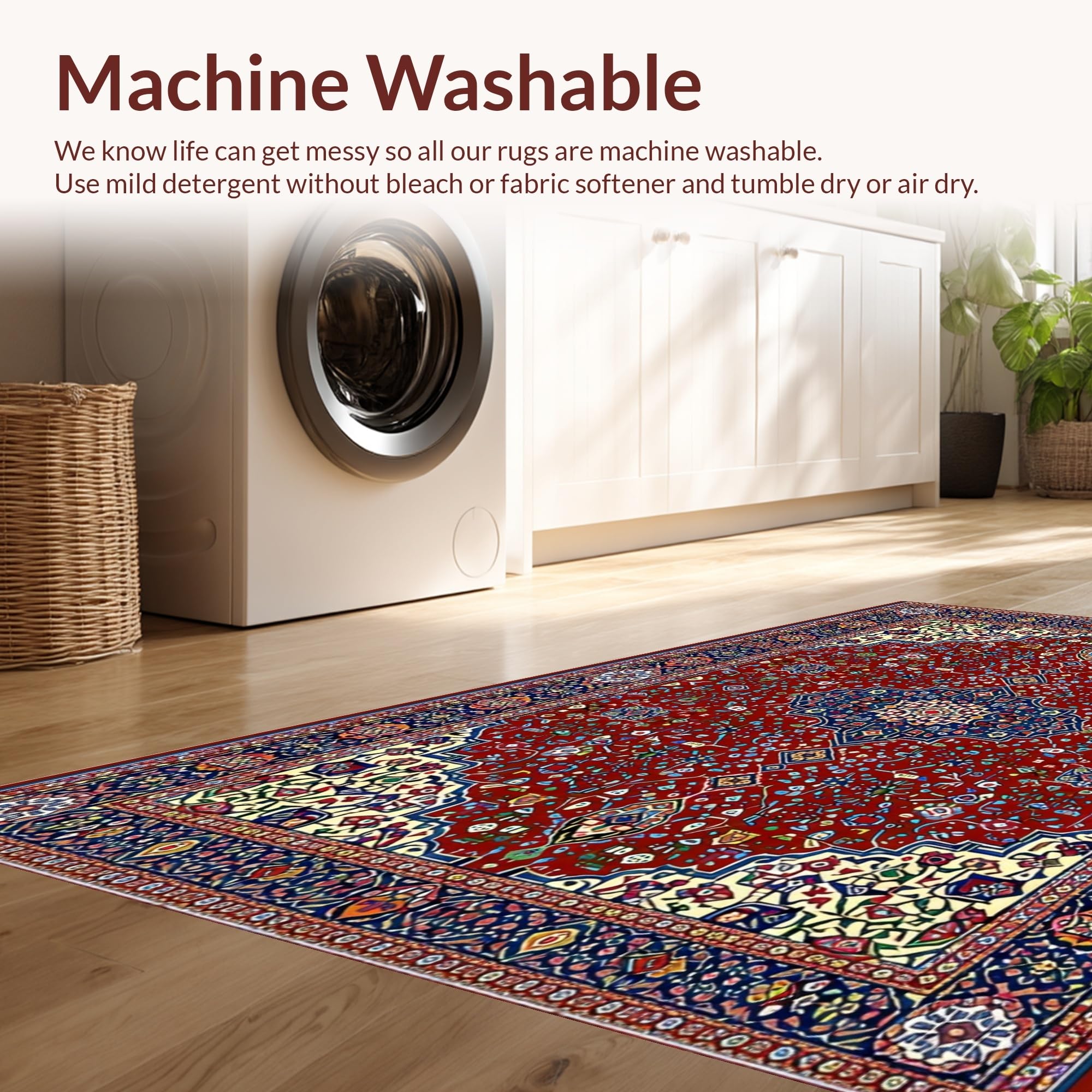 - Machine Washable: Our rugs can be easily thrown in the wash machine.
