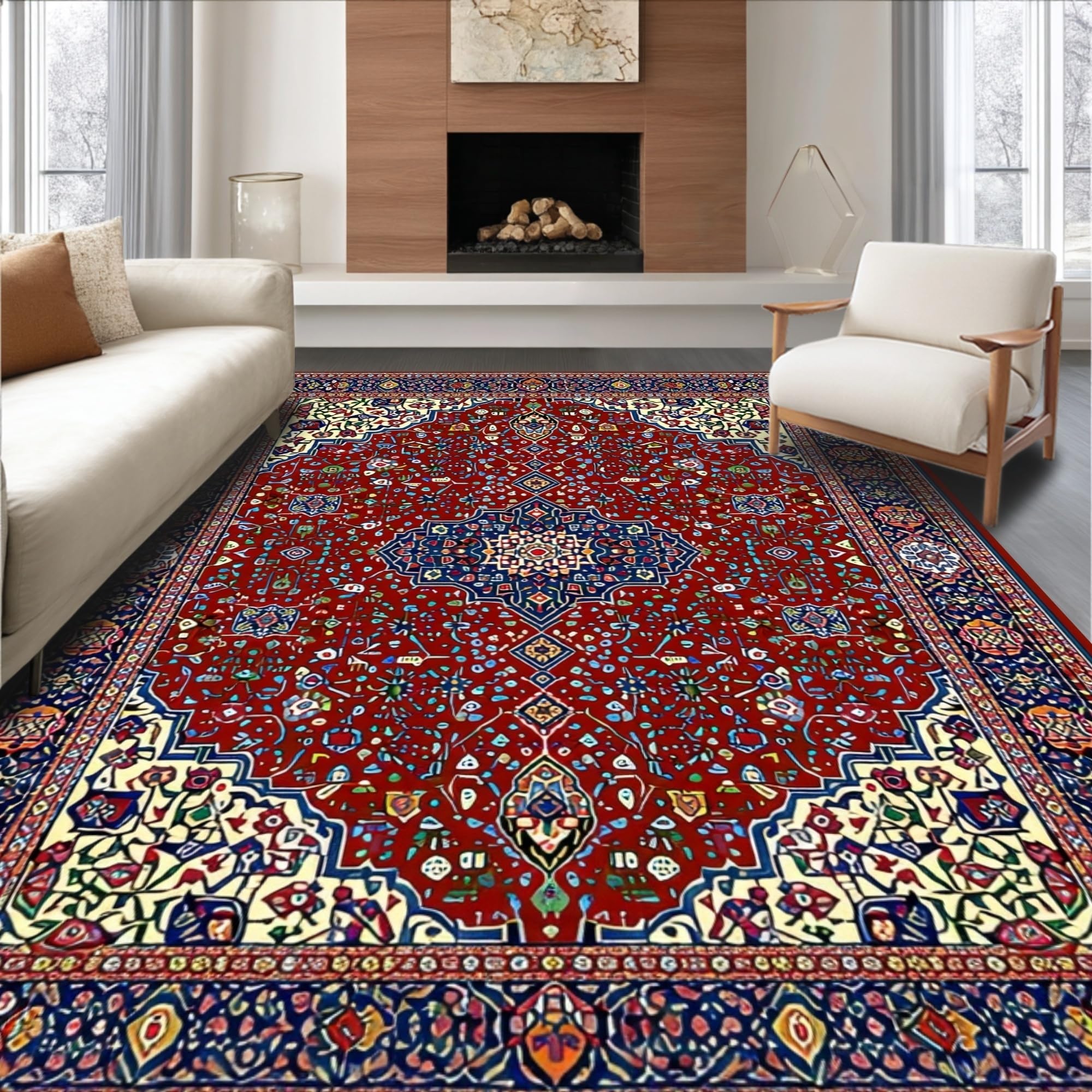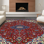 Ultra Soft Area Rug, Non Slip, Stain Resistant, Washable Area Rugs for Living Room, Bedroom, Rustic Diamond Motif in Warm Hues(Red) Overview:
