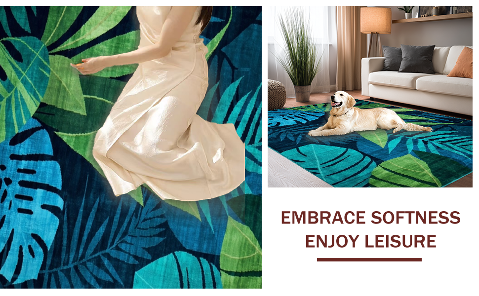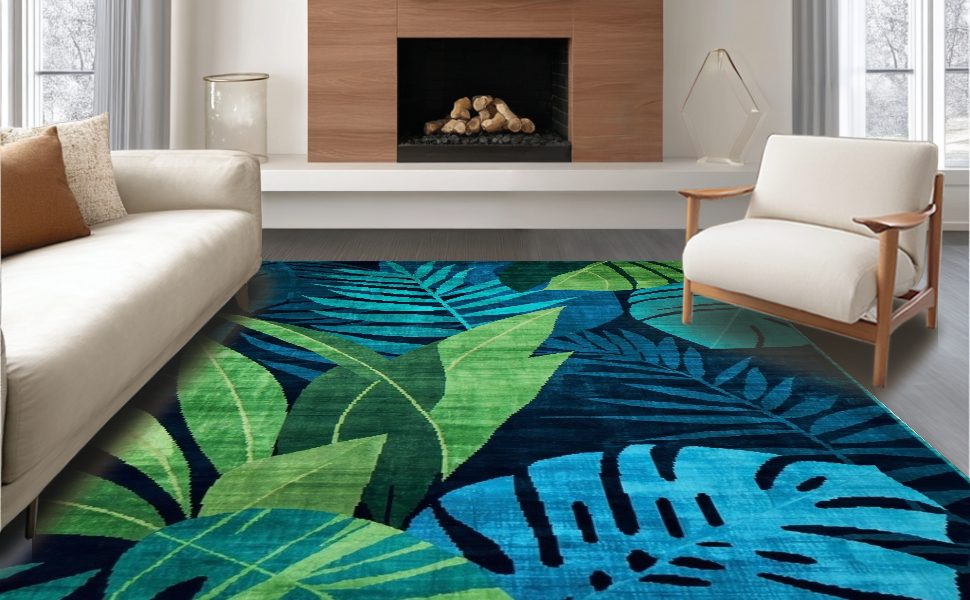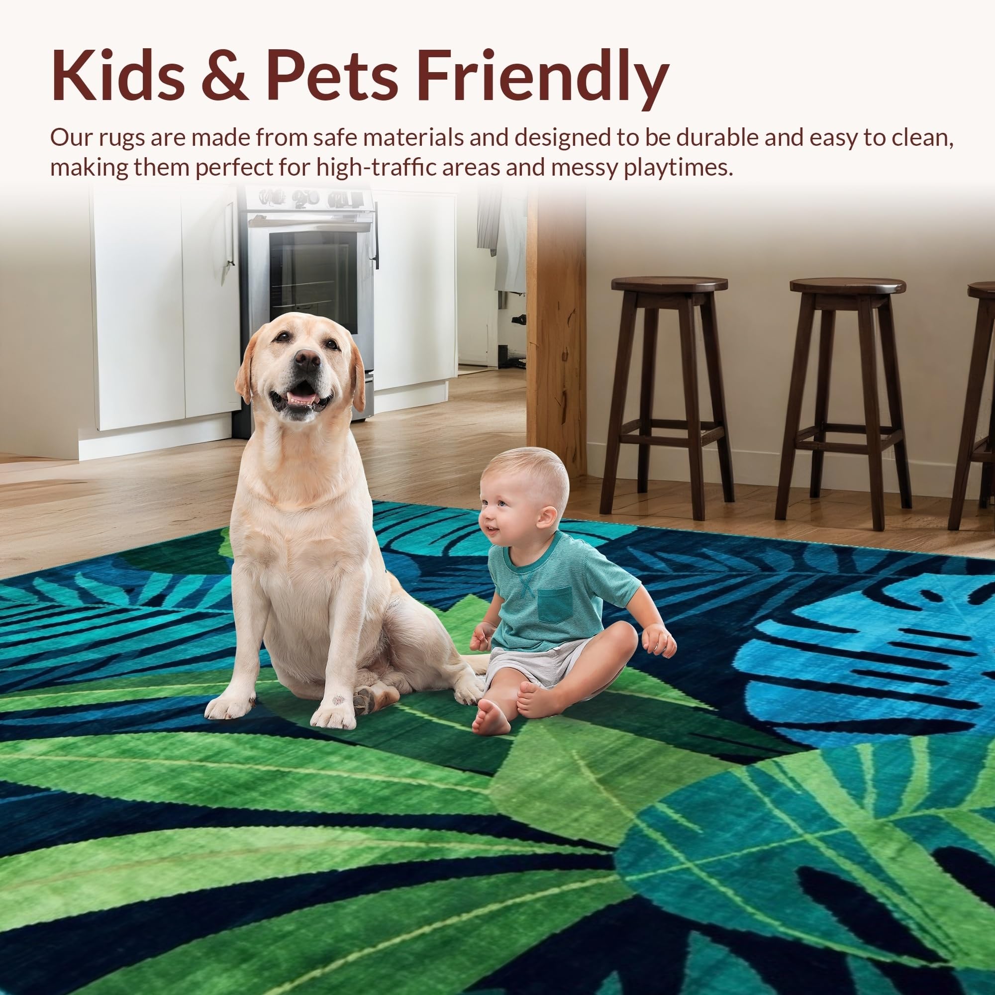 Ultra Soft Area Rug, Non Slip, Stain Resistant, Washable Area Rugs for Living Room, Bedroom, Rustic Distressed Colorful Patterns(Blue) Overview: