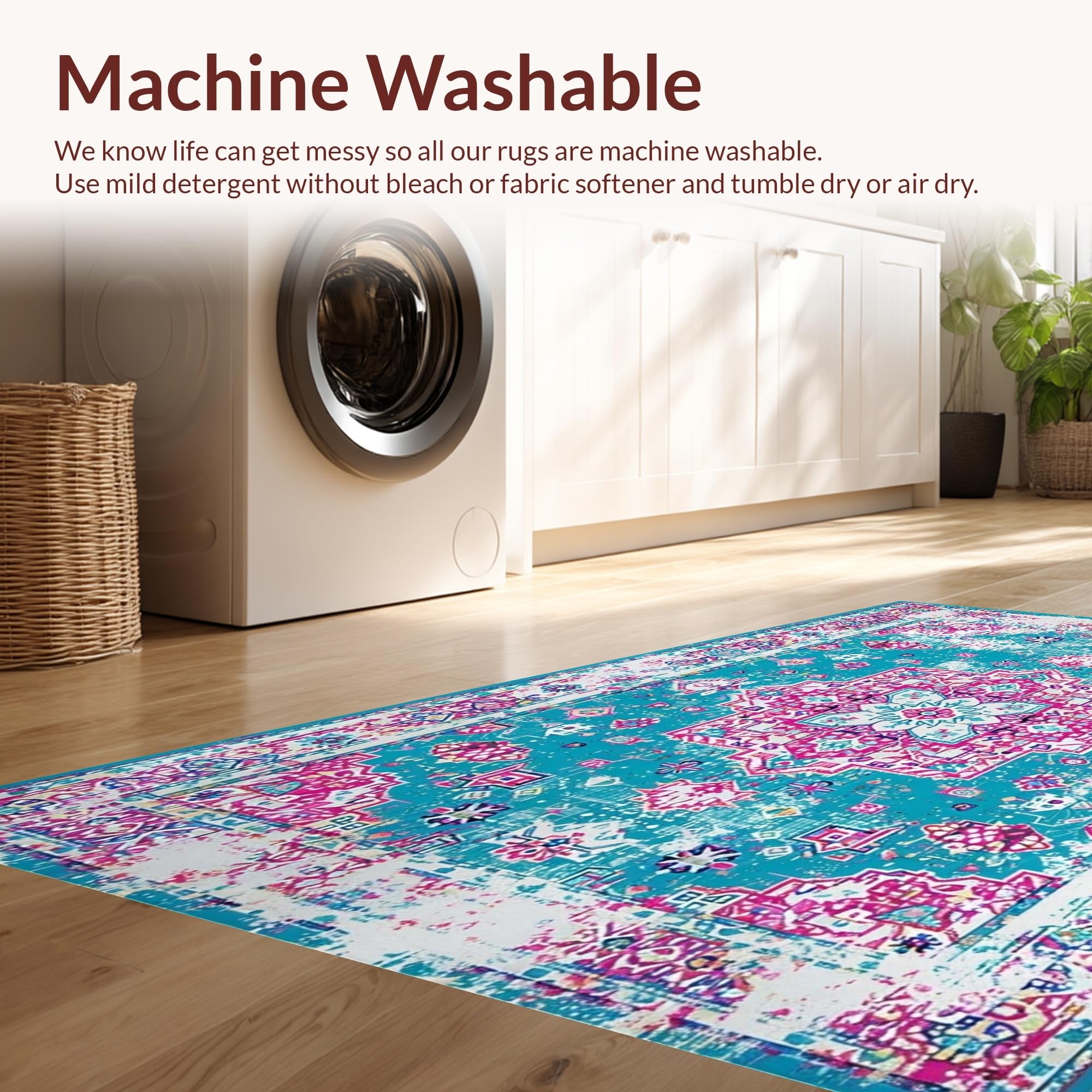 - Machine Washable: Our rugs can be easily thrown in the wash machine.