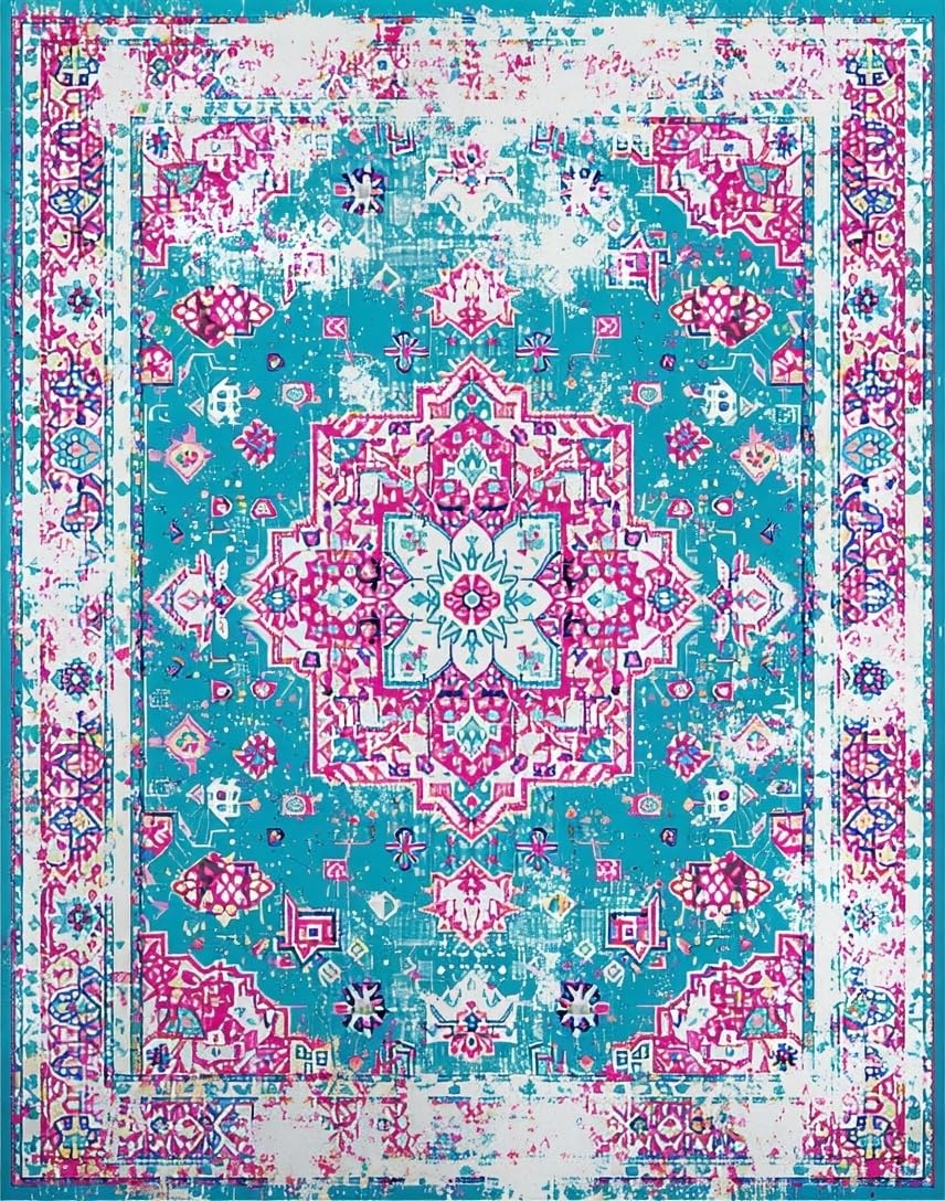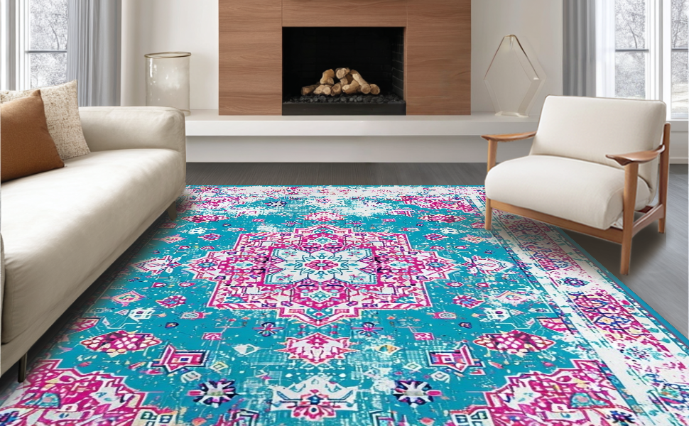 Ultra Soft Area Rug, Non Slip, Stain Resistant, Washable Area Rugs for Living Room, Bedroom, Rustic Distressed Diamond Pattern(Blue) Overview: