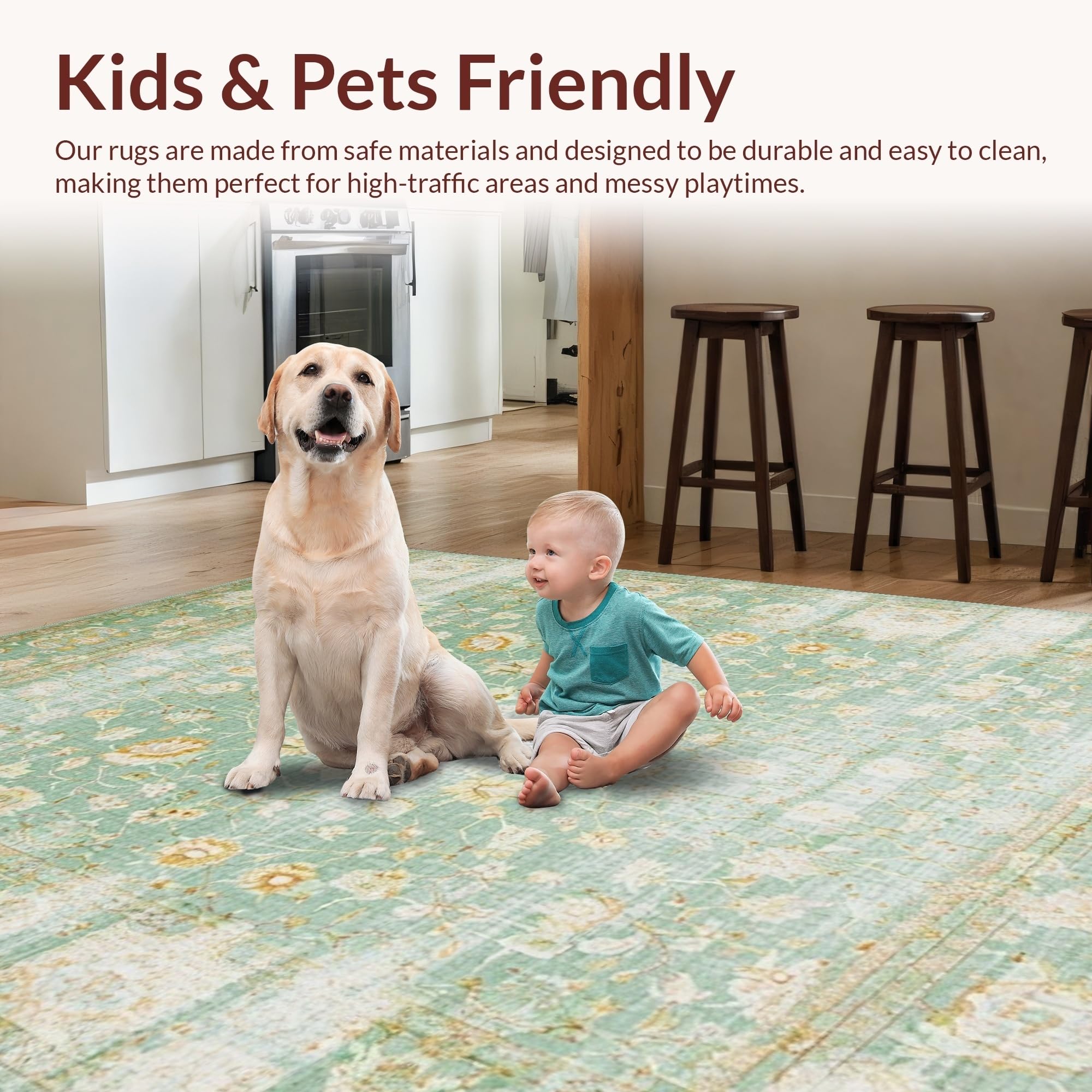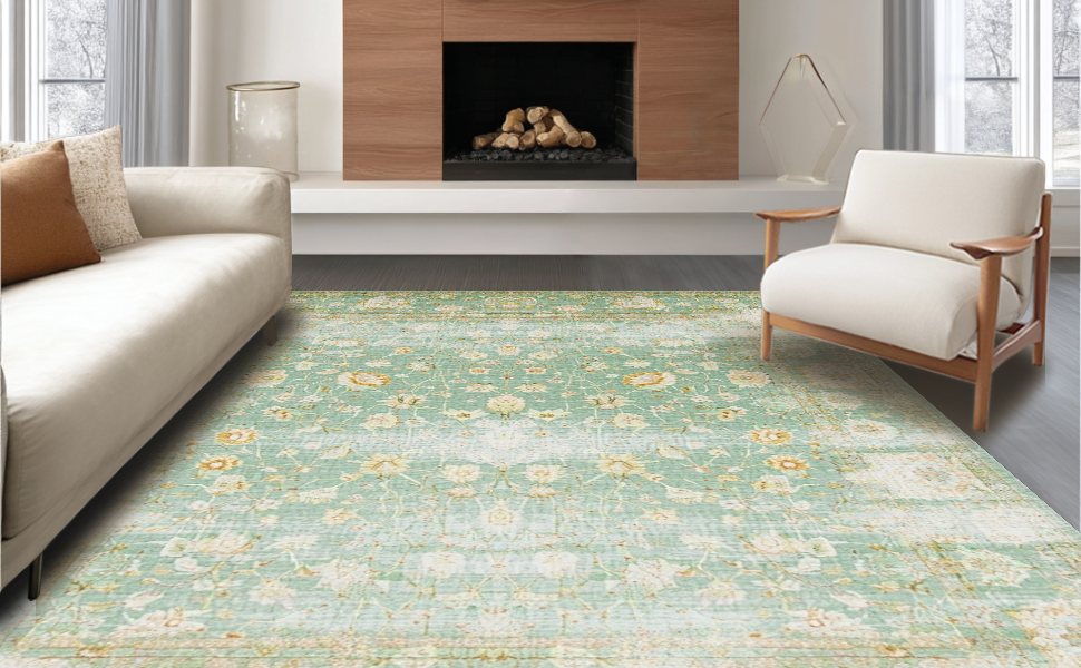 Ultra Soft Area Rug, Non Slip, Stain Resistant, Washable Area Rugs for Living Room, Bedroom, Rustic Distressed Floral Elegance(Blue) Overview:
