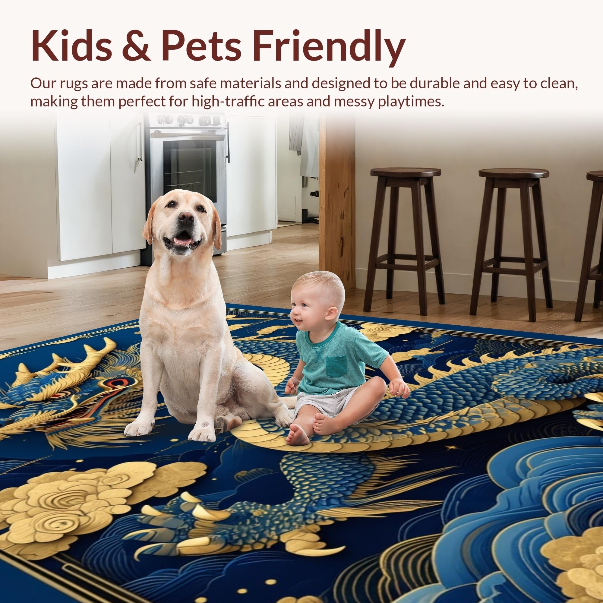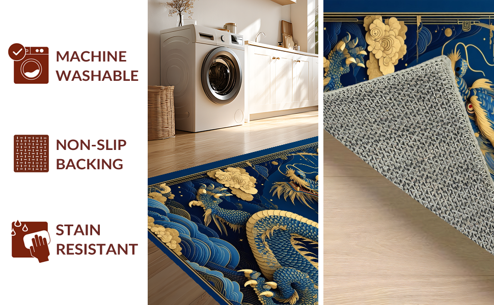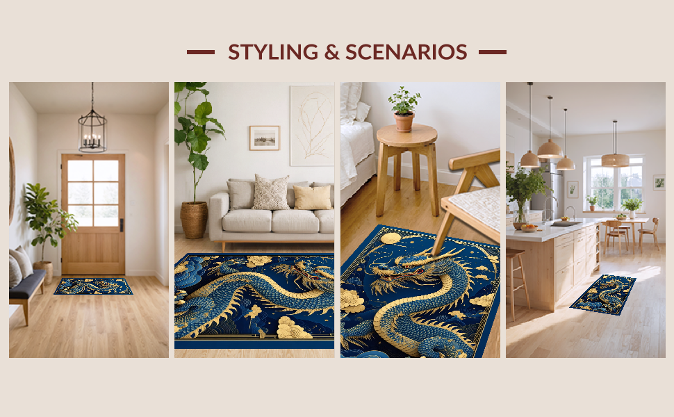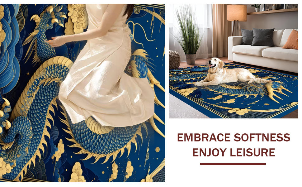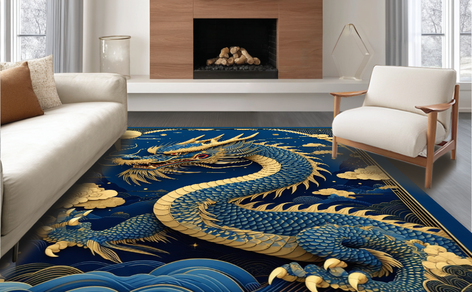 Ultra Soft Area Rug, Non Slip, Stain Resistant, Washable Area Rugs for Living Room, Bedroom, Rustic Dragon-Inspired Decor(Blue) Overview: