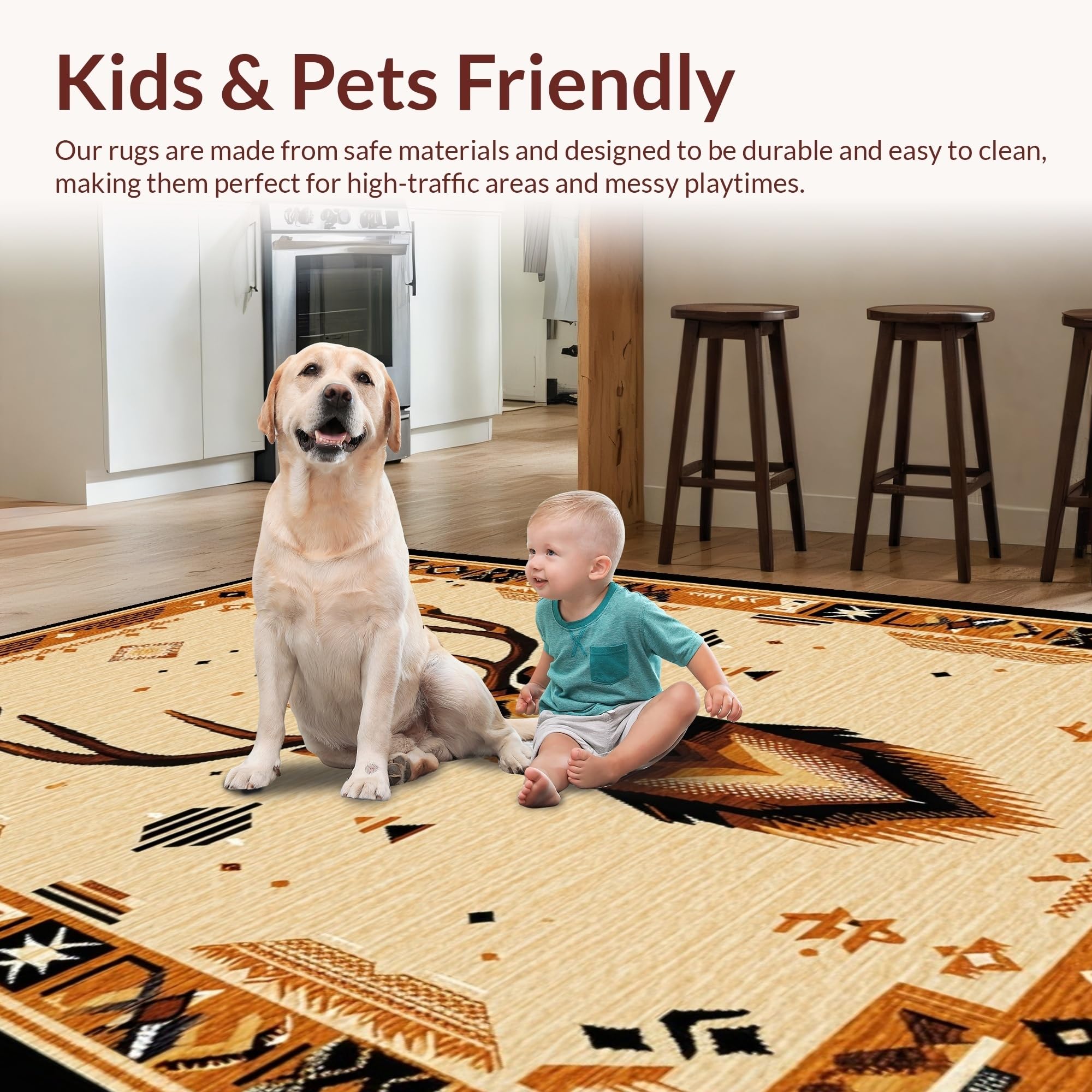 Ultra Soft Area Rug, Non Slip, Stain Resistant, Washable Area Rugs for Living Room, Bedroom, Rustic Earth Toned Textures(Beige) Overview: