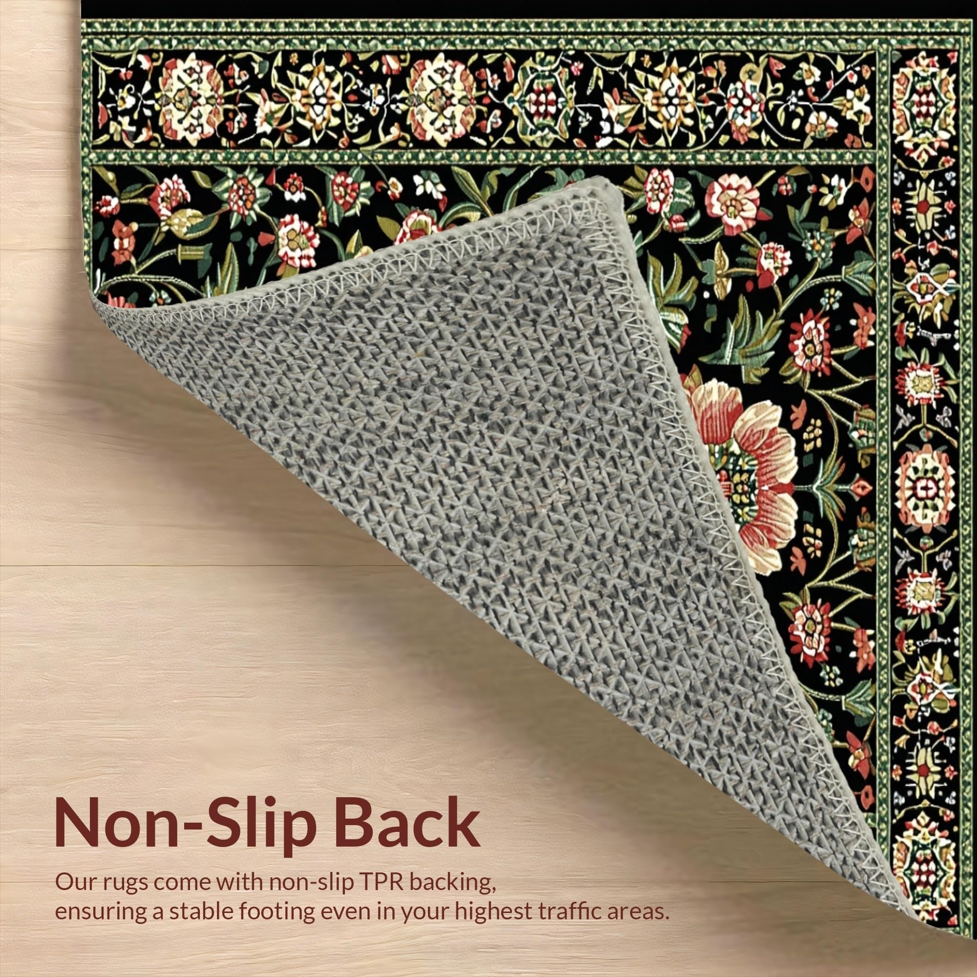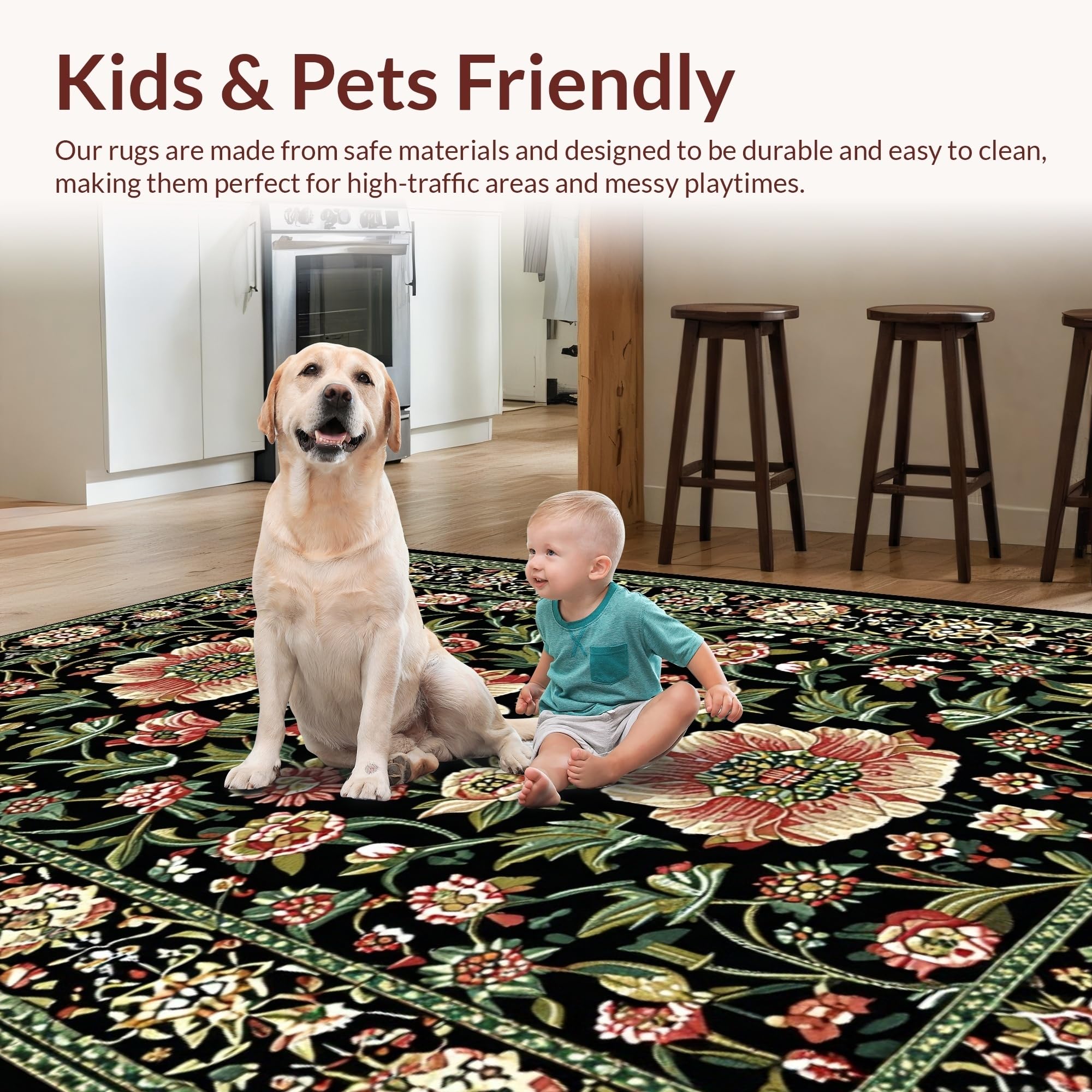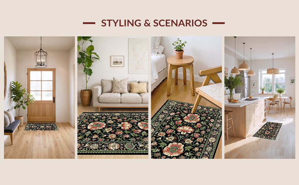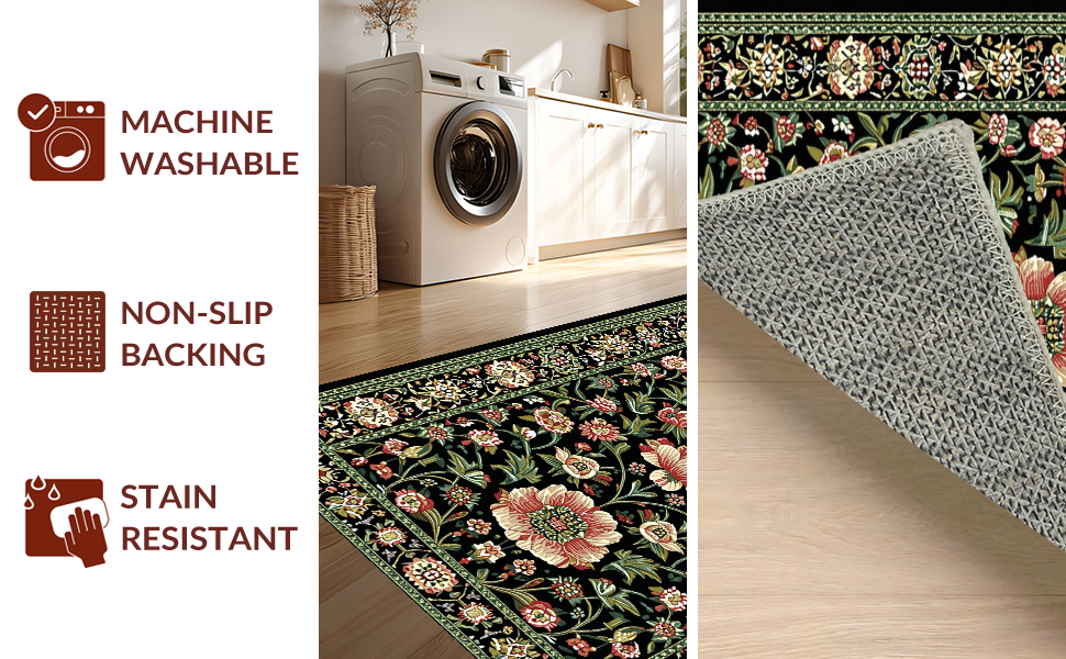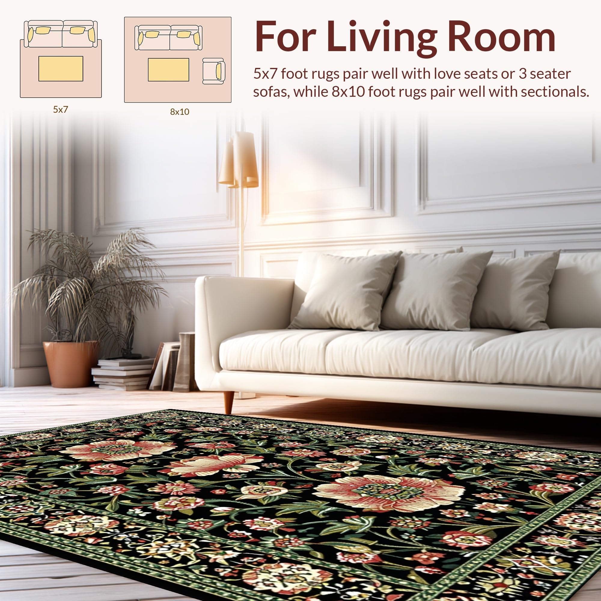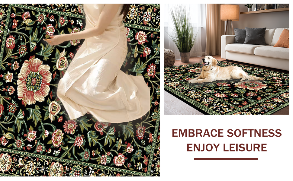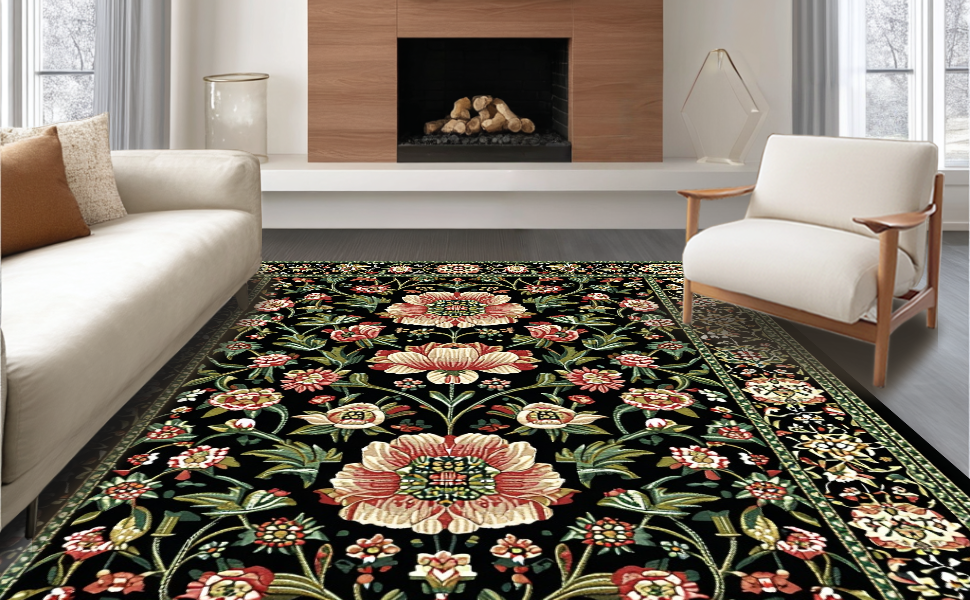 Ultra Soft Area Rug, Non Slip, Stain Resistant, Washable Area Rugs for Living Room, Bedroom, Rustic Earthy Blossom Aesthetic(Black) Overview: