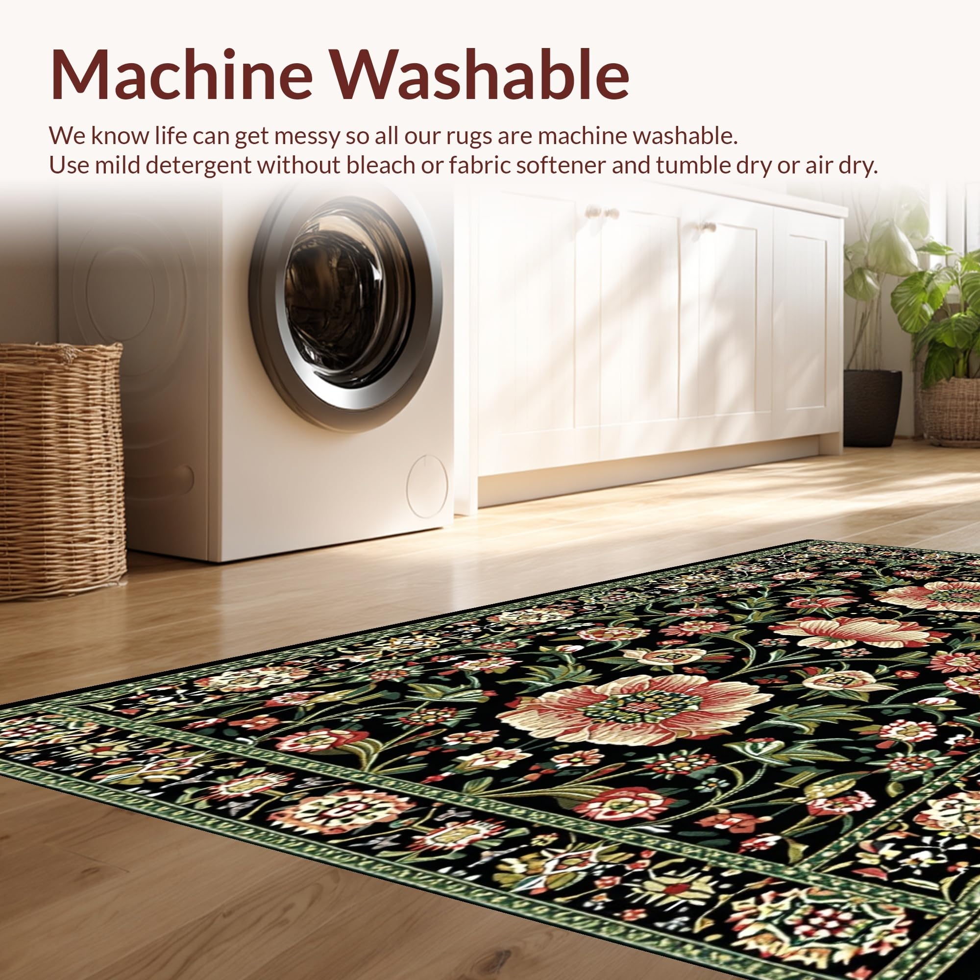 - Machine Washable: Our rugs can be easily thrown in the wash machine.