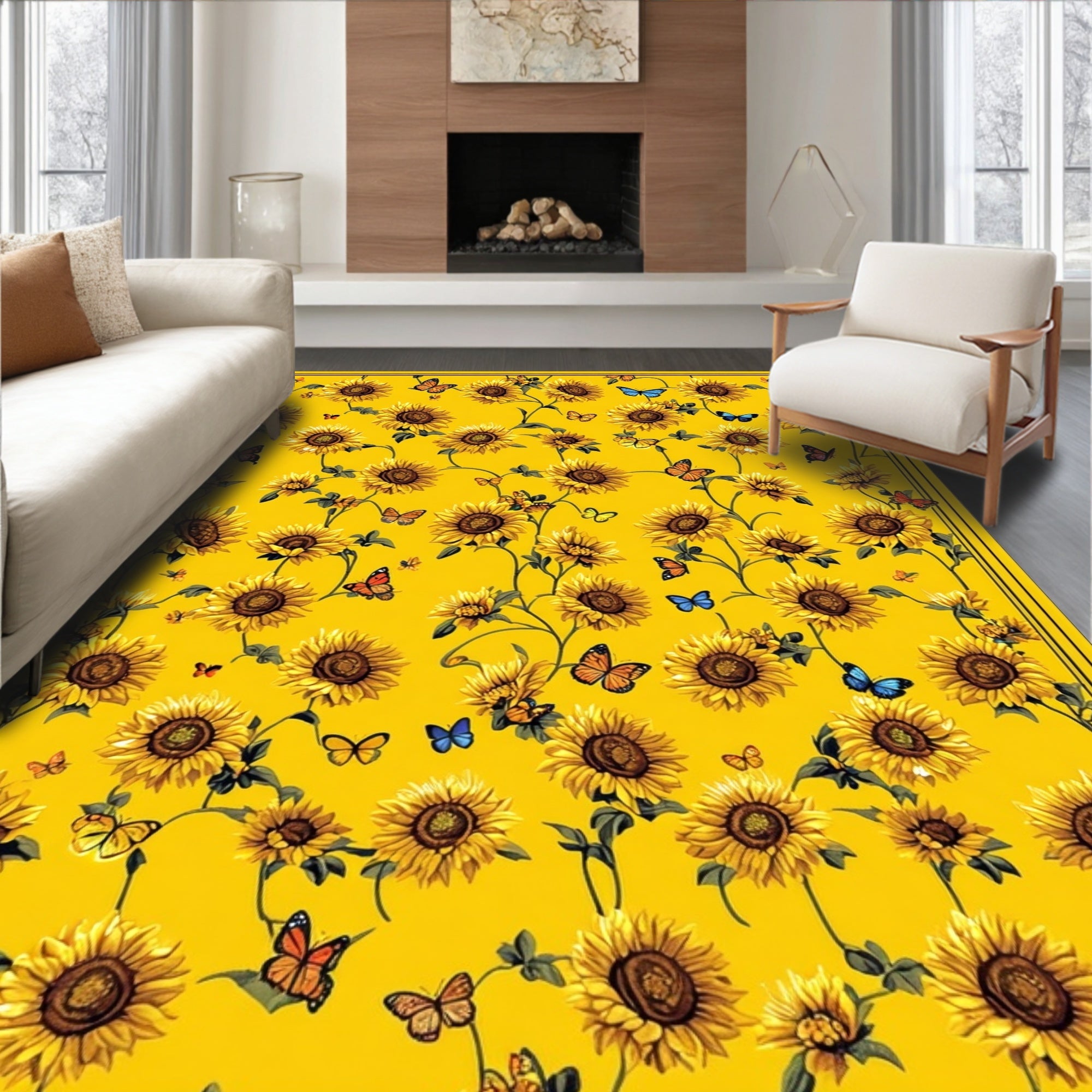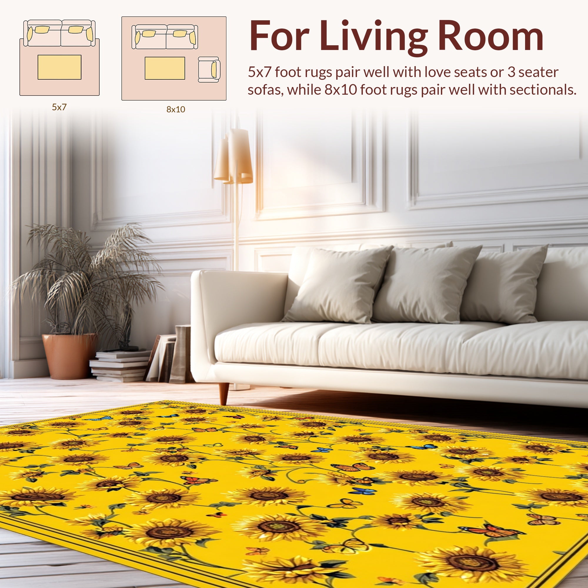Flatwoven High Traffic Area Rug, Rustic Earthy Botanical Motif, Non Slip, Stain Resistant, Washable Area Rugs for Living Room, Bedroom (Yellow) Overview: