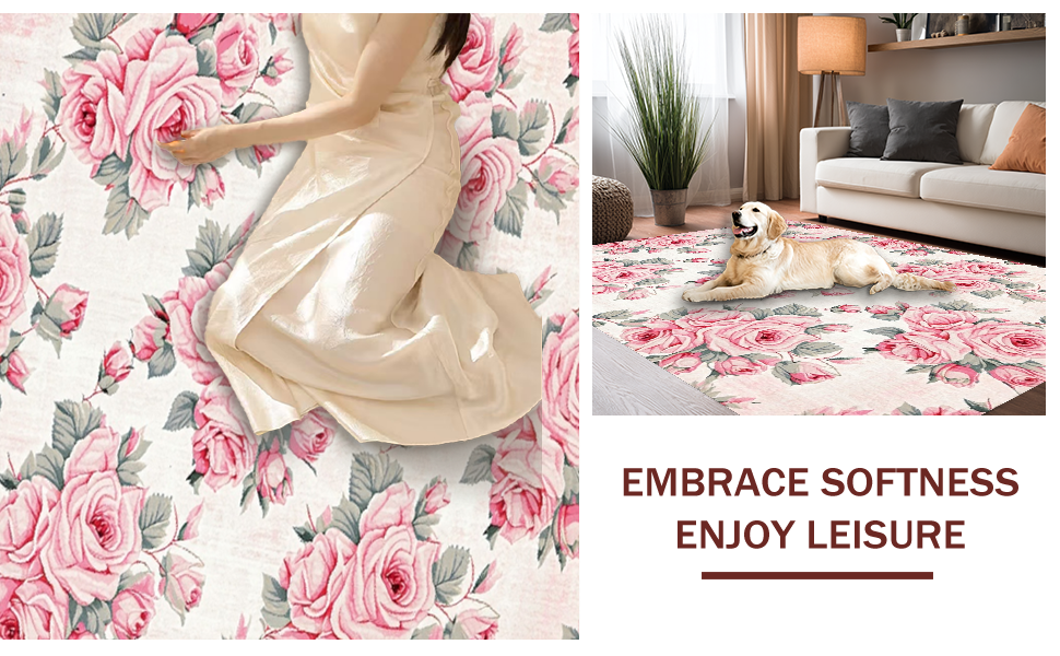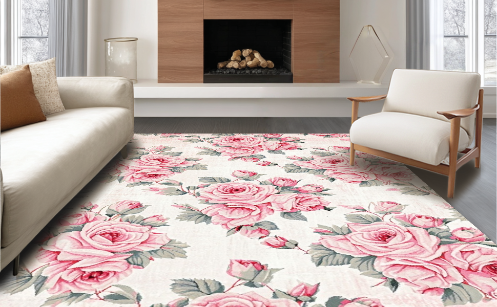 Ultra Soft Area Rug, Non Slip, Stain Resistant, Washable Area Rugs for Living Room, Bedroom, Rustic Earthy Botanical Pattern(Pink) Overview: