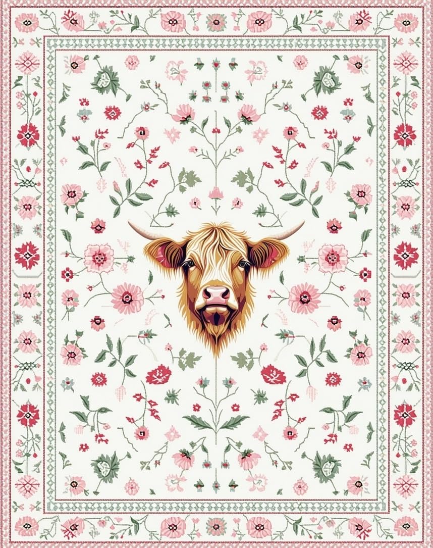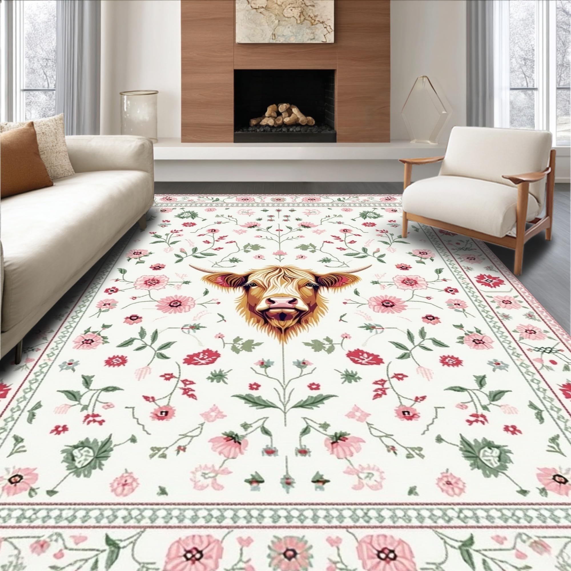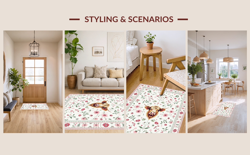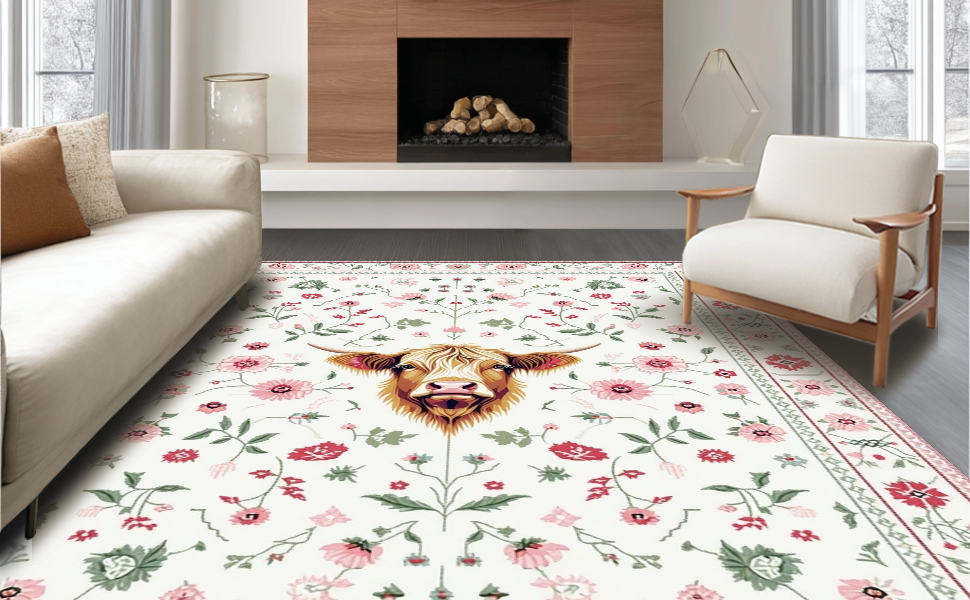 Ultra Soft Area Rug, Non Slip, Stain Resistant, Washable Area Rugs for Living Room, Bedroom, Rustic Earthy Cow Aesthetic(Beige) Overview:
