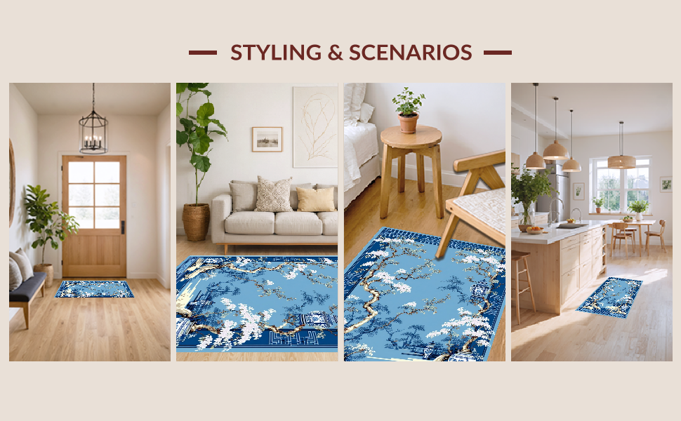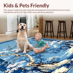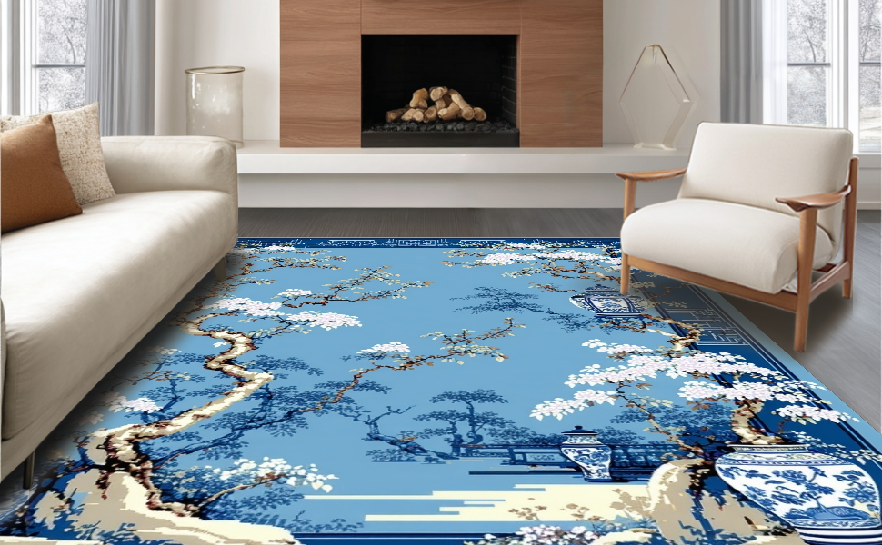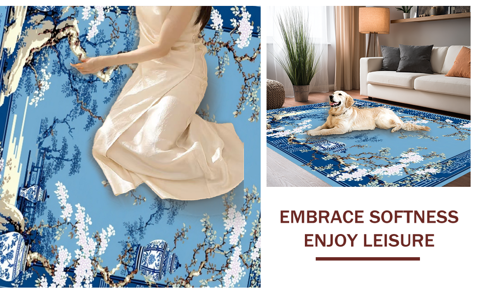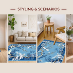 Ultra Soft Area Rug, Non Slip, Stain Resistant, Washable Area Rugs for Living Room, Bedroom, Rustic Earthy Floral Embellishments(Blue) Overview:
