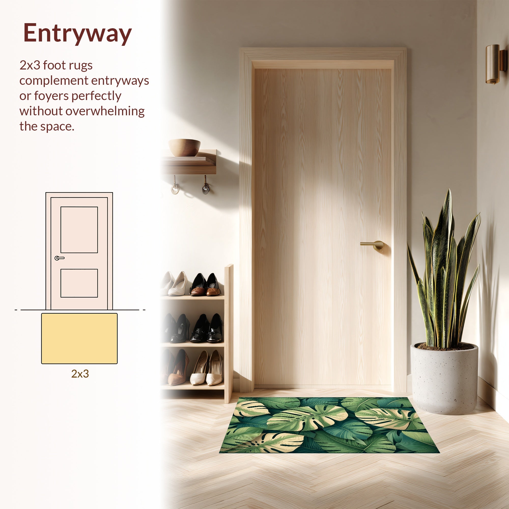 Flatwoven High Traffic Area Rug, Rustic Earthy Jungle Theme, Non Slip, Stain Resistant, Washable Area Rugs for Living Room, Bedroom (Green) Overview:
