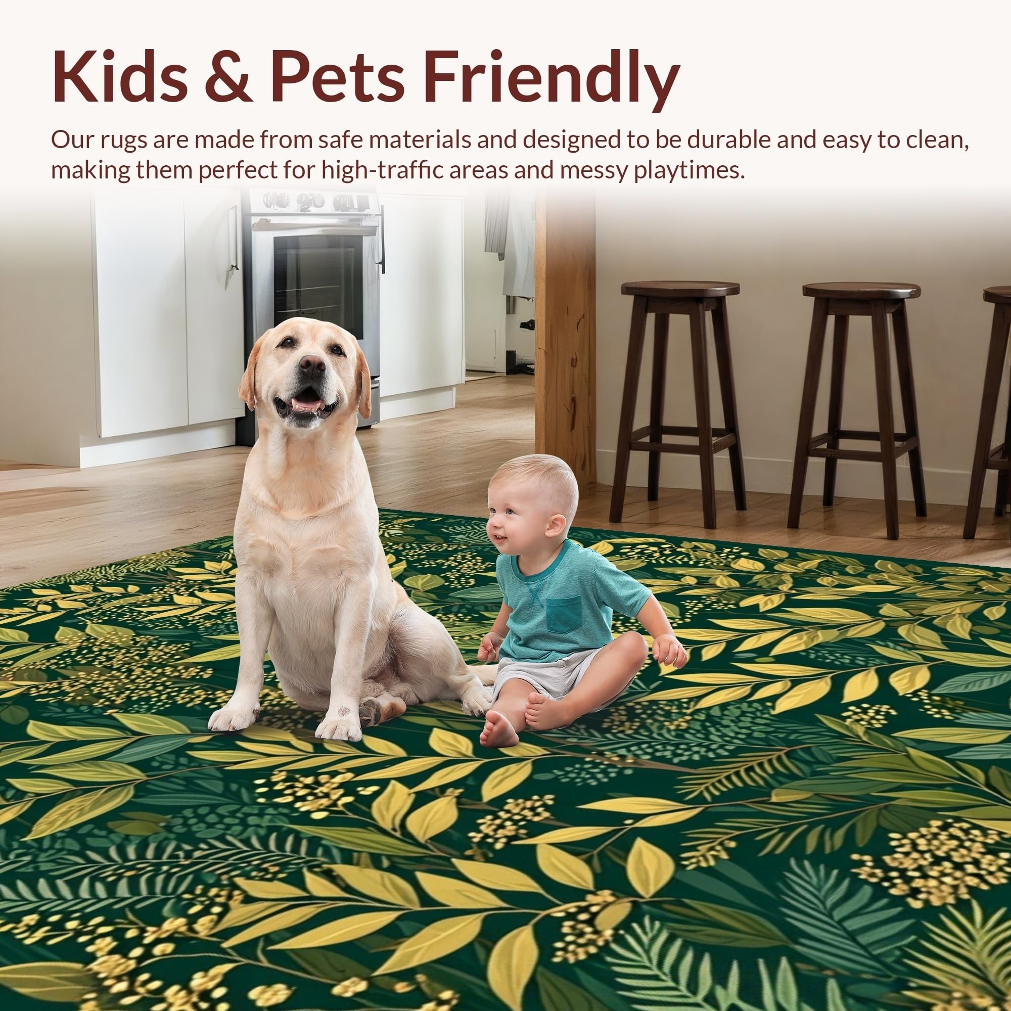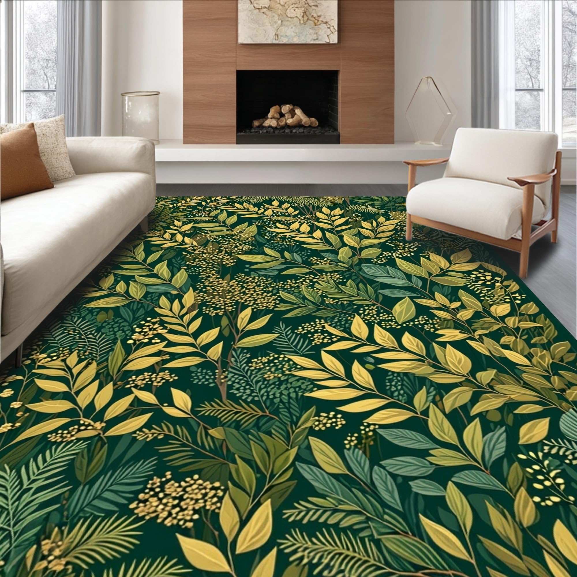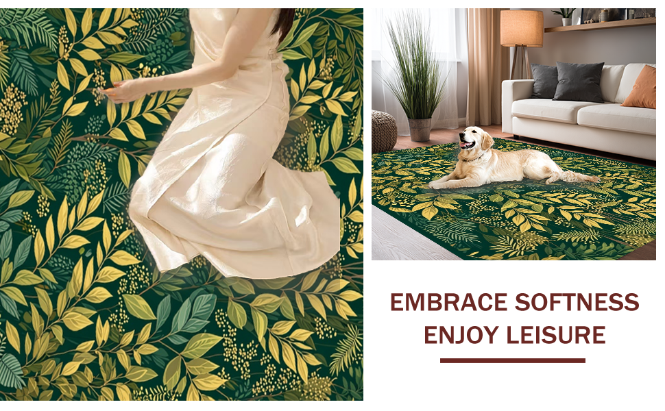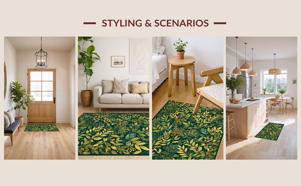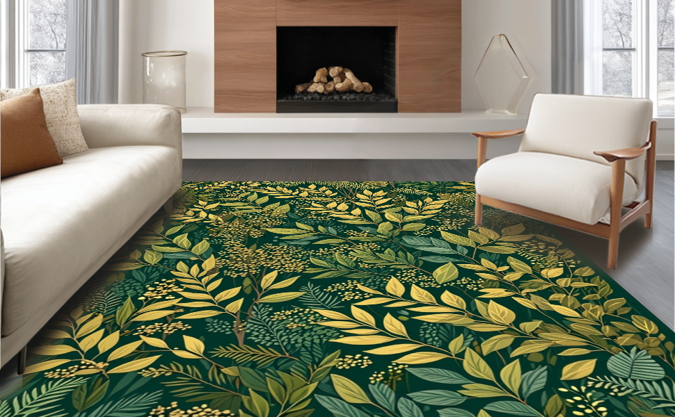 Ultra Soft Area Rug, Non Slip, Stain Resistant, Washable Area Rugs for Living Room, Bedroom, Rustic Earthy Ogee Patterned Rug(Green) Overview: